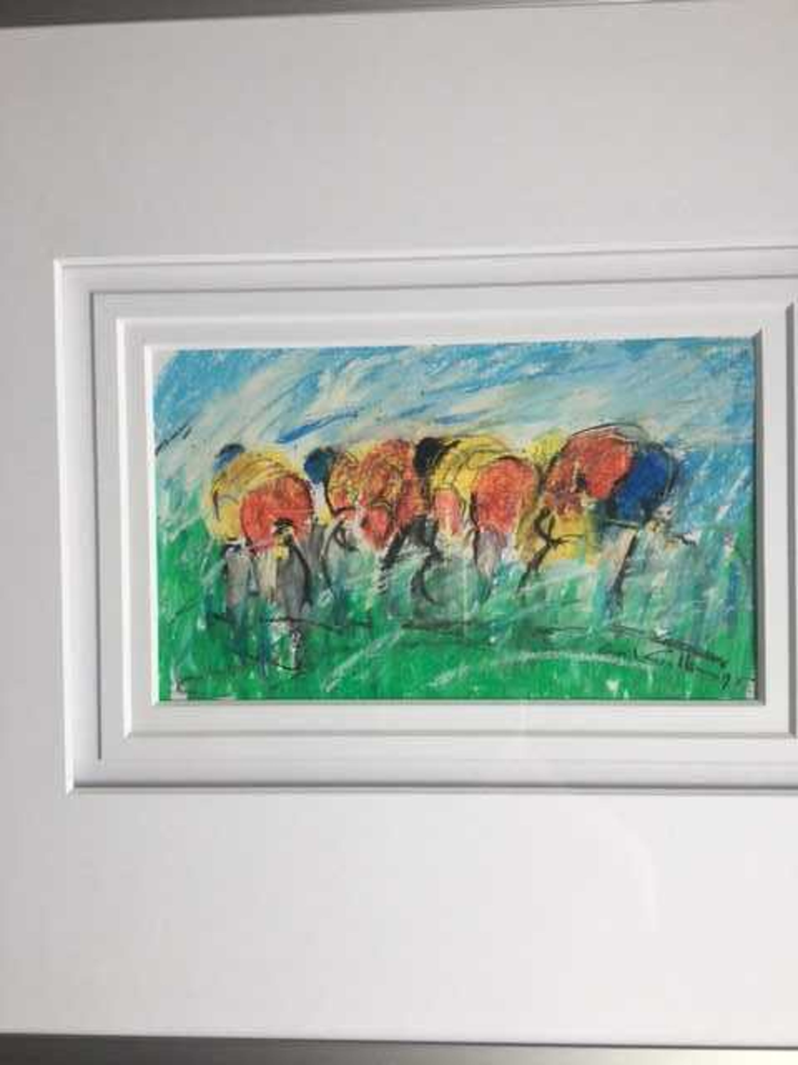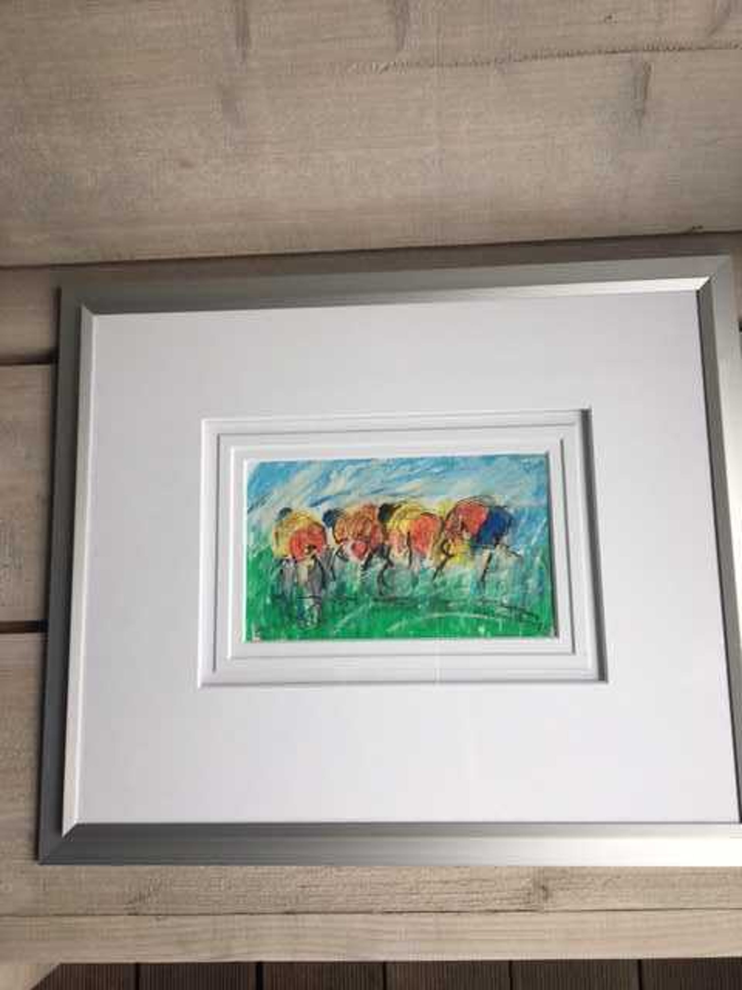 3 pasteltekeningen wielrenners. tekening 1: de tour (1995) tekening 2: de afdaling (1995) tekening 3: het peleton (1990)
