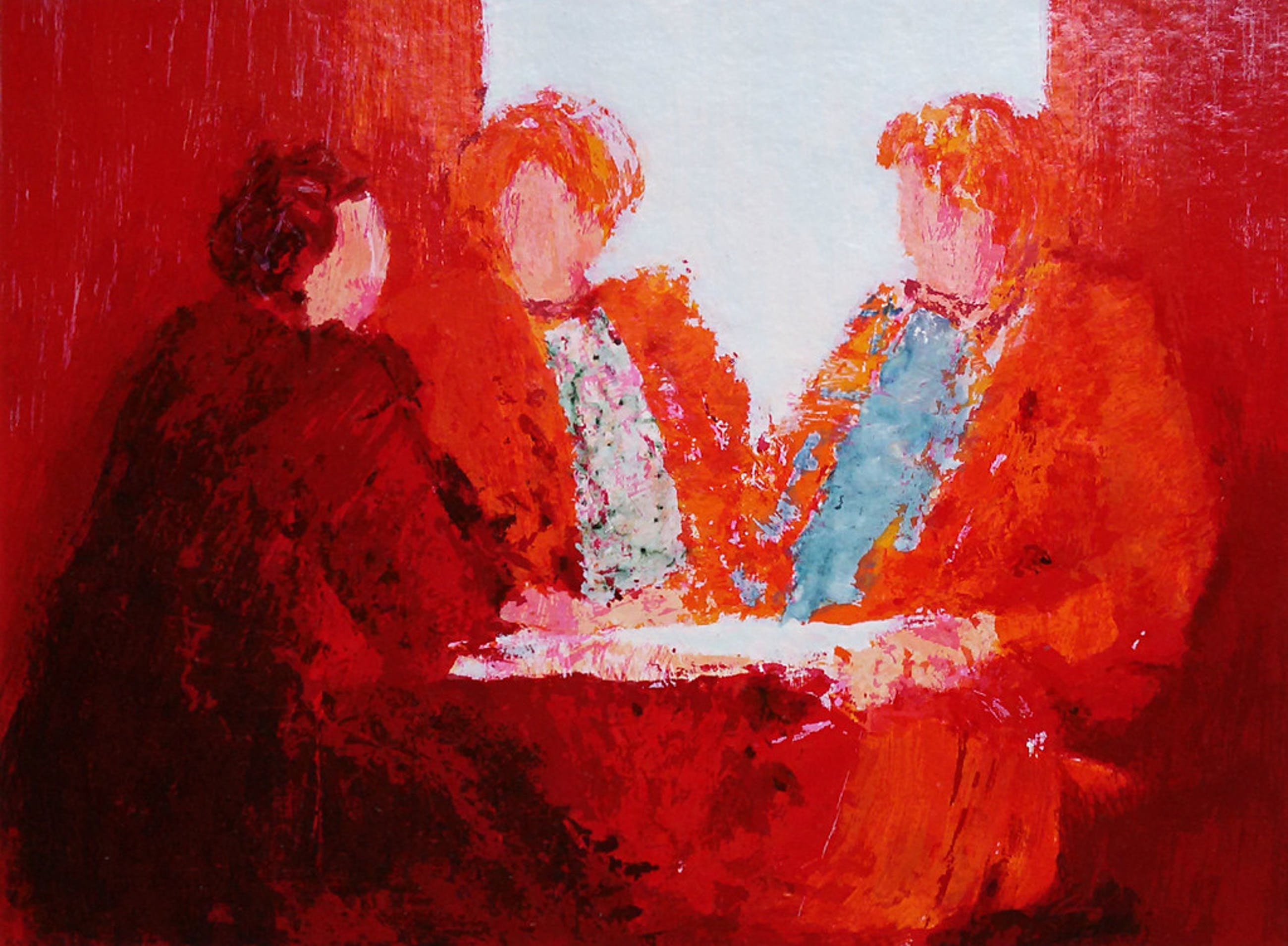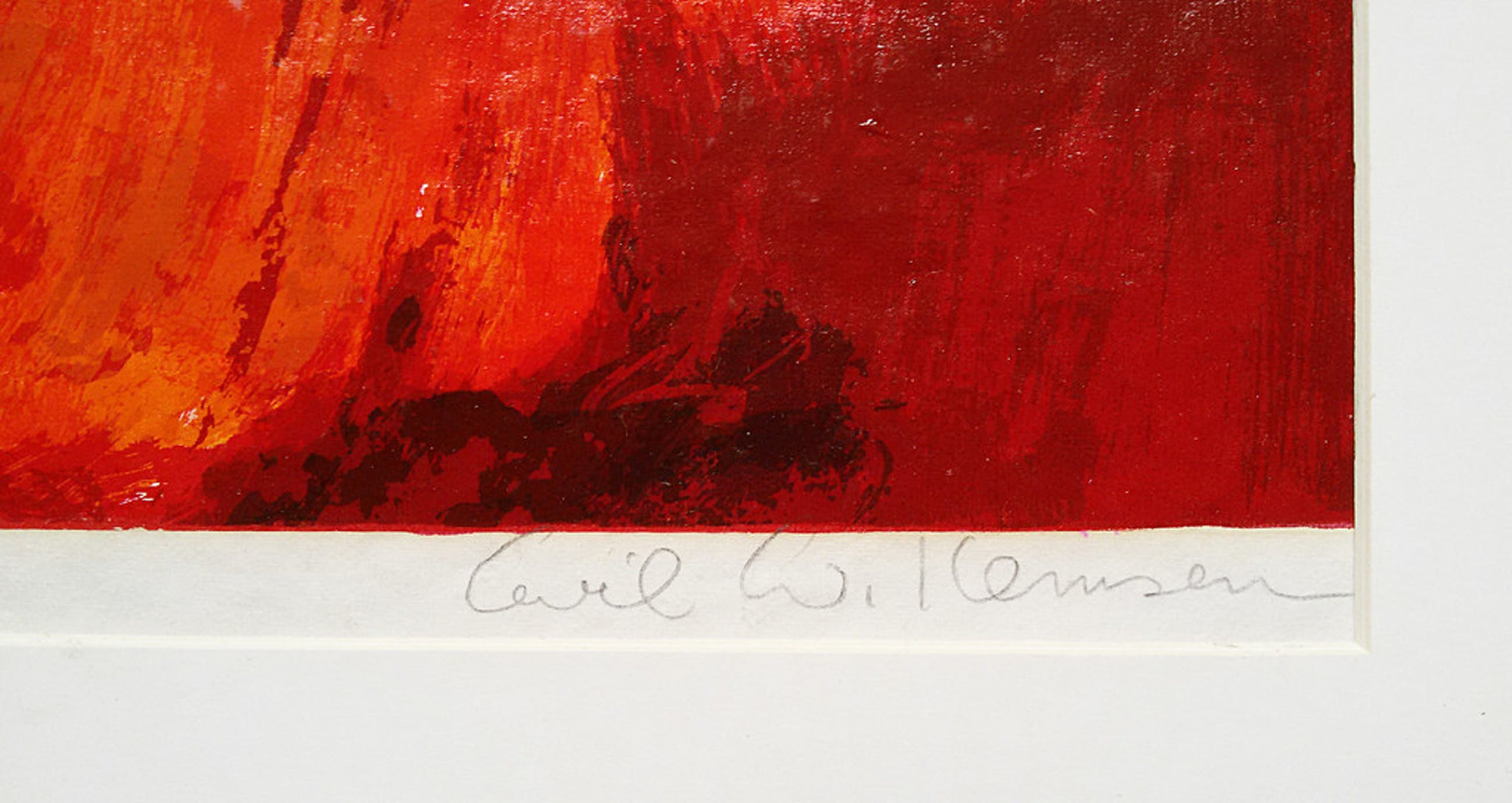 Karakteristiek werk van Wil Willemsen, met potlood gesigneerd rechtsonder. In strakke lijst, achter glas en dubbel passe-partout. In goede conditie.
