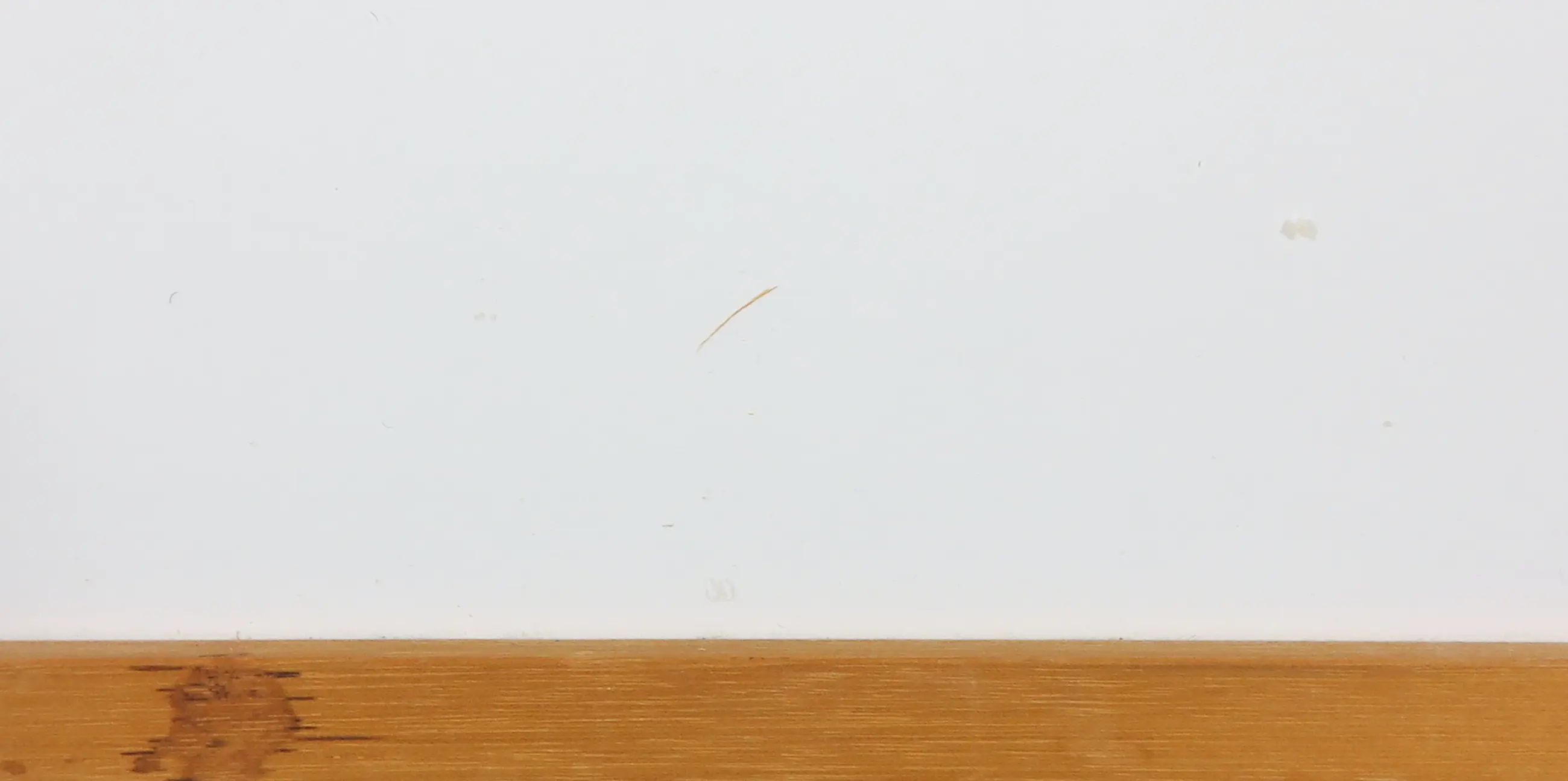 | Restant van sticker op de glasplaat. Daarnaast enkele vuiltjes achter de glasplaat zichtbaar. | |
