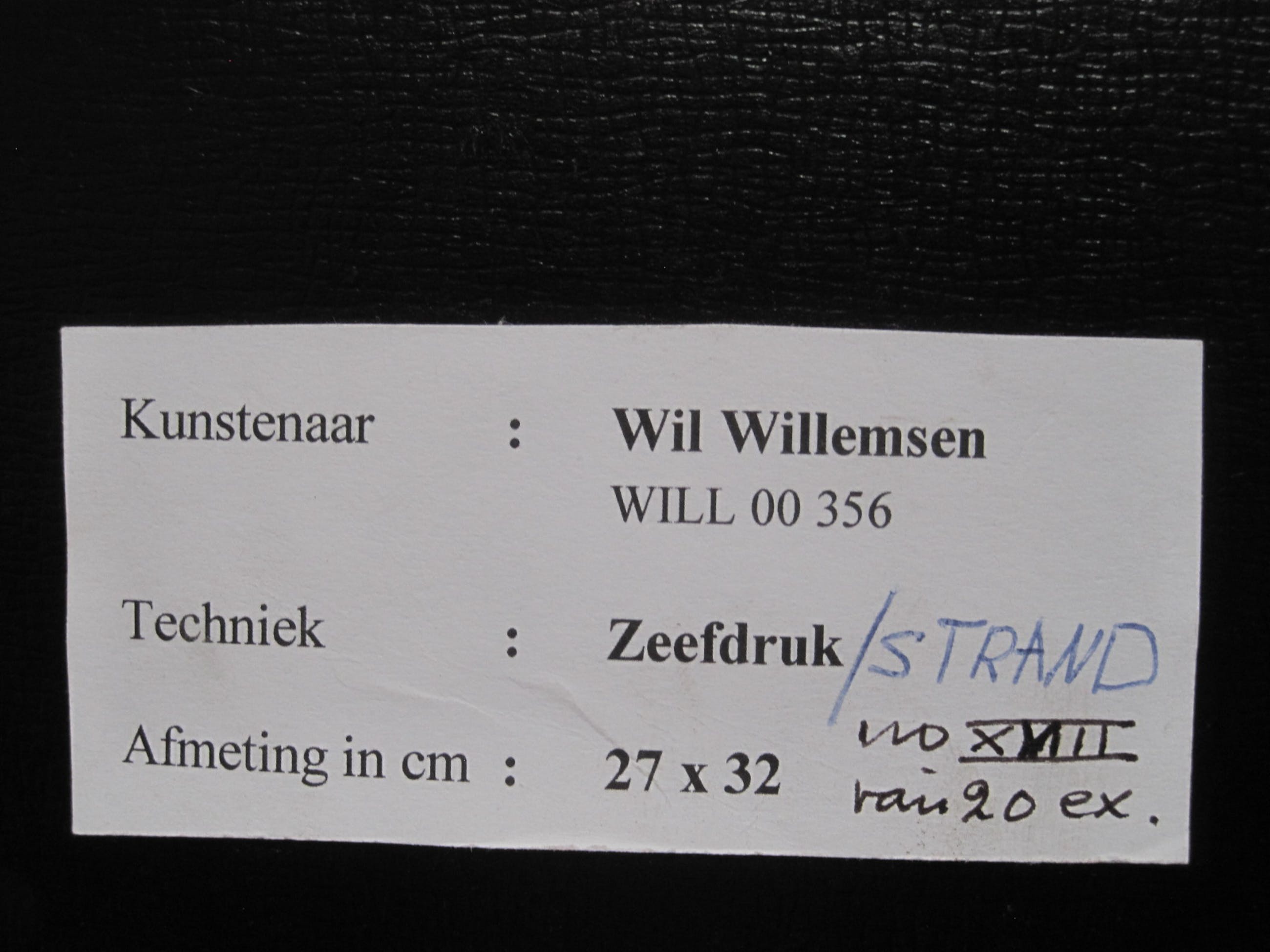 Wil Willemsen (1943) is geboren te Amsterdam in 1943 en volgt eerst de Pedagogische Academie en daarna de Europaische Academie te Trier. Het schilderen ontwikkelt ze via een serie cursussen en werkweken op de werkplaats van het Van Gogh museum.