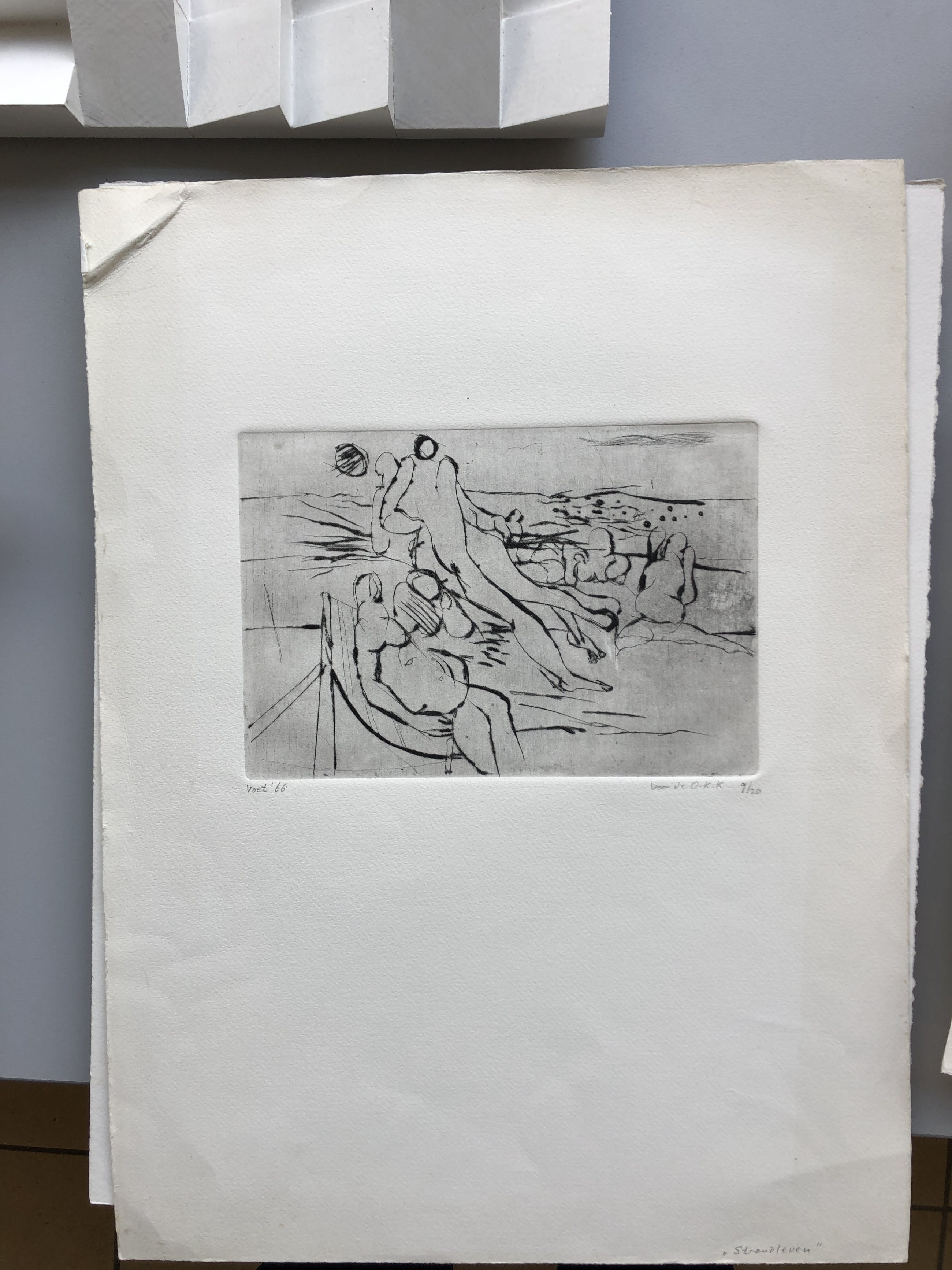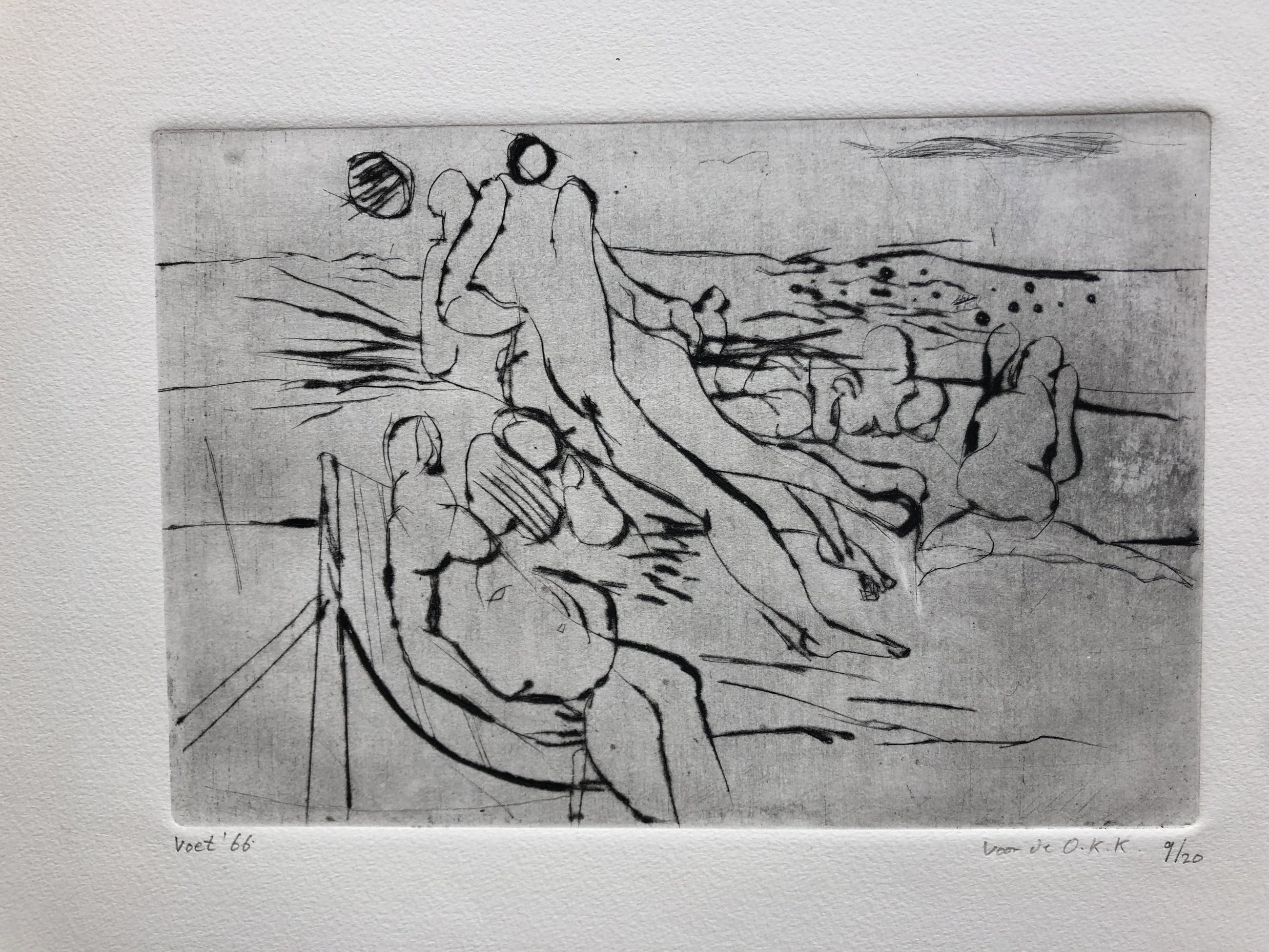 Zwart wit ets van Voets in goede staat. De witrand rondom de ets heeft wat ouderdoms tekenen zoals links bovenin een vouw. Bij gebruik van een niuew passe partout valt dit volledig buitenbeeld. U kunt het werk vooraf komen beoordelen in de schatkamer van Rotor in Gorinchem.