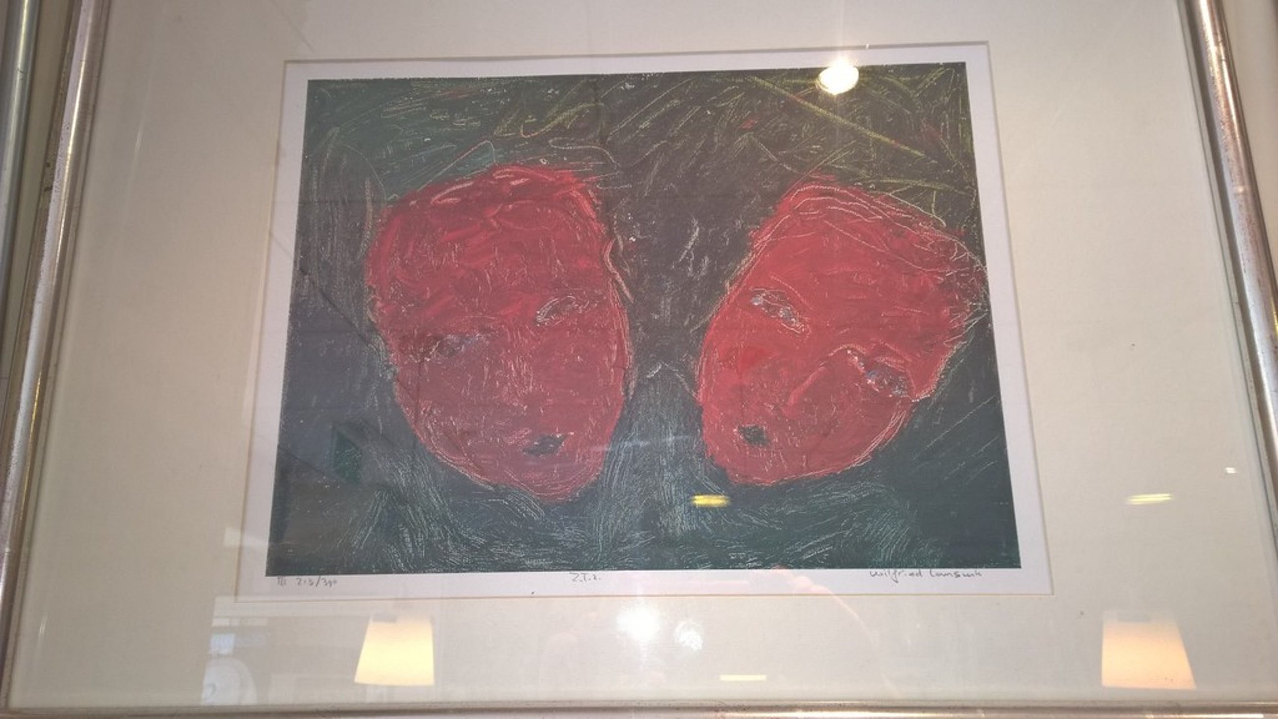 Red Face heeft nummer 213/390 en Green Face heeft nummer 328/390. Beide zijn mooi en professioneel ingelijst.