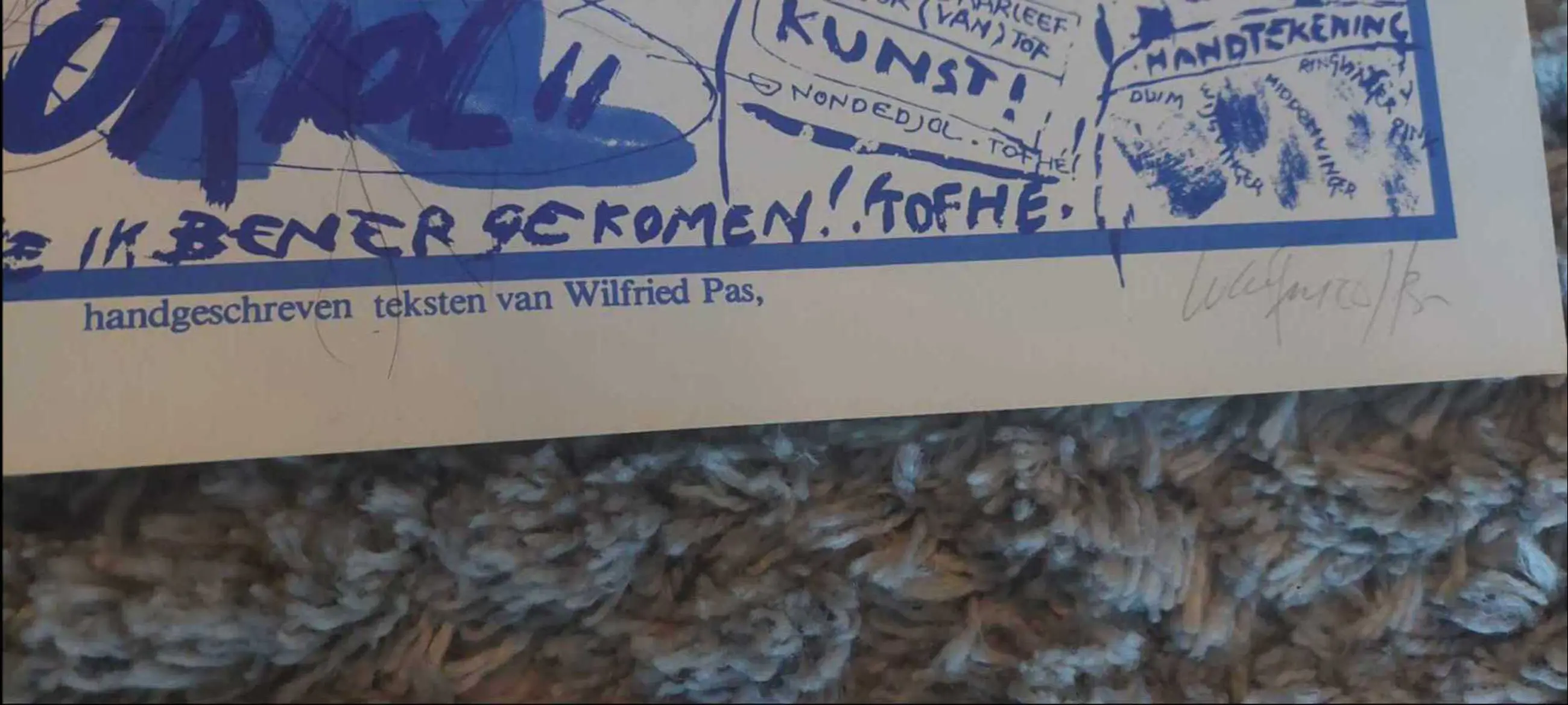 Interessant genummerd zeefdruk van Wilfried Pas uitgegeven door galerij De Zwarte Panter