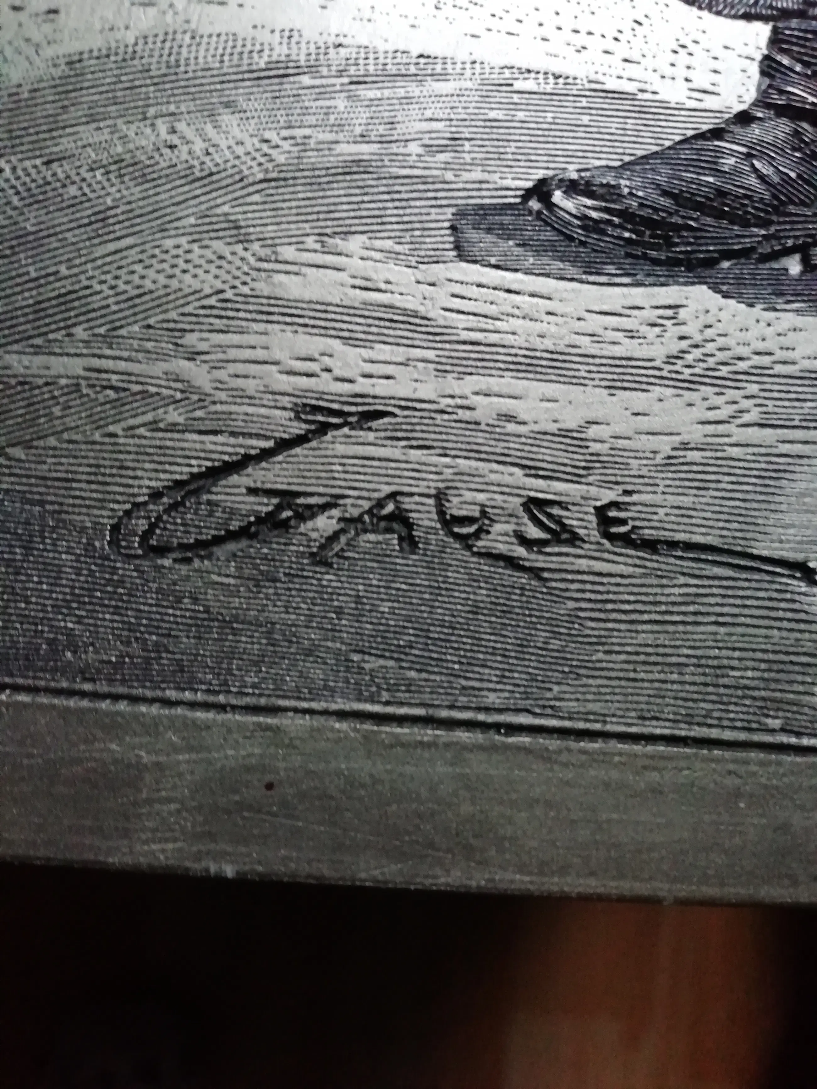 De handtekening is in metaal gegraveerd; de stijl doet denken aan Wilhelm Gause.