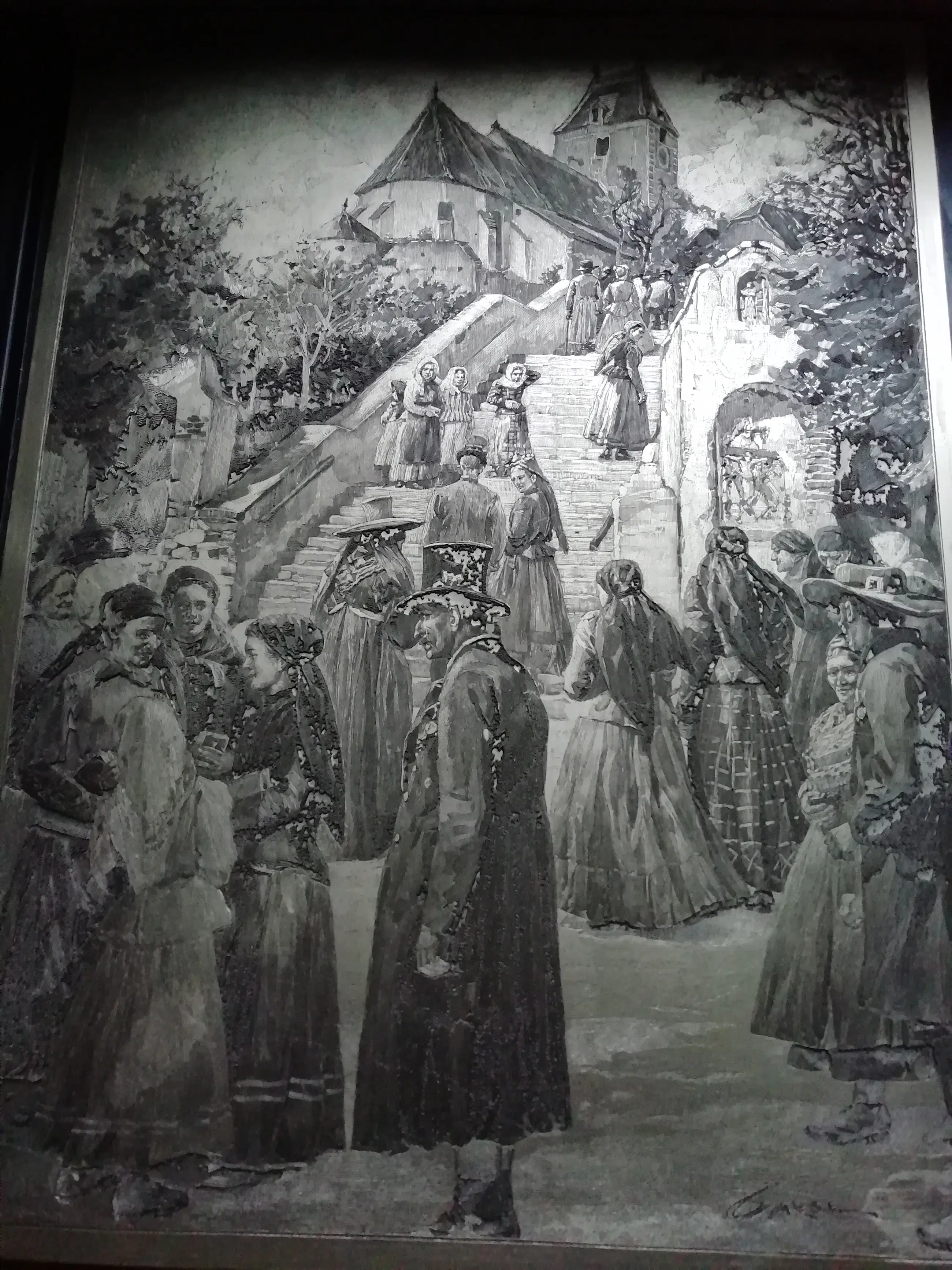 Het schilderij beeldt waarschijnlijk de parochiekerk van St. Pancras in Lengenfeld af, in het district Krems in Neder-Oostenrijk. Deze kerk ligt op 14 km van Stein an der Donau, waar Wilhelm Gause vanaf 1898 woonde.