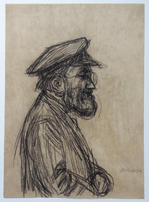 Wilhelm Rudolph - o.T. (Bärtiger Mann im Profil), signierte Kreidezeichnung auf laviertem Papier