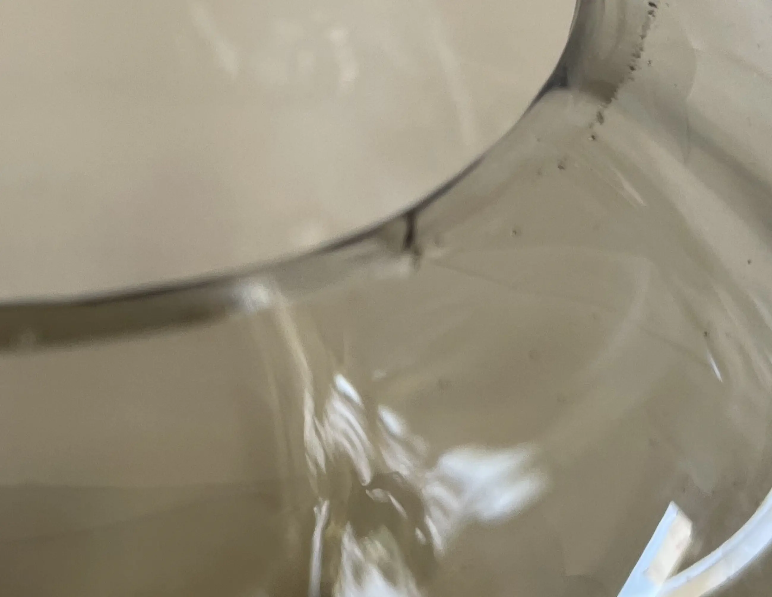 Het vaasje heeft een minimaal stootpuntje aan de binnenkant van de bovenrand.