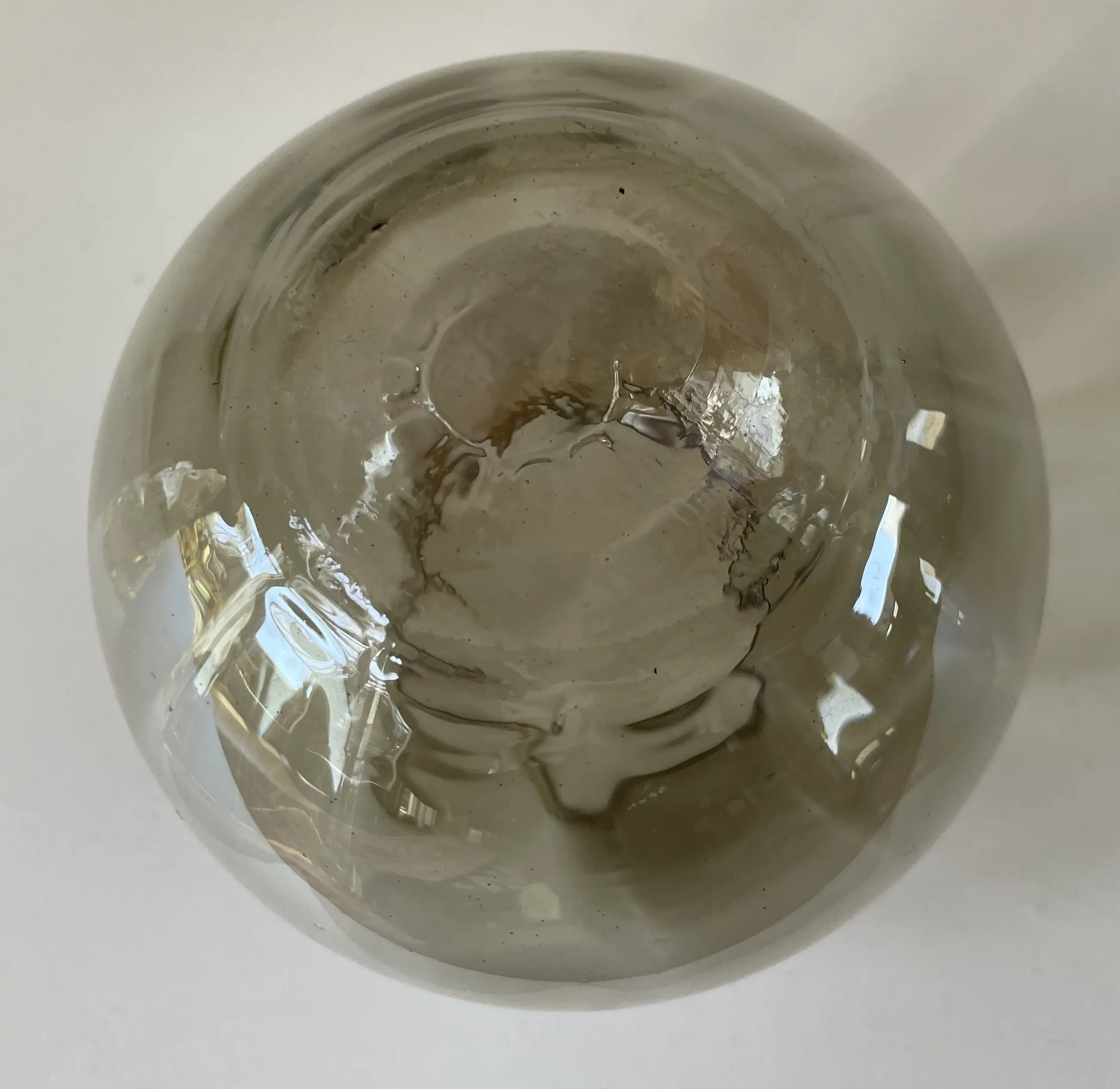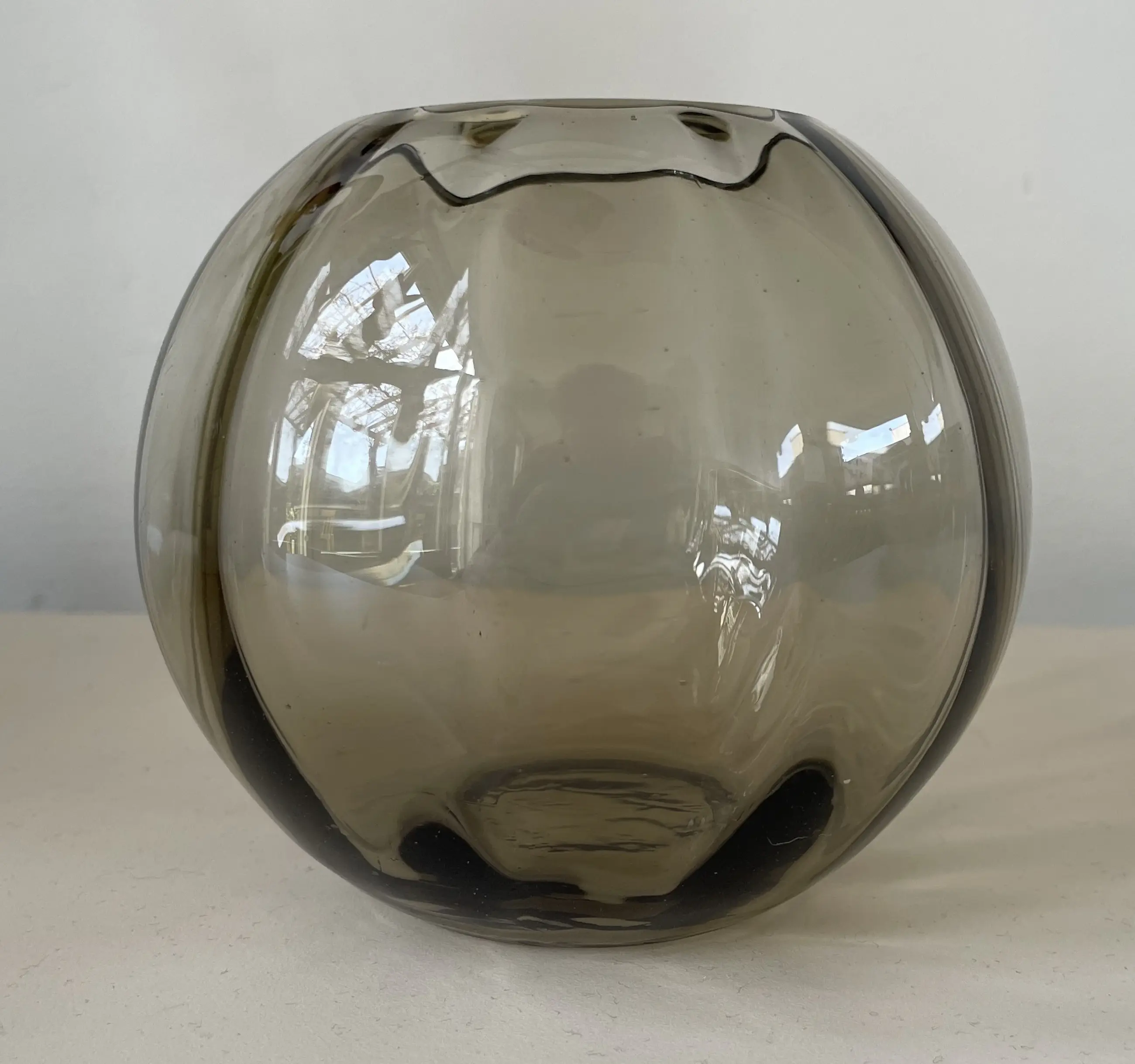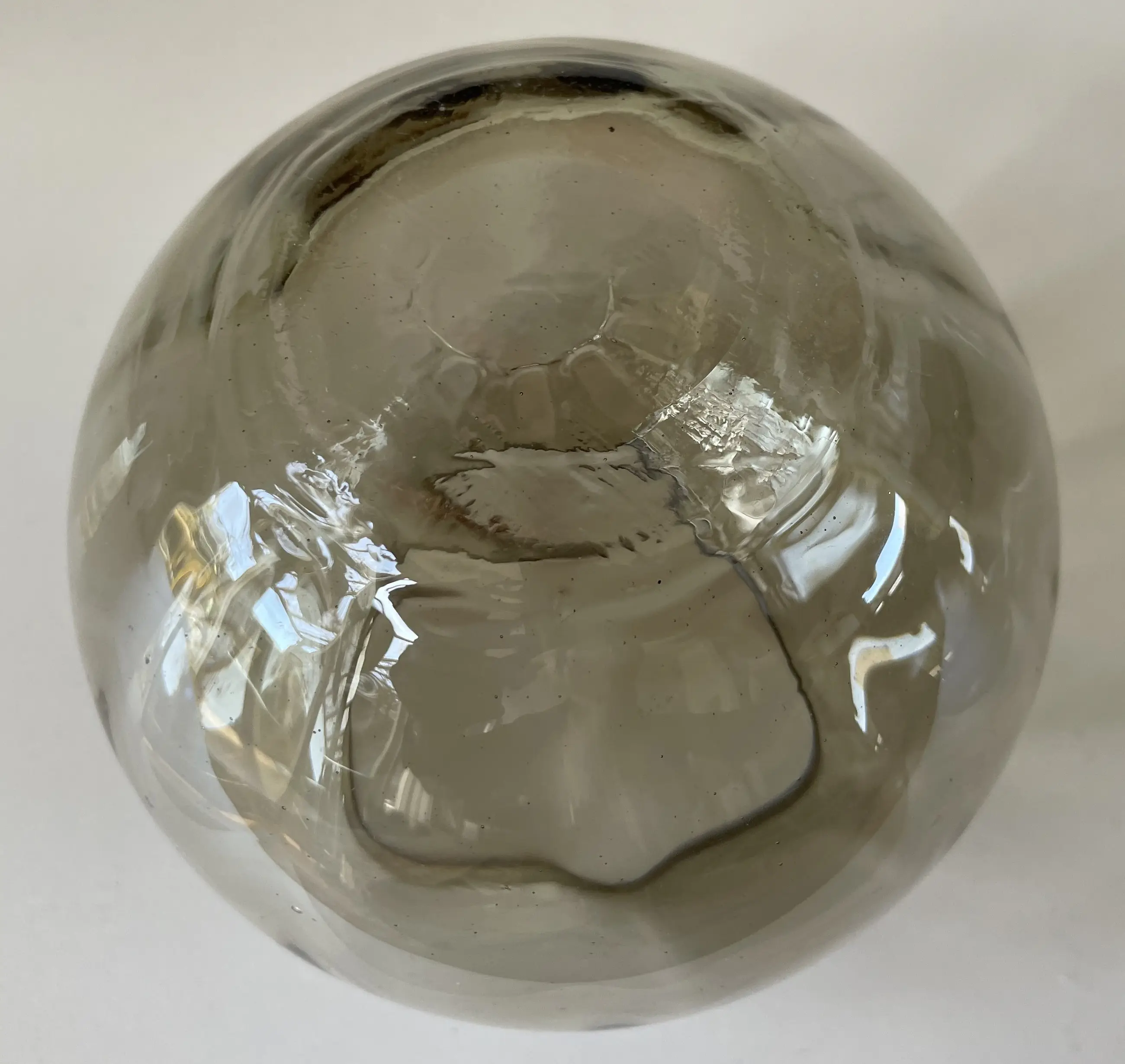 Vintage rookglazen Turmalin Optiek glazen bolvaas ontwerp Dr. Wilhelm Wagenfeld voor WMF. In zeer goede conditie, een minimaal stootpuntje aan de binnenkant.