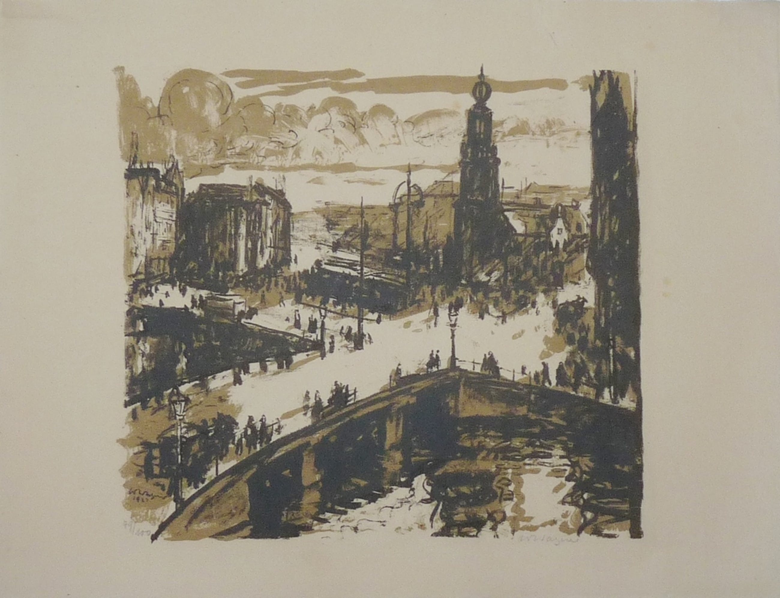 *Fraaie gesigneerde lithografie van een zeer vaardig tekenaar en goed kunstenaar. Zie Wikipedia voor veel meer over deze interessante Duitse kunstenaar, die ook een aantal jaren in Nederland verbleef.