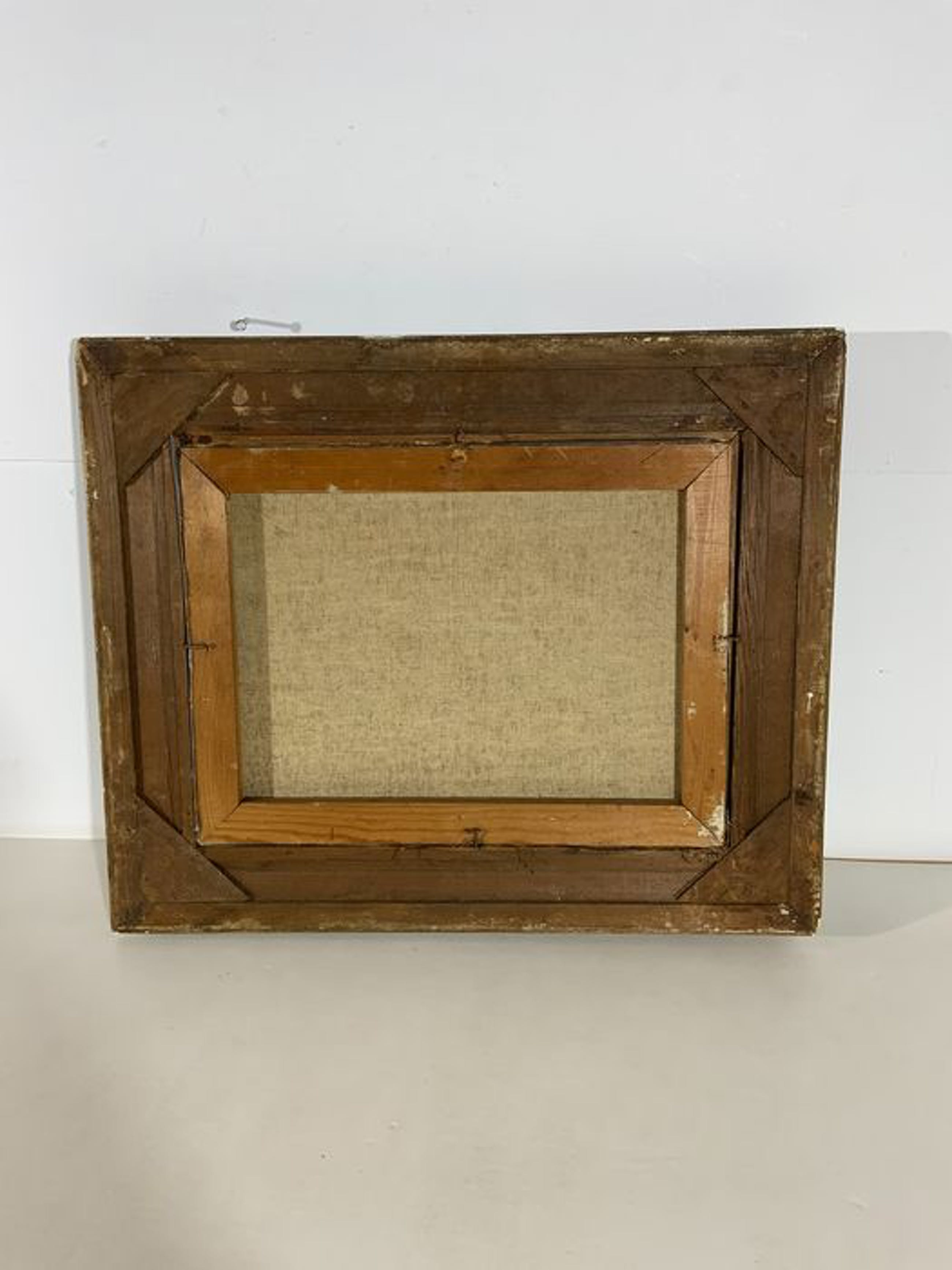 Het doek meet 55 cm x 46 cm en is onbeschadigd., Lijst is van gips en deze is wel beschadigd op meerdere punten. Foto's maken deel uit van de beschrijving