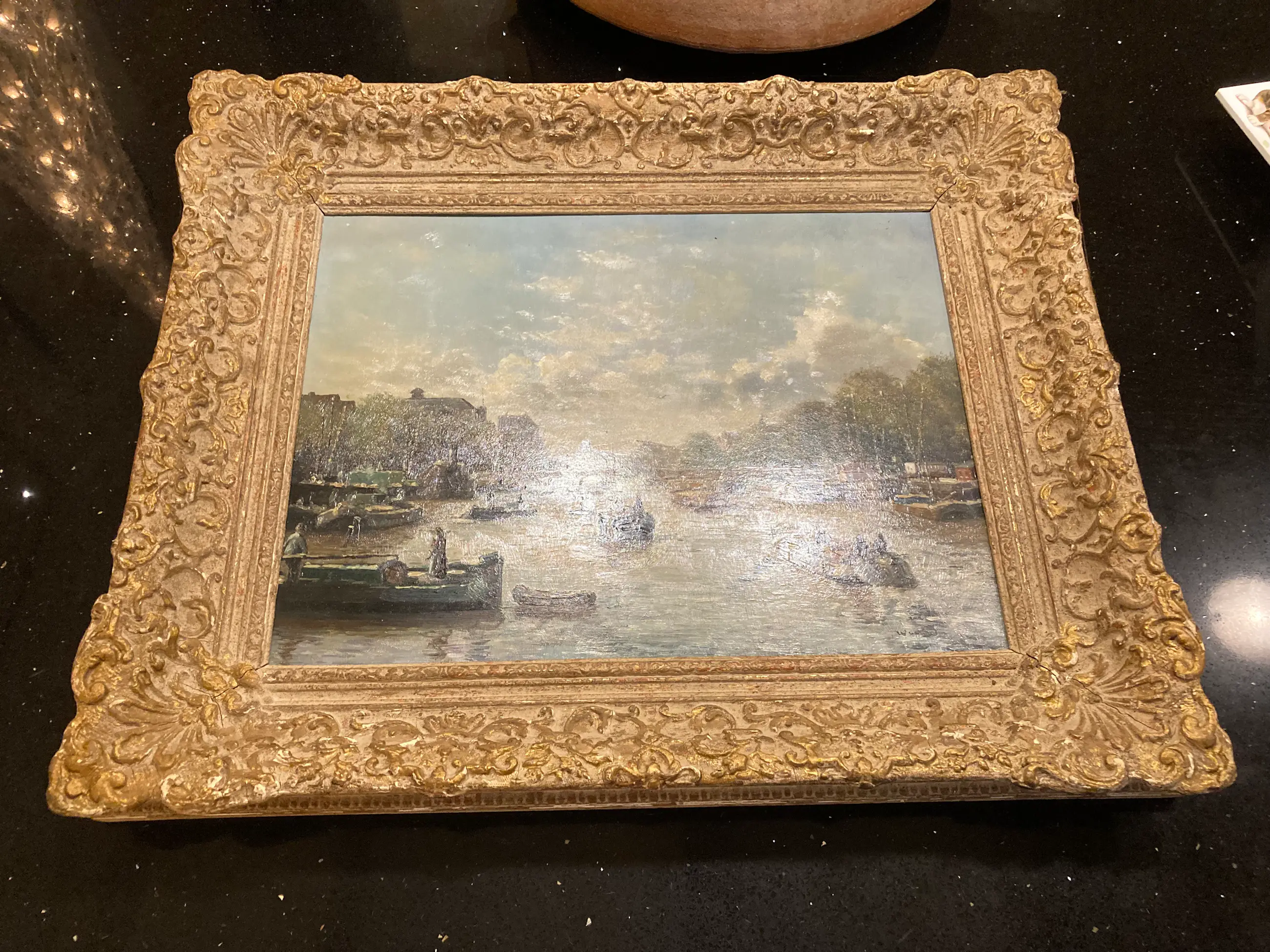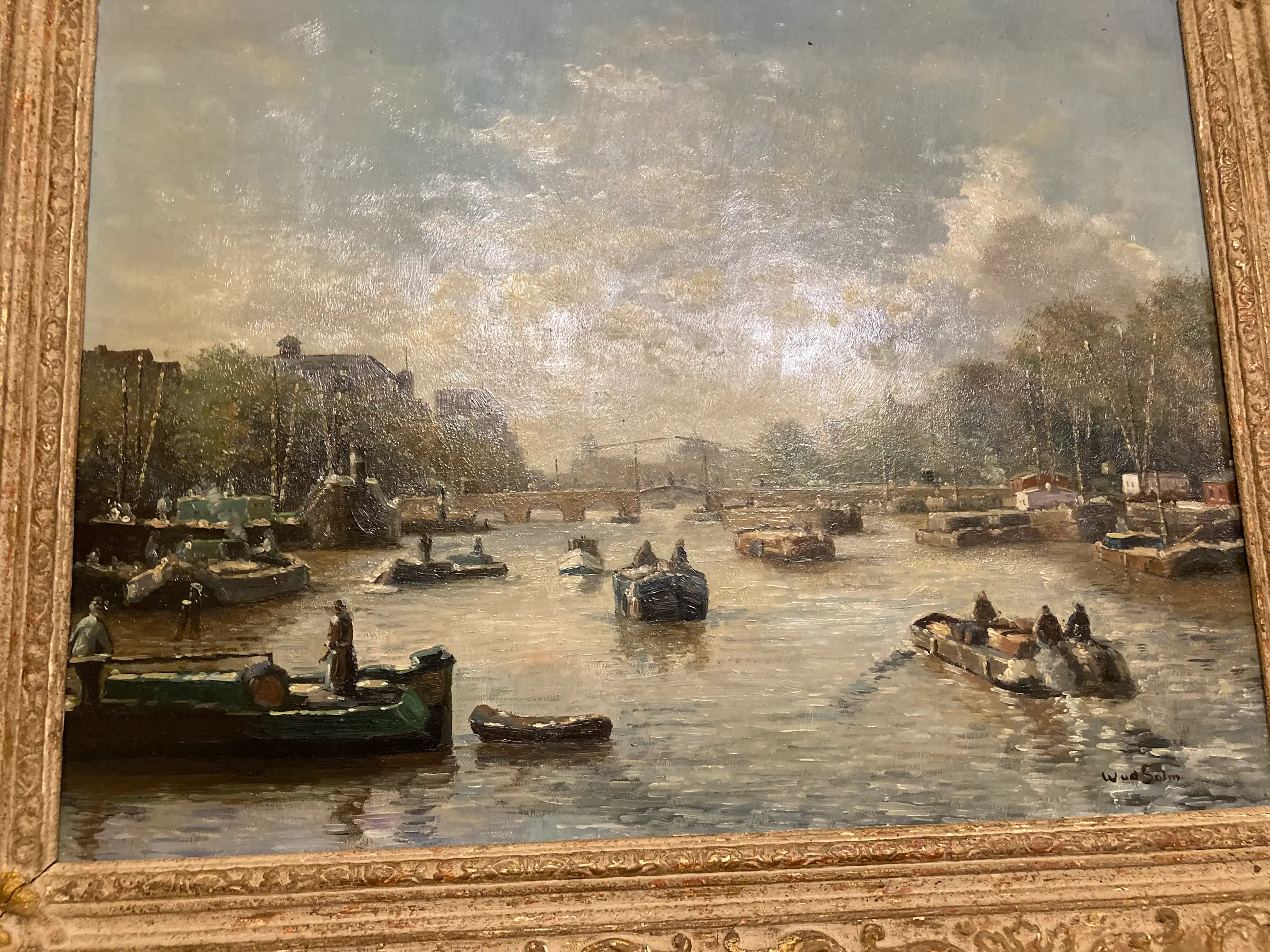 Mooi schilderij, vermoedelijk de Amstel met de magere brug in Amsterdam