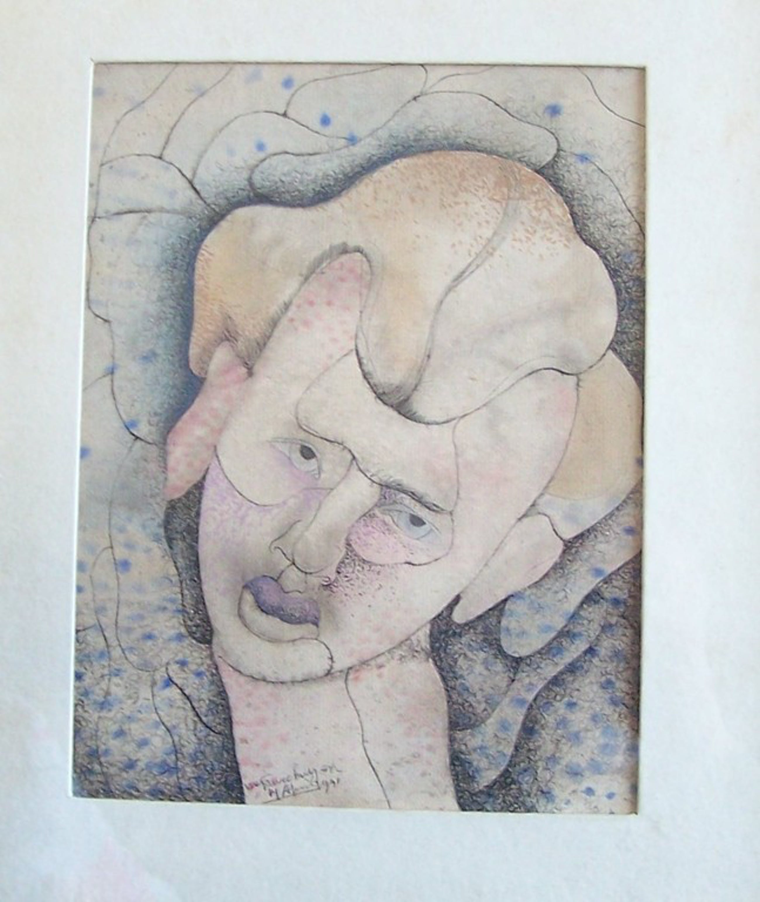 Pentekening ' Portret van Melancholisch kijkend persoon '.