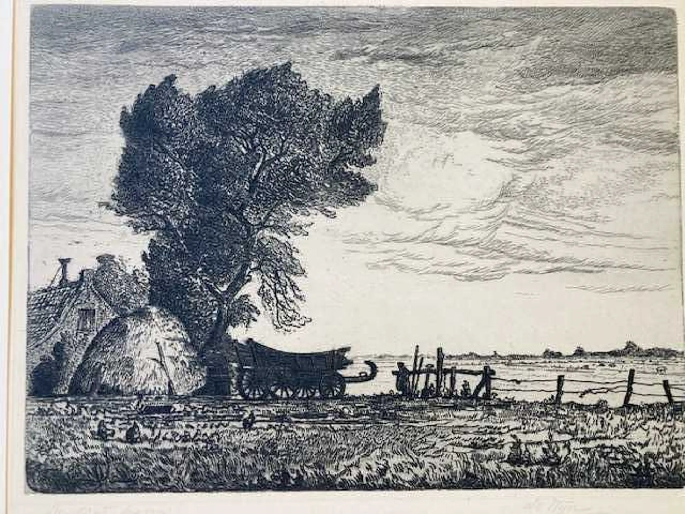 Fraaie ets van Willem Abraham de Wijn (1902-1983). Heeft al eerder onder passe partout gezeten, lichte verkleuring in randen van het papier.