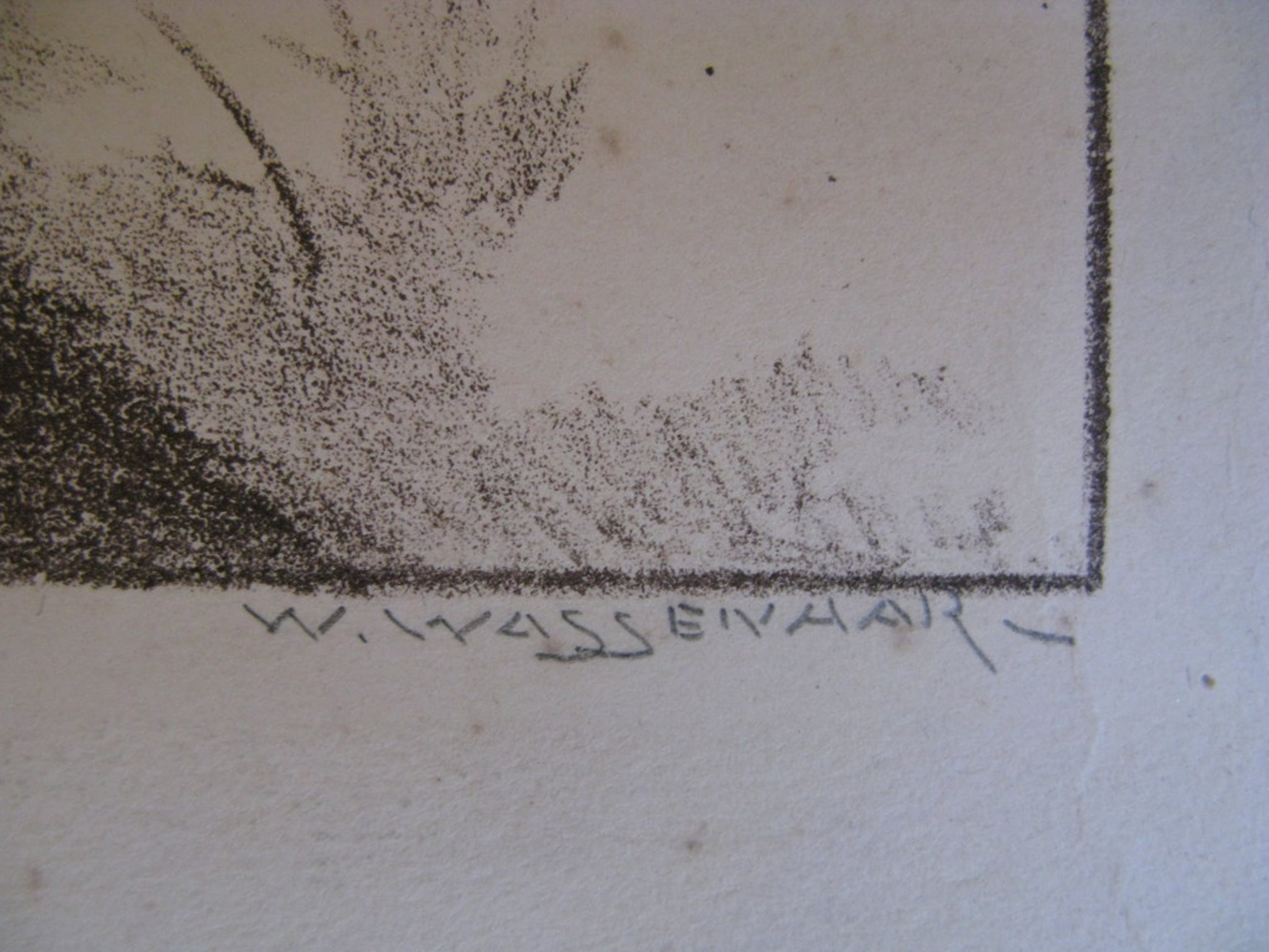 De ets/litho van Willem Wassenaar is op een groot vel gedrukt. De moet is duidelijk zichtbaar. Omdat er "aanleg" punten zijn kan het hier ook om een litho van de steen gaan. De afdruk is zeer gelijkmatig zacht van toon en scherp. Een zeer verstild sneeuwlandschap in goede conditie. Aan de buitenranden van het papier enkele kreukeltjes. Maat litho: 23x33 cm, maat papier: 33x50 cm. Wordt aangetekend verzonden of afgehaald door hoogste bieder.