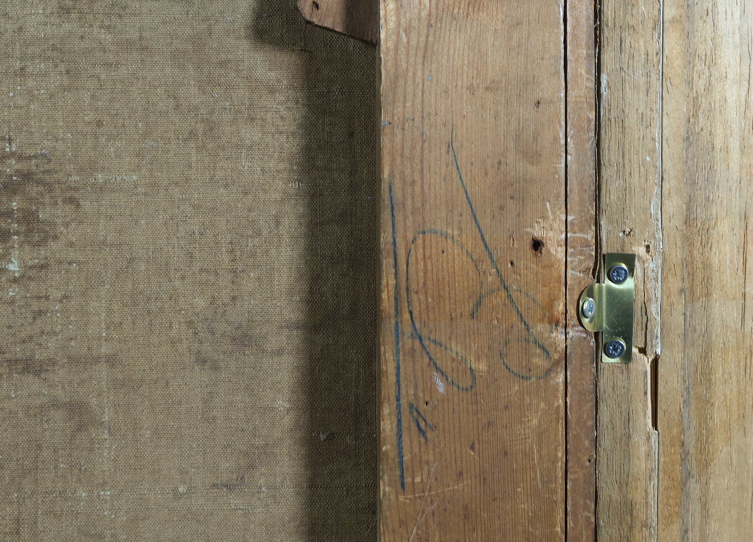 | Zeer klein gaat linksboven in het doek (nauwelijks zichtbaar) | |