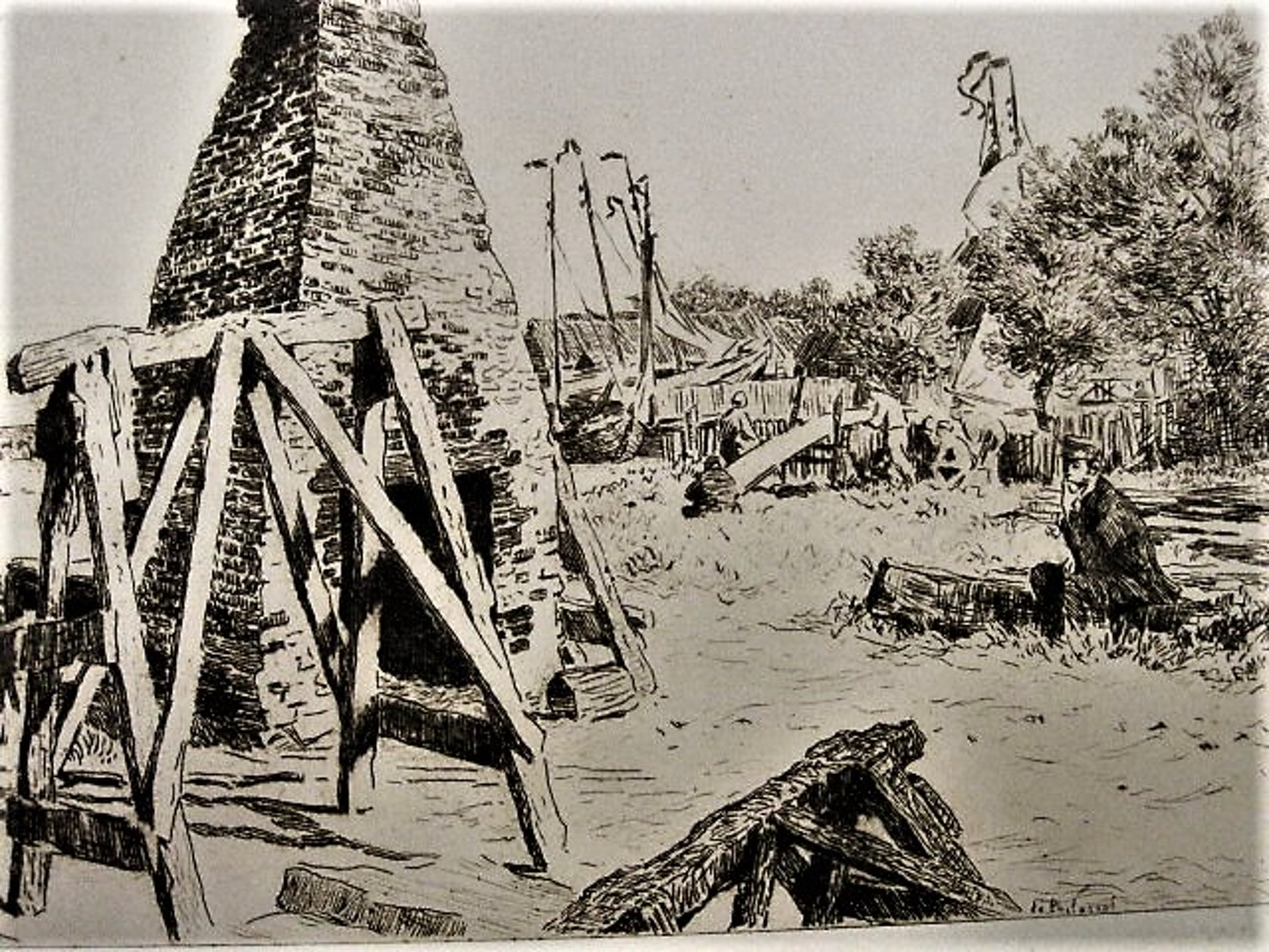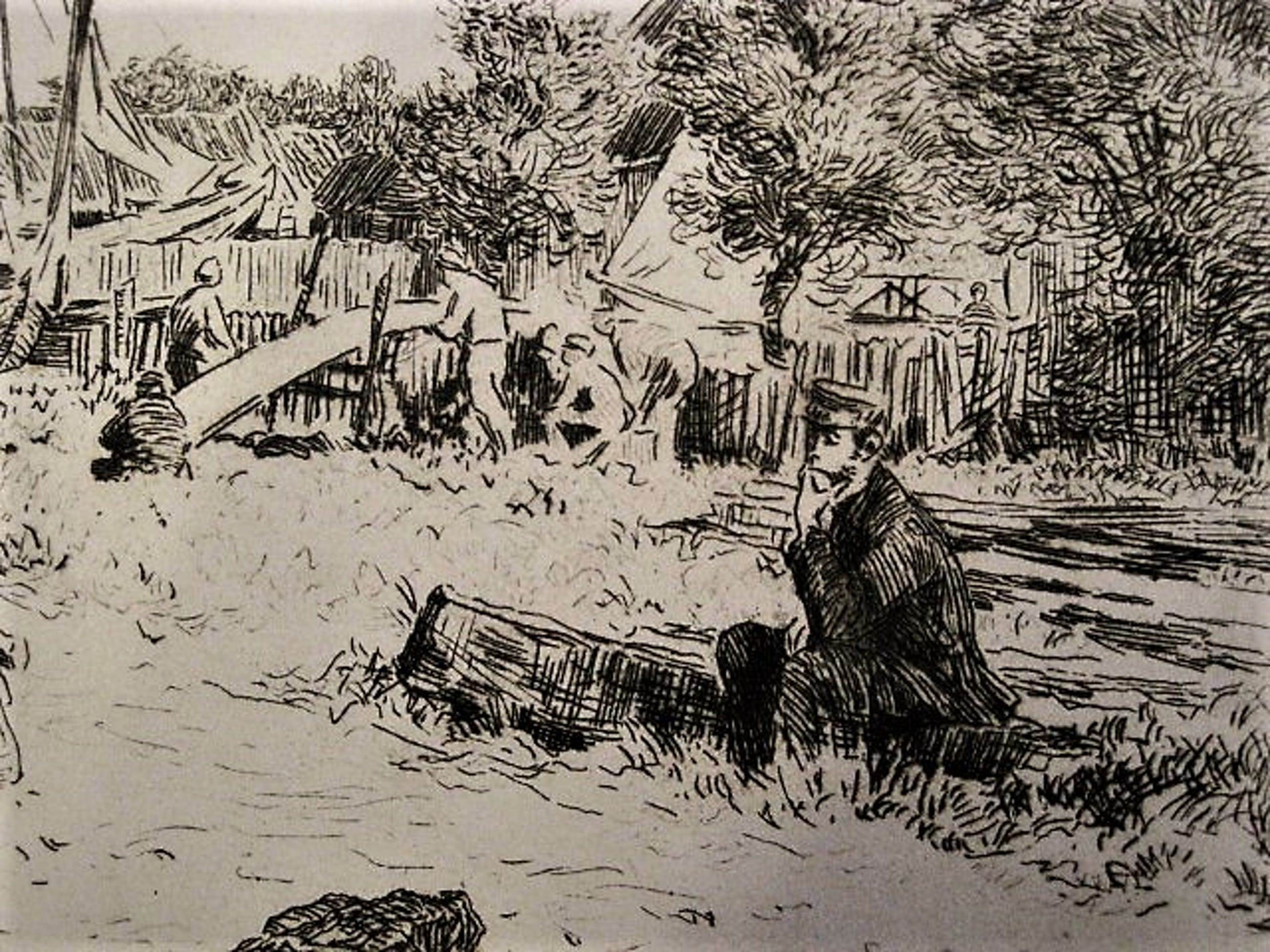 reeks schilderijen, aquarellen en tekeningen. Ook deze ets is tijdens
