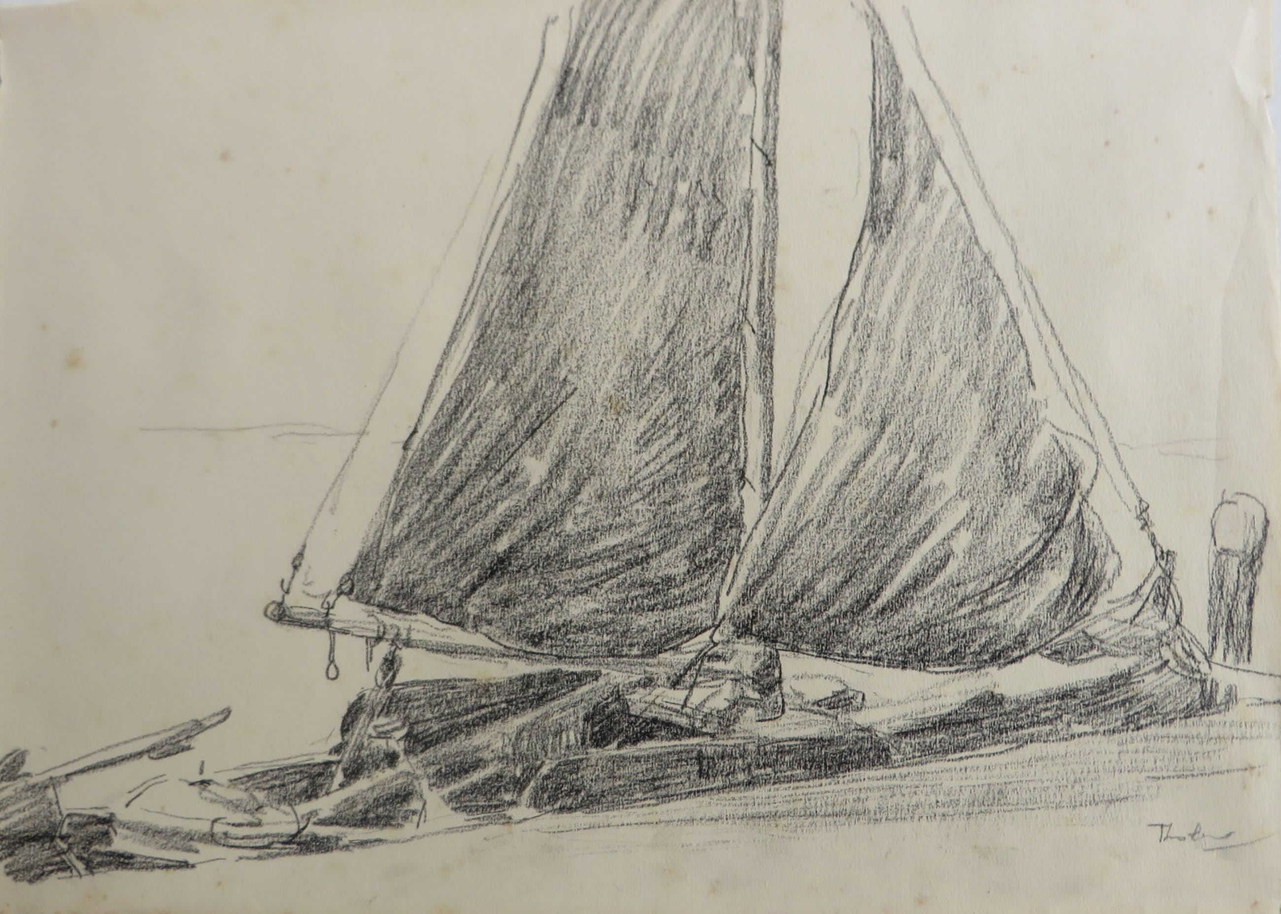 Fraaie tekeningen,studies van hollandse platbodems. Beide tekeningen komen uit zijn schetsboeken voorzien van monogrammen.