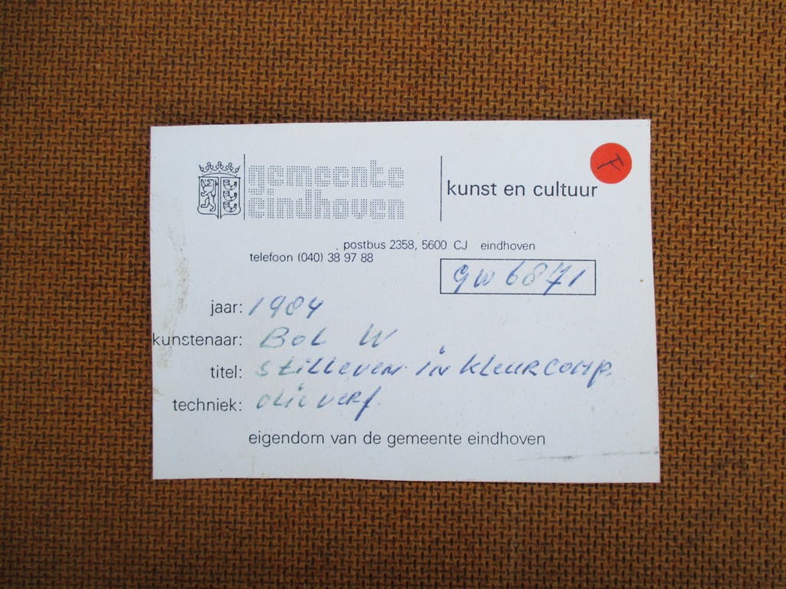 Het werk is af te halen op locatie. Als koper dient u zelf verpakkingsmateriaal mee te nemen. De locatie is: Heeze, Nederland