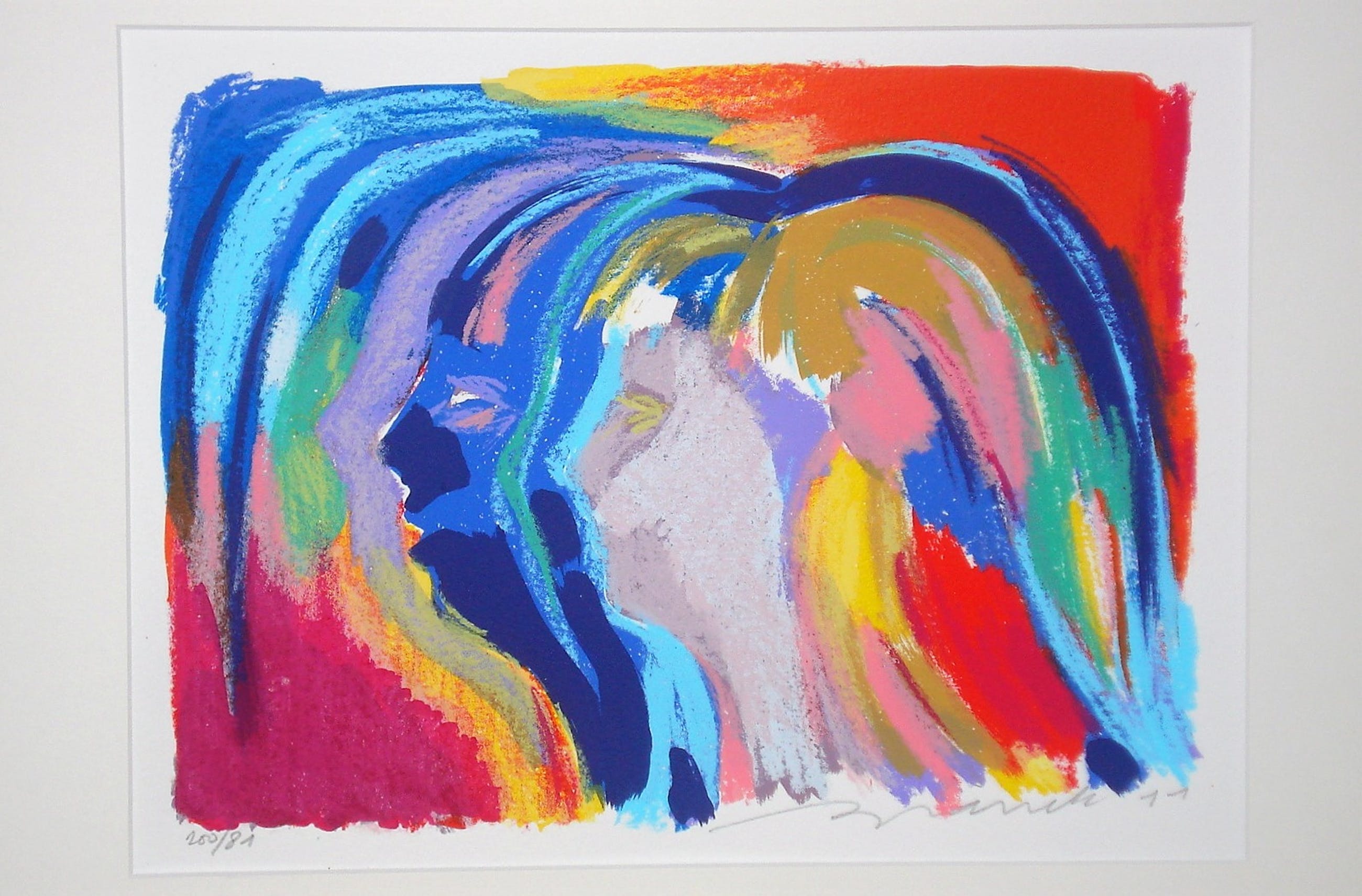 Techniek:Zeefdruk, genummerd (81/200), uitgevoerd op 300 grs. Aquarelpapier met watergedragen (milieuvriendelijke) inkten in zeventien drukgangen.