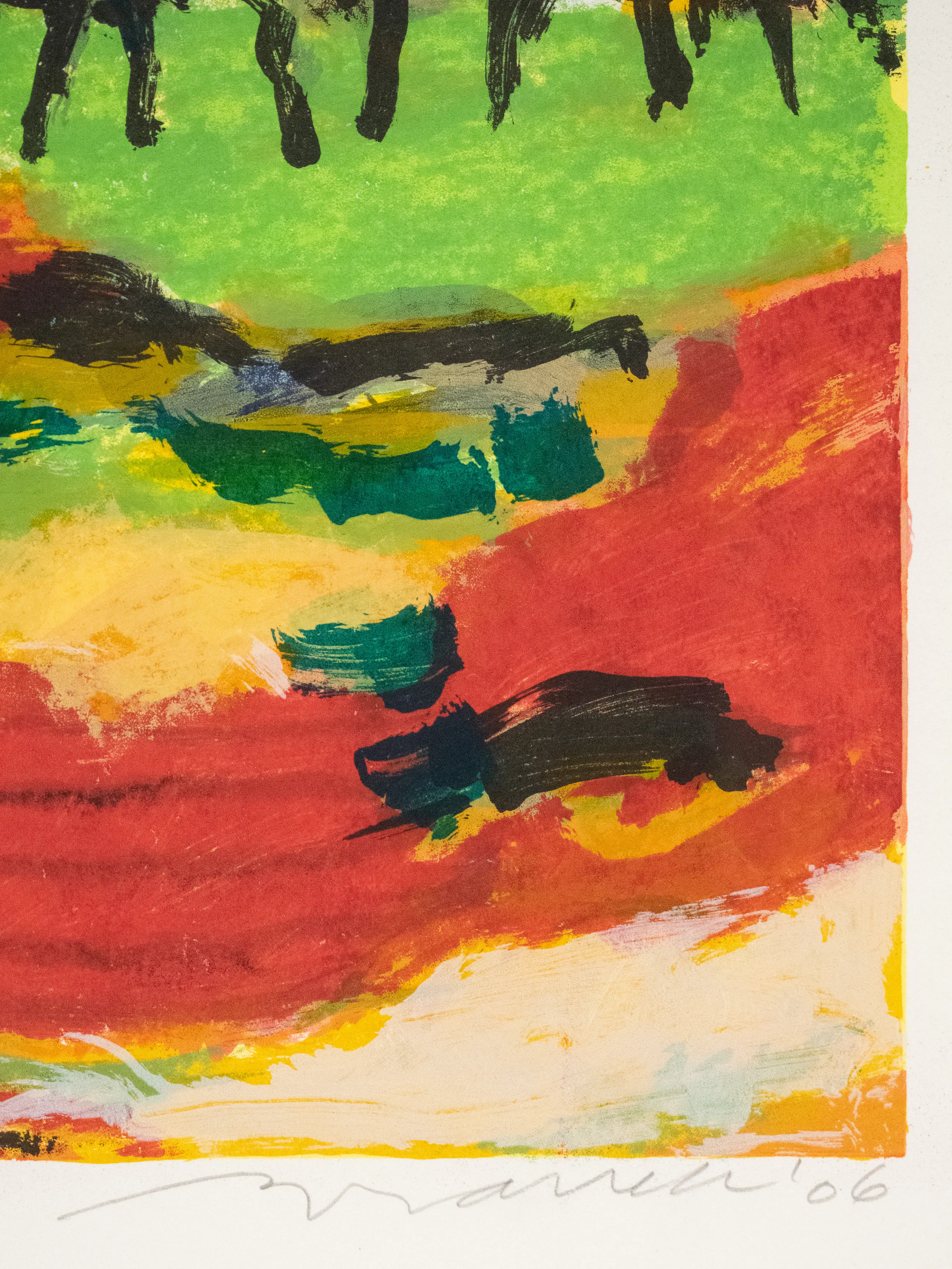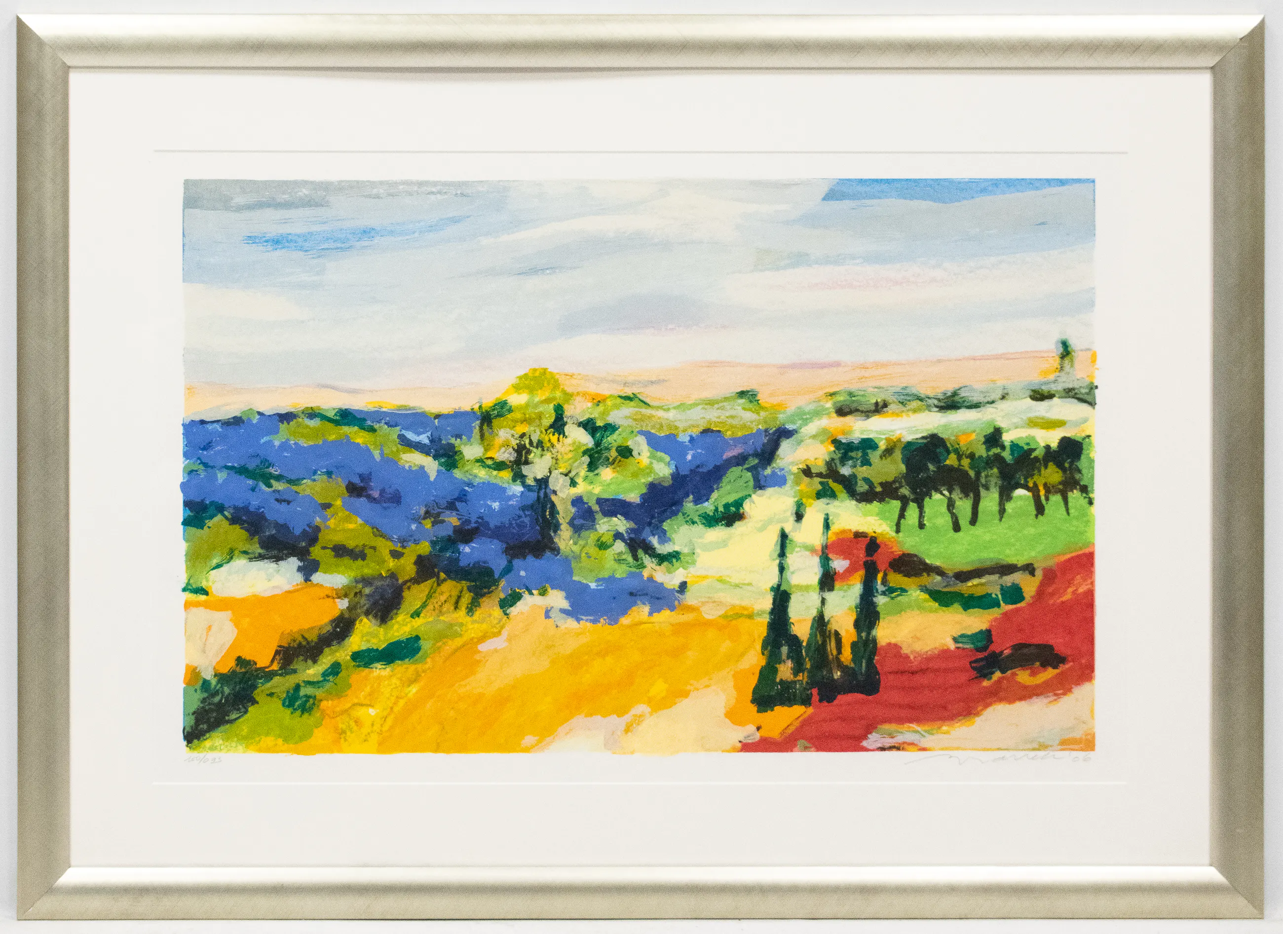 Prachtige ingelijst zeefdruk door Willem Brauck(mann). Het werk is ingelijst in een mooie zilverkleurige lijst en beschikt over een ophangmechanisme.