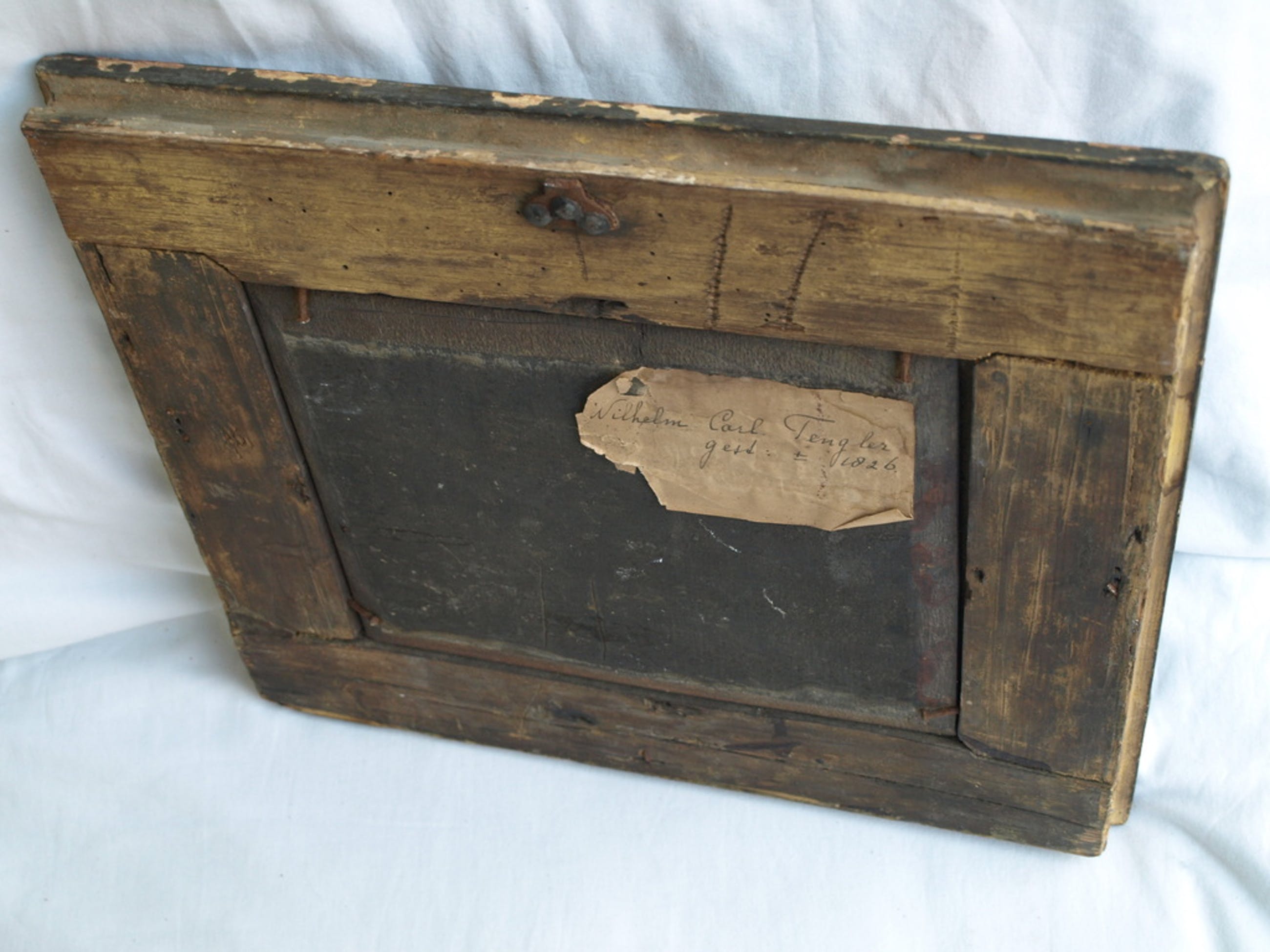 Naam en datum staan op de achterkant van het paneel.