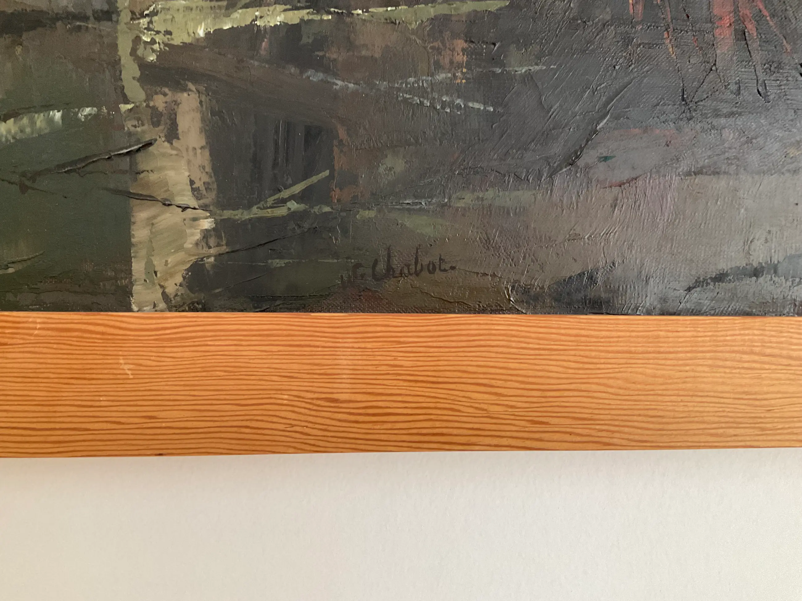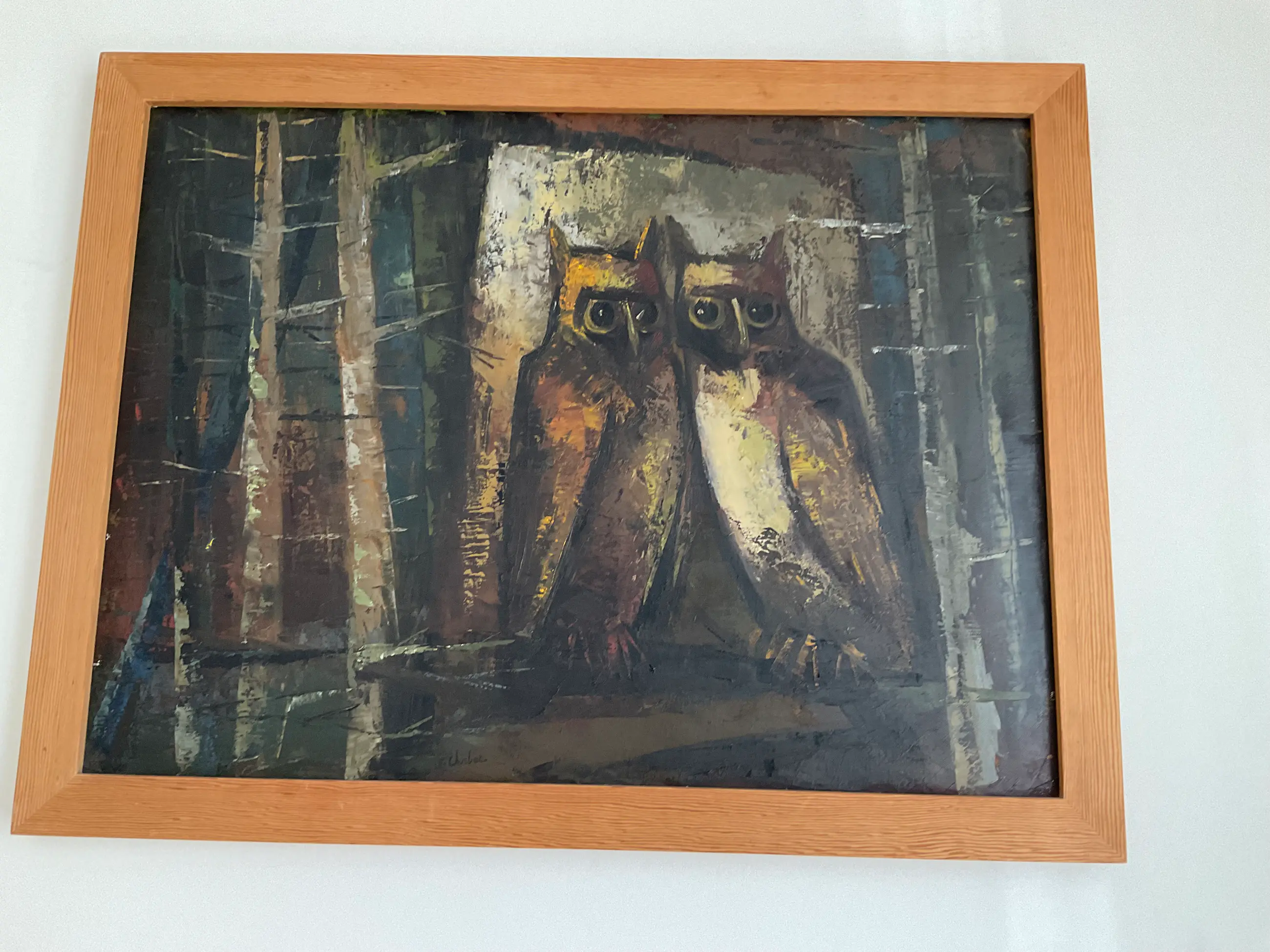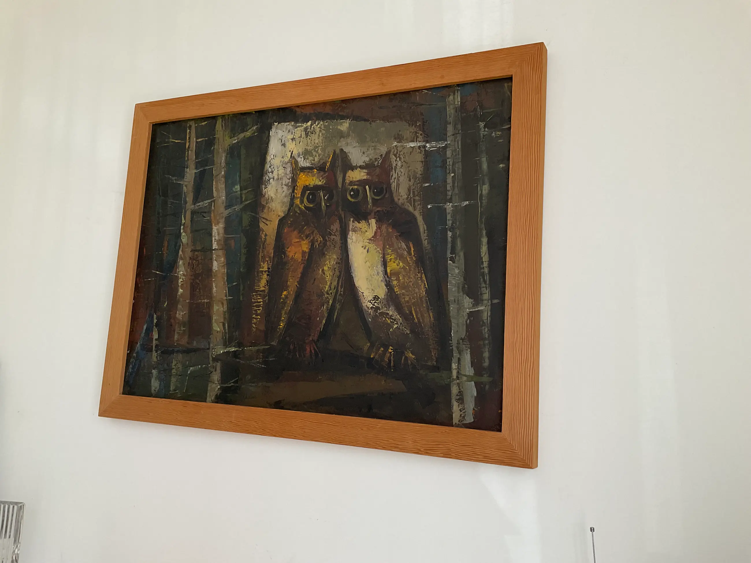 Een mooi stukje werk van Willem Chabot Rustende uilen Mooi ingelijst in een houten eiken lijst De hoogte is 68 cm Breed 86 cm Het schilderij is in mooie staat
