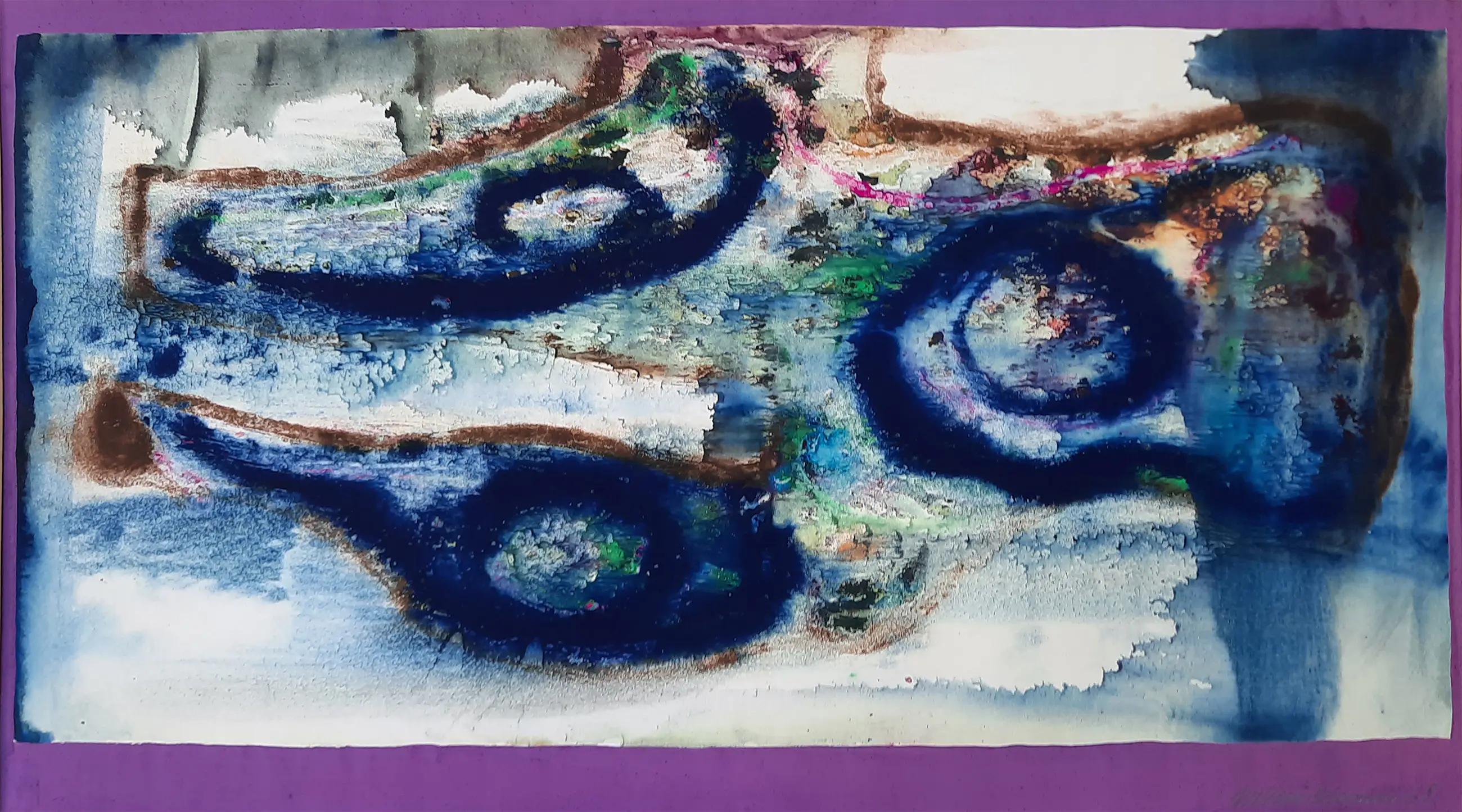 Schilderij van Willem Claassen in passe-partout. Maat uitsnede: 30 x 54 cm.