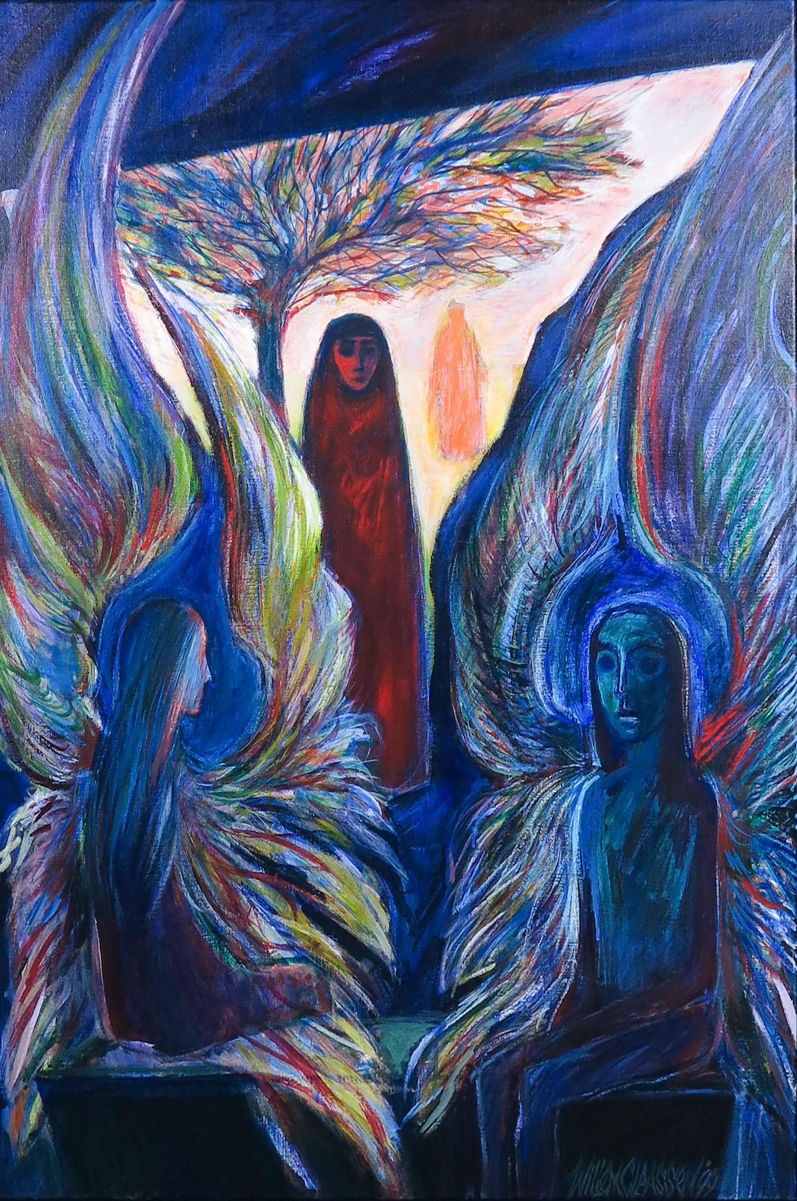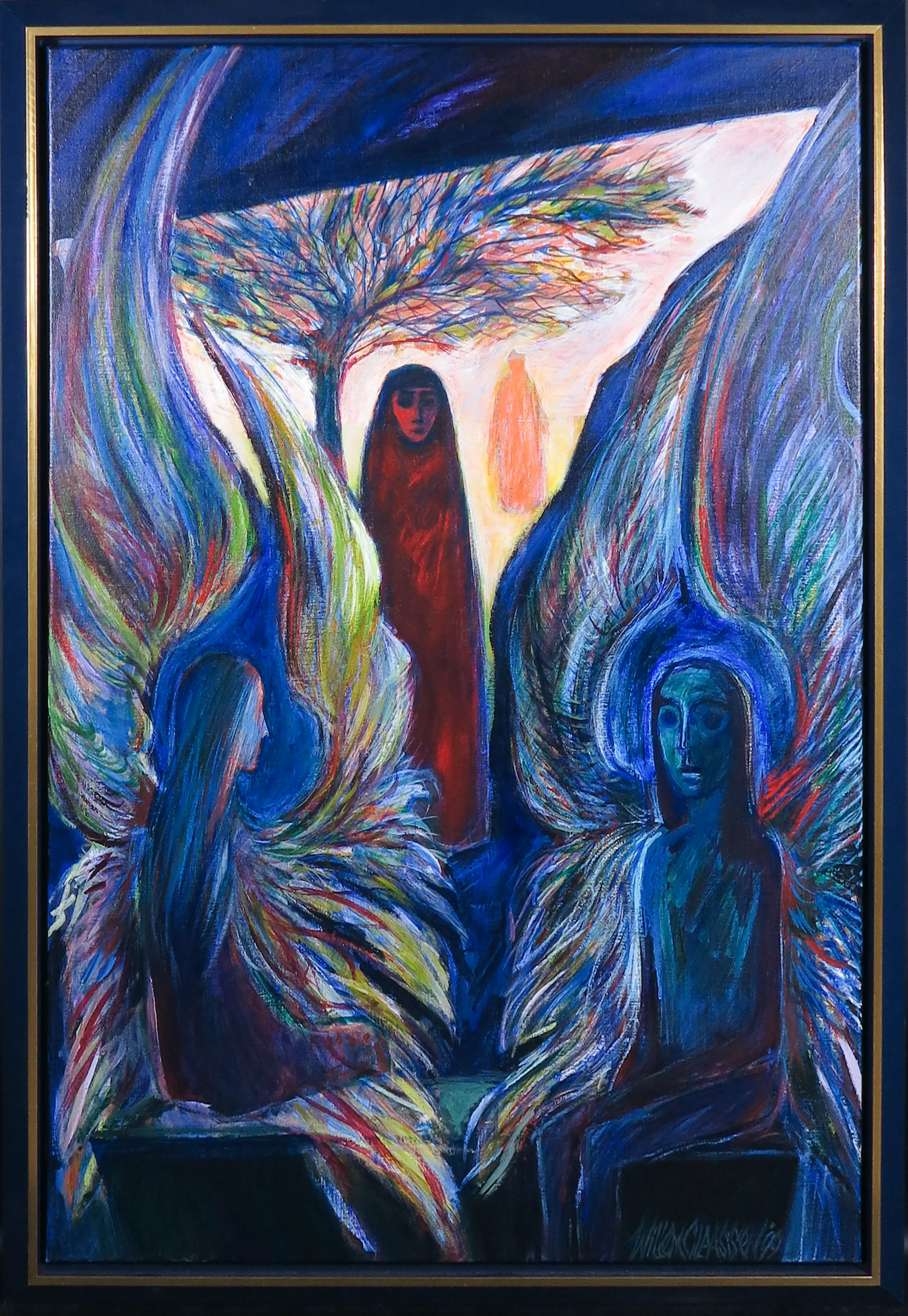 Intrigerend werk van Willem Claassen met prachtige kleuren. Willem Claassen studeerde aan de Rijksacademie van Beeldende Kunsten in Amsterdam. Zijn werk wordt gekenmerkt door fel kleurgebruik en Bijbelse verhalen als onderwerp.
