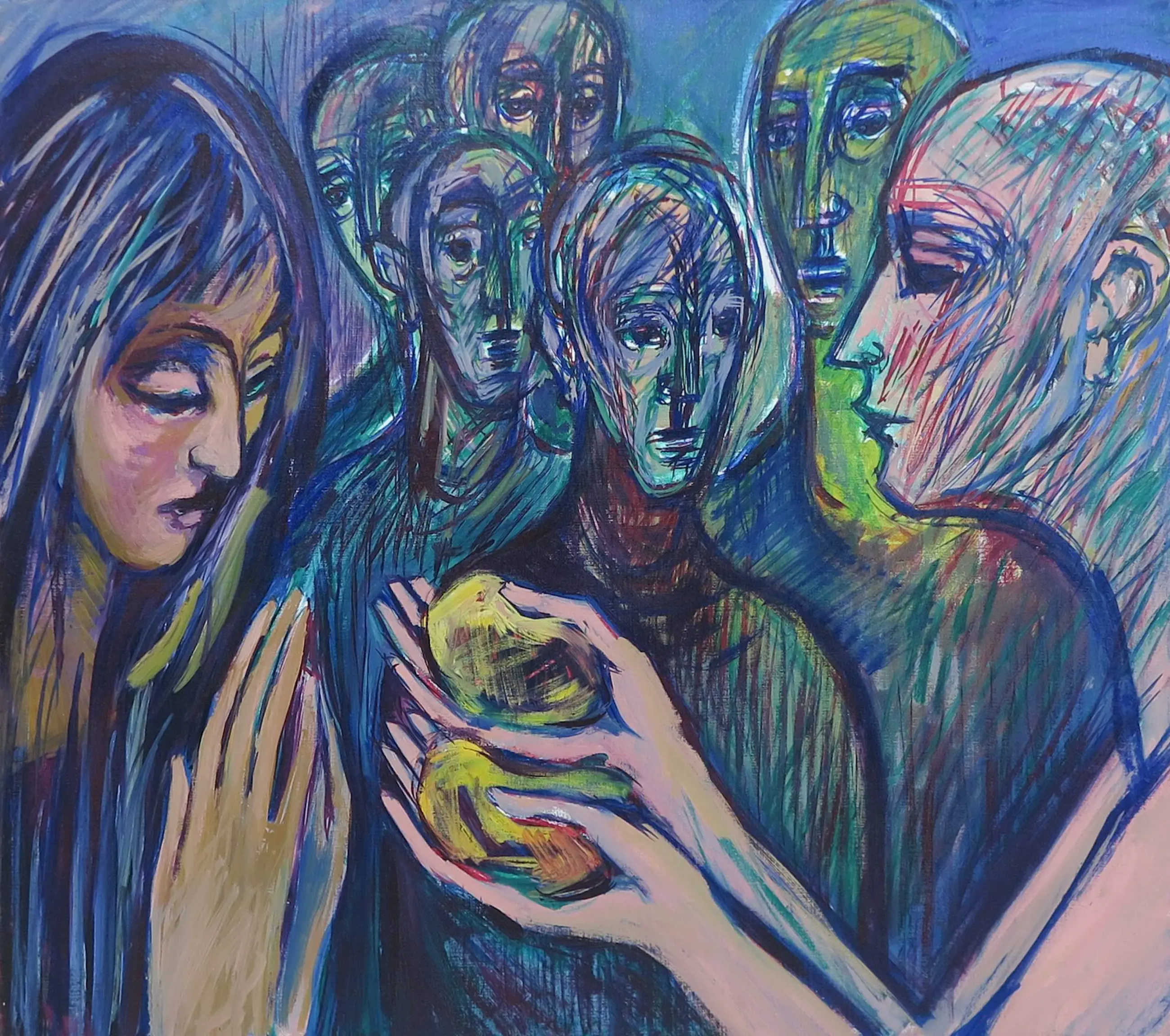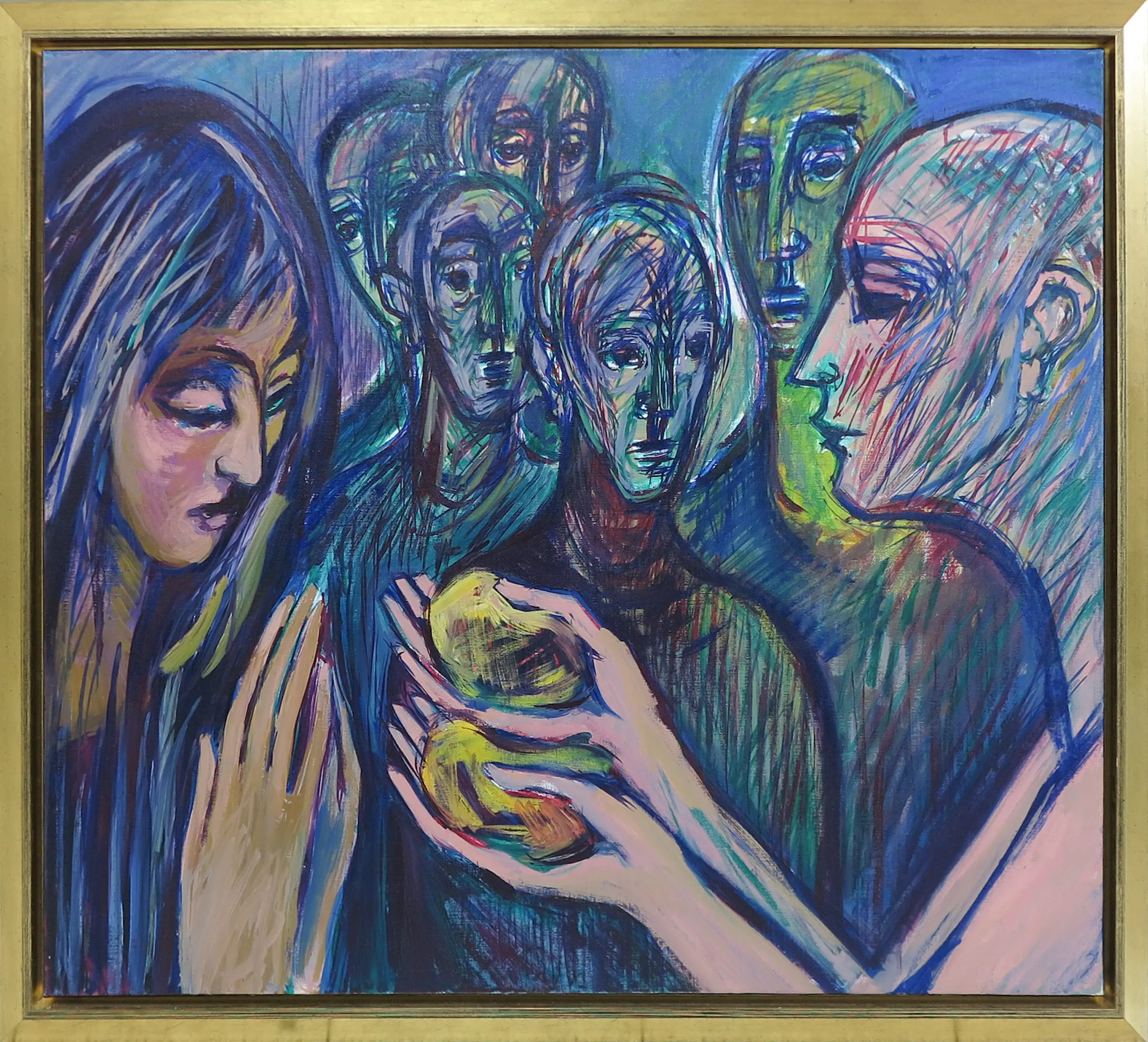 Expressief werk van Willem Claassen. Het werk draagt de titel: "Dit is mijn lichaam voor u" / "De ongenode bruiloftsgasten".