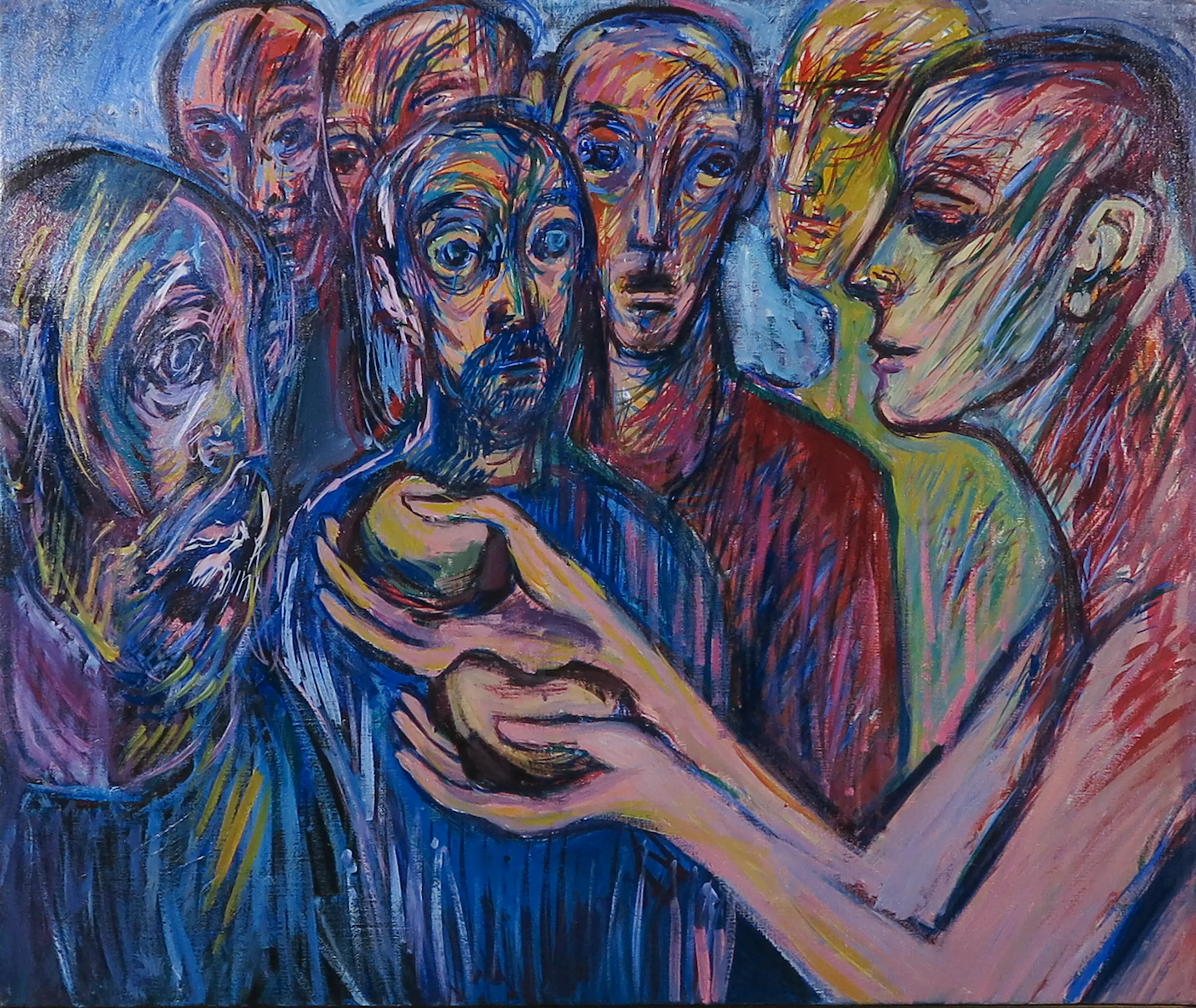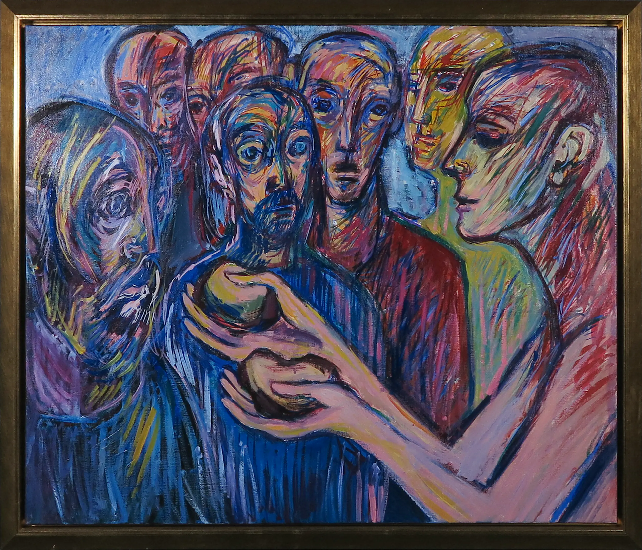 Expressief werk van Willem Claassen. Het werk draagt de titel: "Dit is mijn lichaam voor u" / "De ongenode bruiloftsgasten". Verso handgesigneerd.