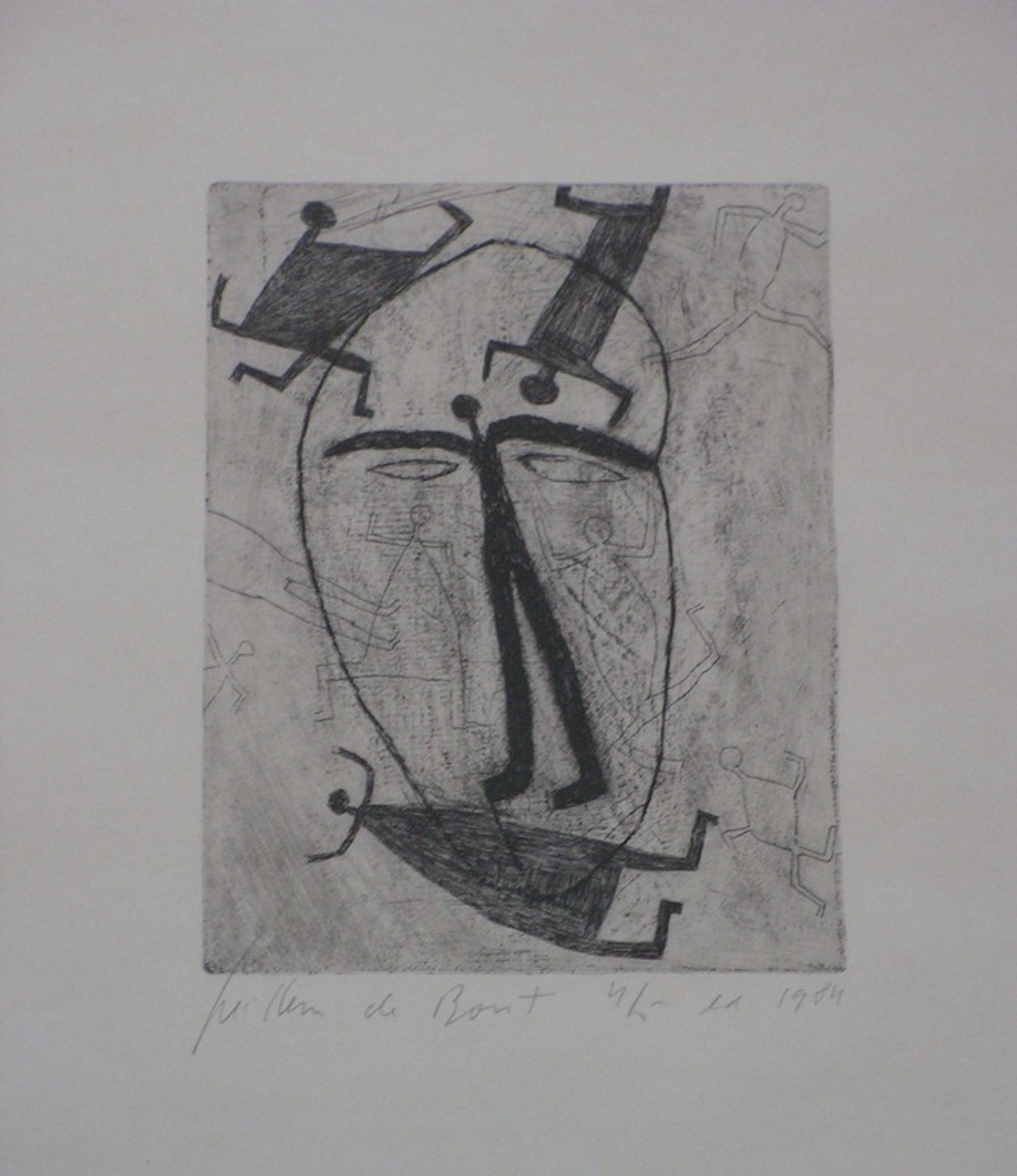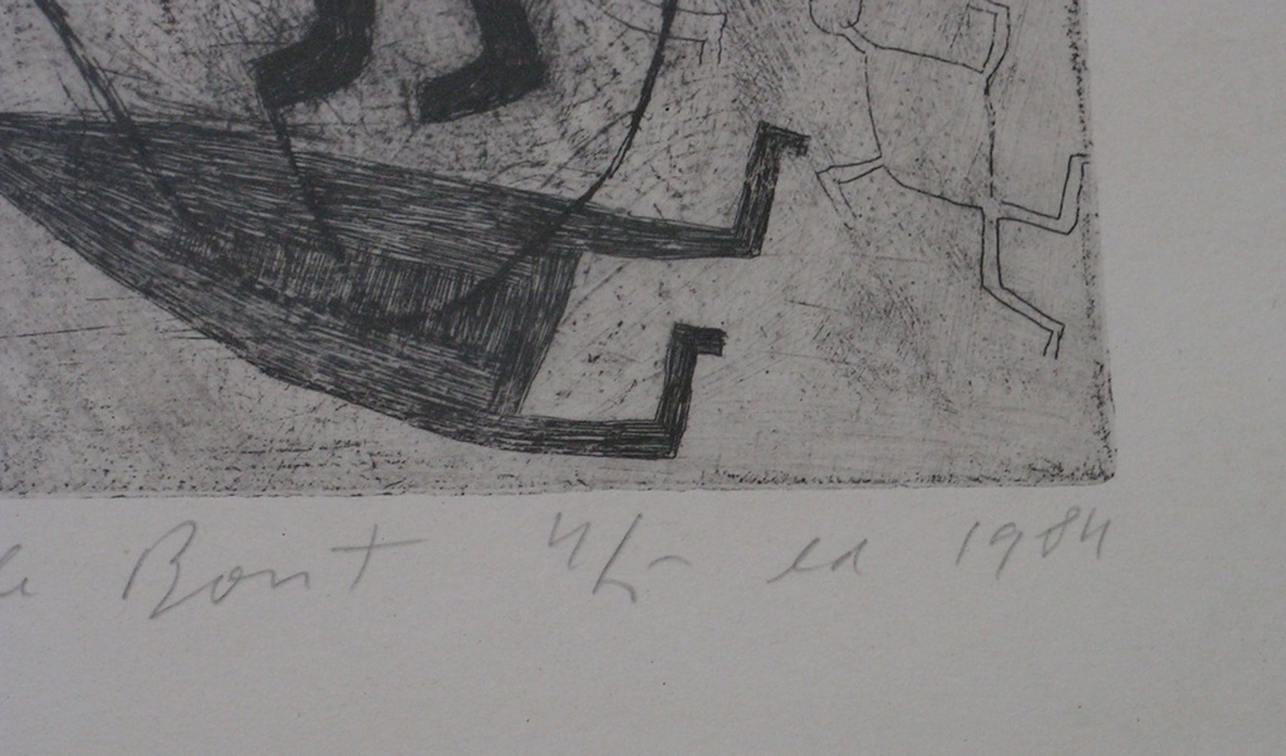 Willem de Bont creëerde deze ets in 1984 in een oplage van 5 met potlood gesigneerde en genummerde exemplaren.