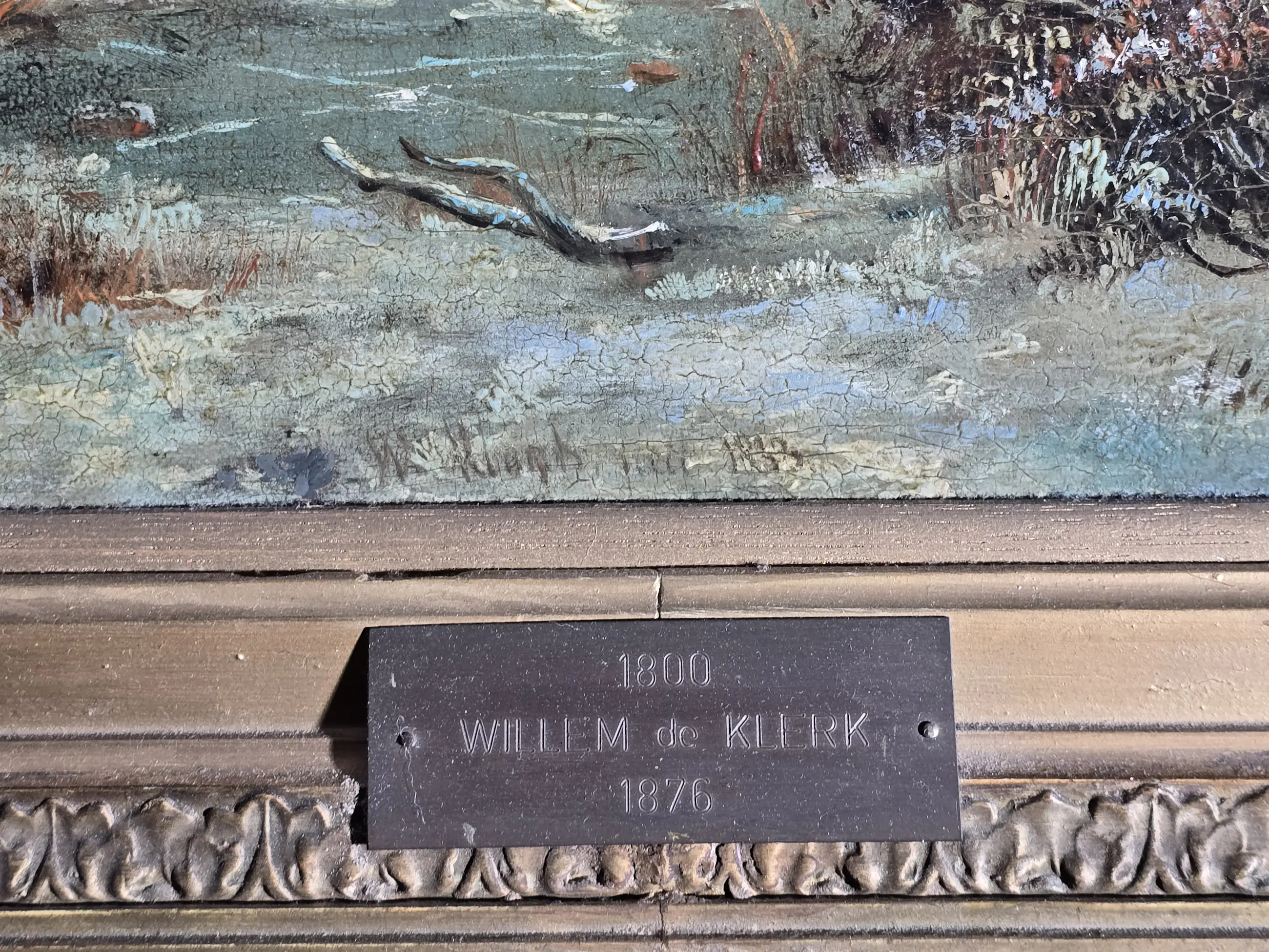 Het schilderij is te groot en zwaar om "even" van de wand te halen voor een foto, ik heb dus geen foto van de achterzijde.