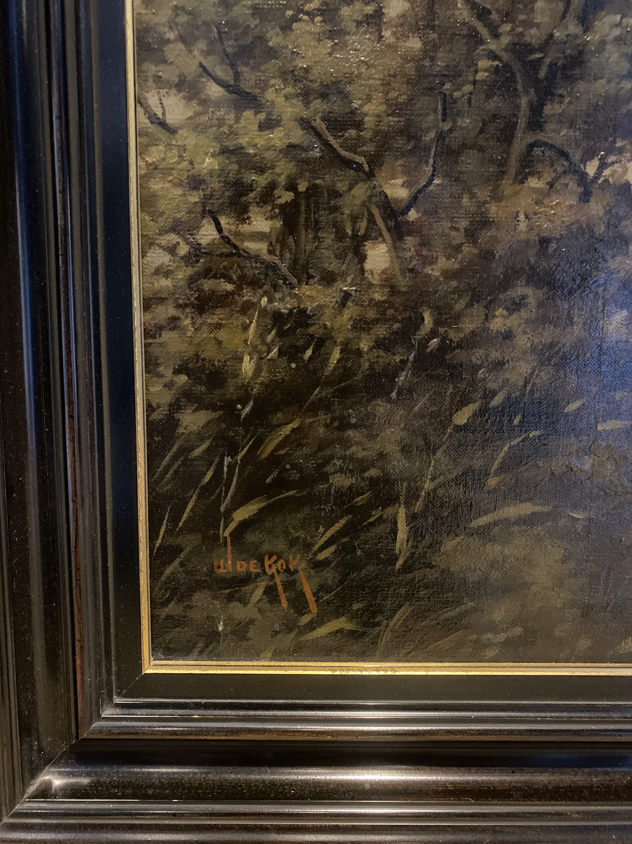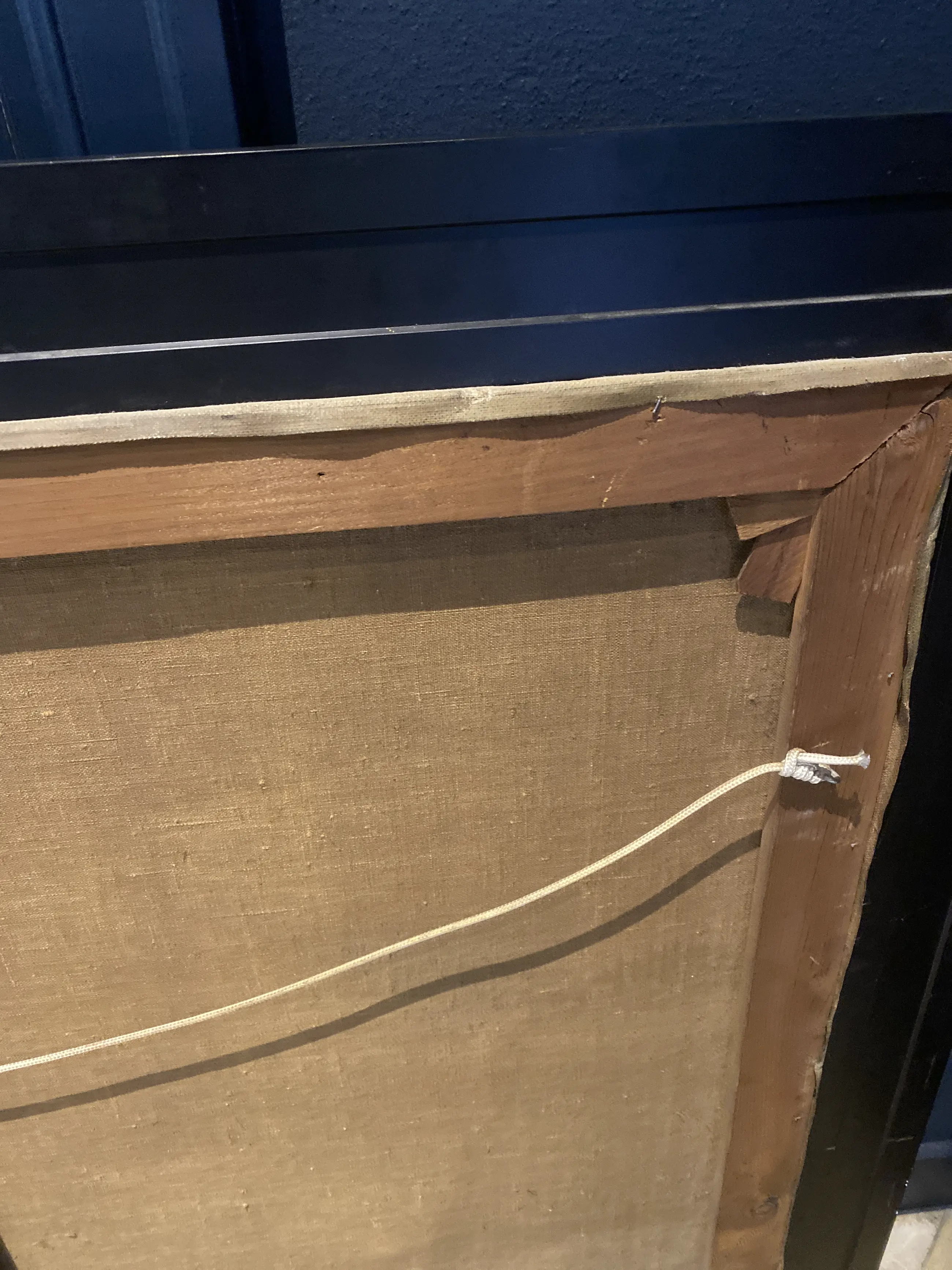 Gezien de leeftijd van het doek en de lichte beschadigingen zoals vermeld in omschrijving is dit doek in goede conditie