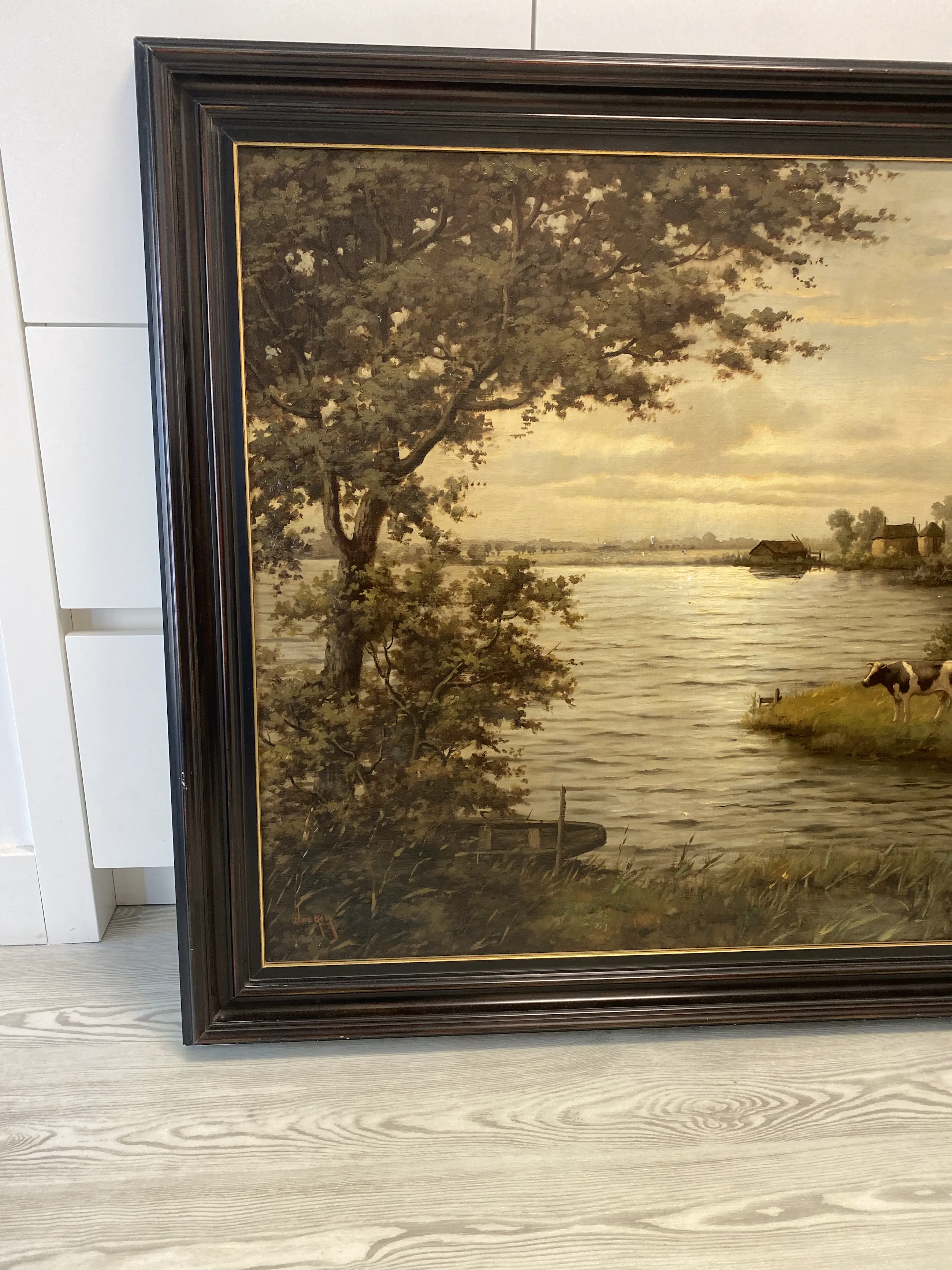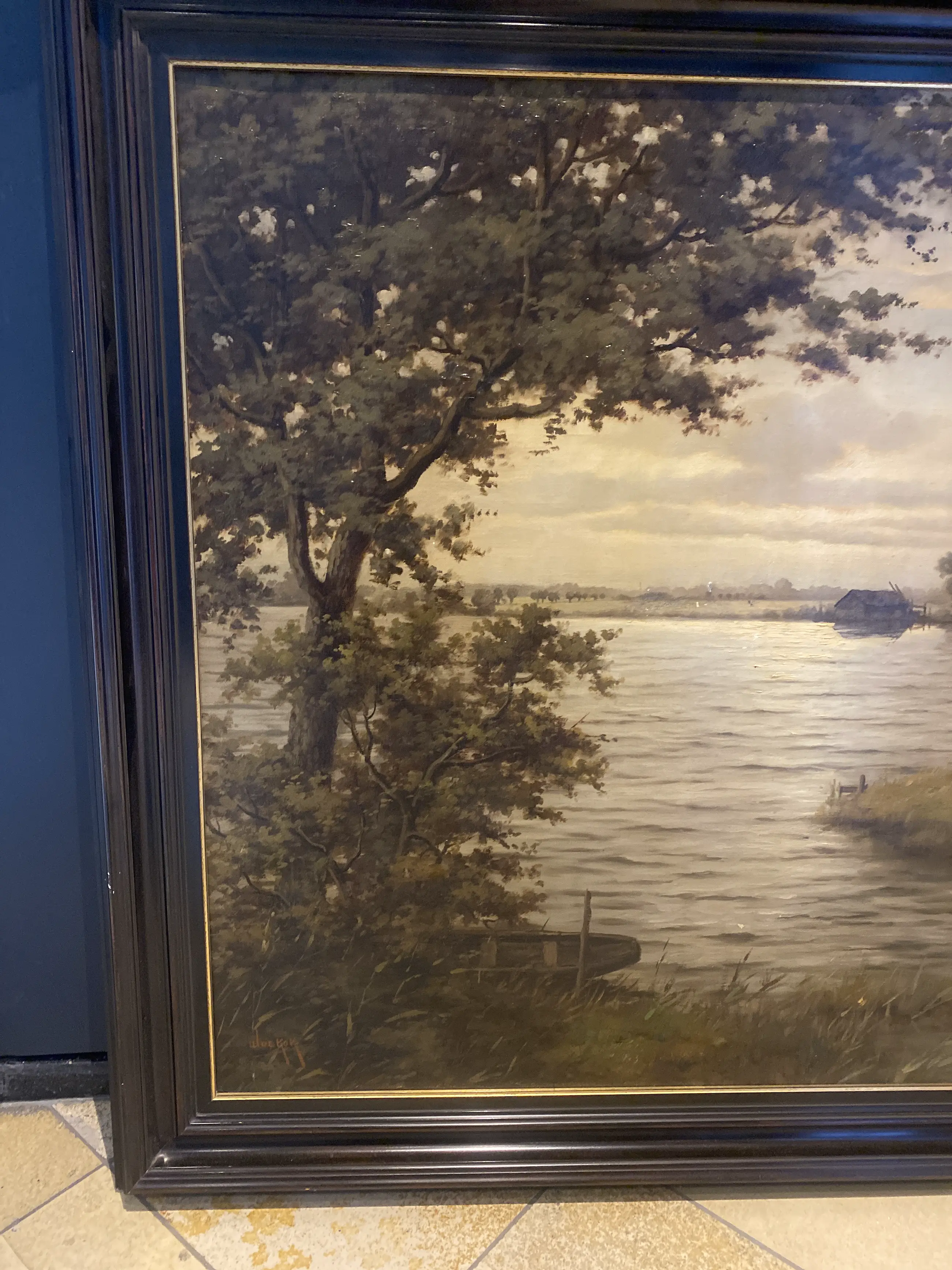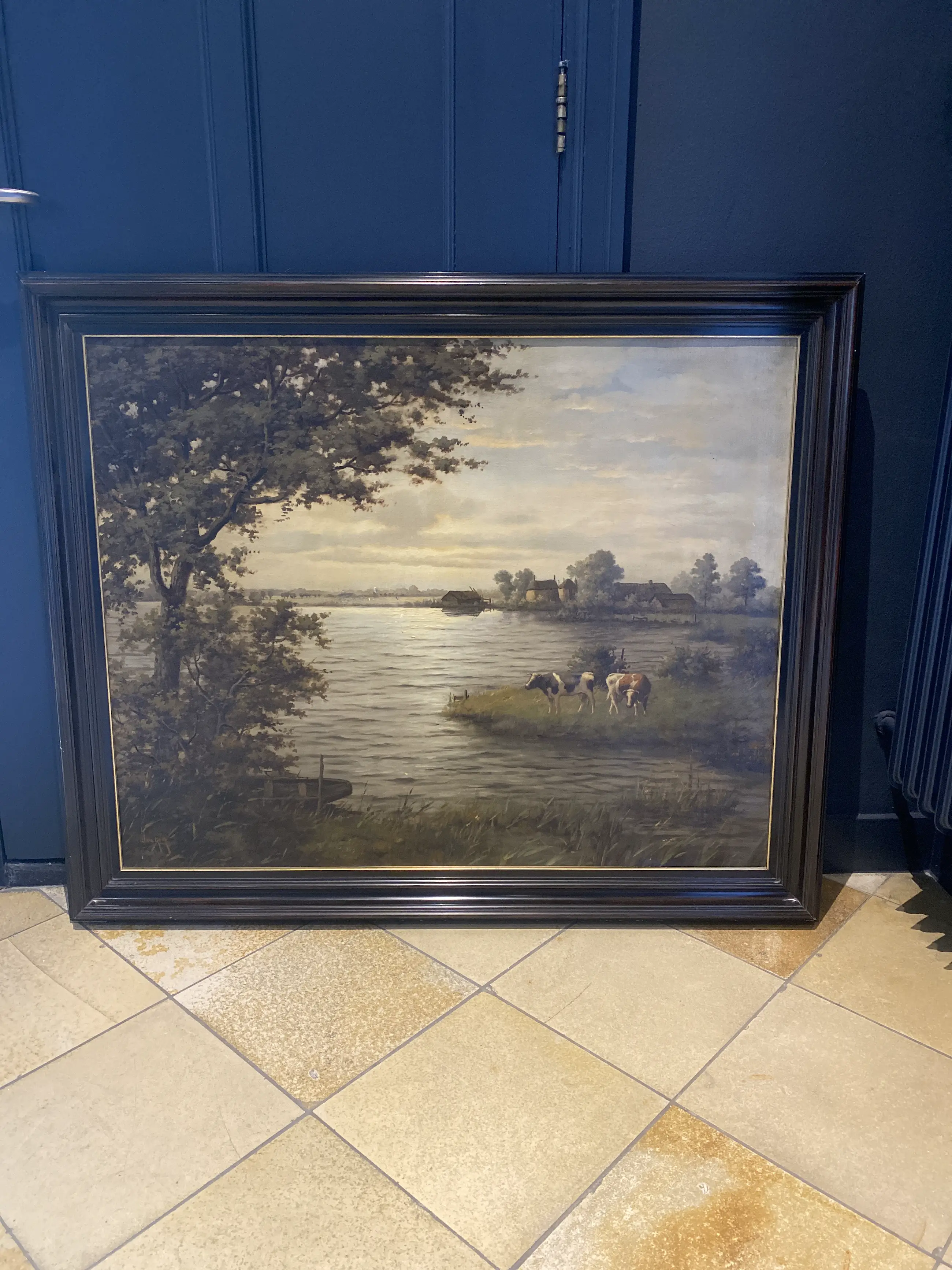 Schilderij met lijst. In goede staat gezien leeftijd, met lichte beschadigingen zoals op foto te zien ( klein beetje geel ).