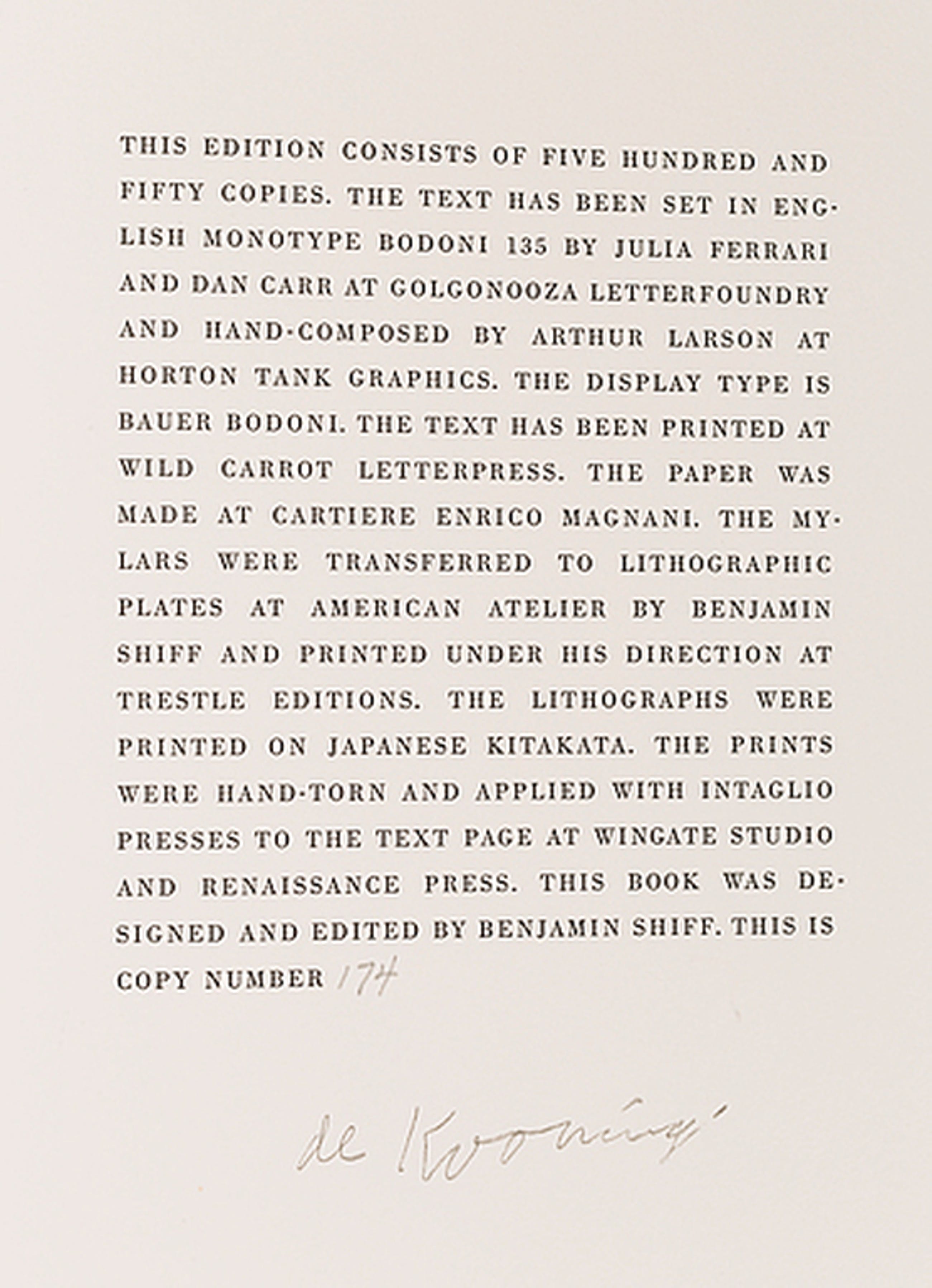 Edition limited to five hundred fifty numbered copies, this is number 174