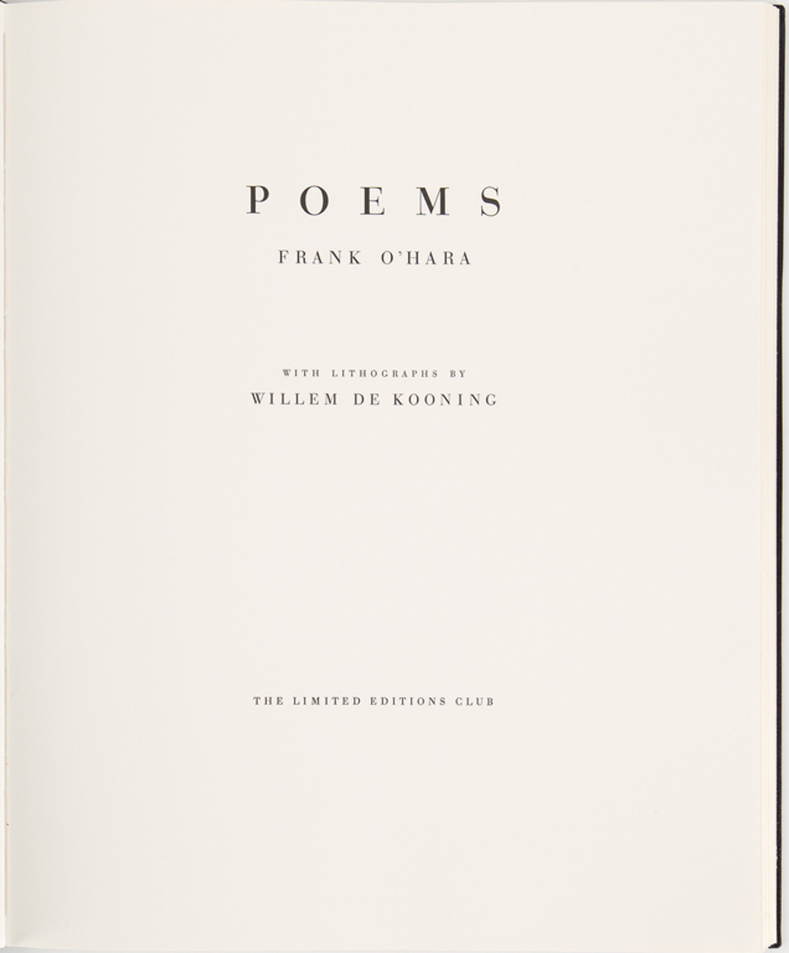 Seventeen of de Kooning’s eighteen charcoal drawings are reproduced here for the first time as originally intended‑-with their subtle strokes and wide tonal range. The thir-teen poems begin with O’Hara’s “Ode to Willem de Kooning.” O’Hara dashed off his poems at his office, on the street, at lunch-time.