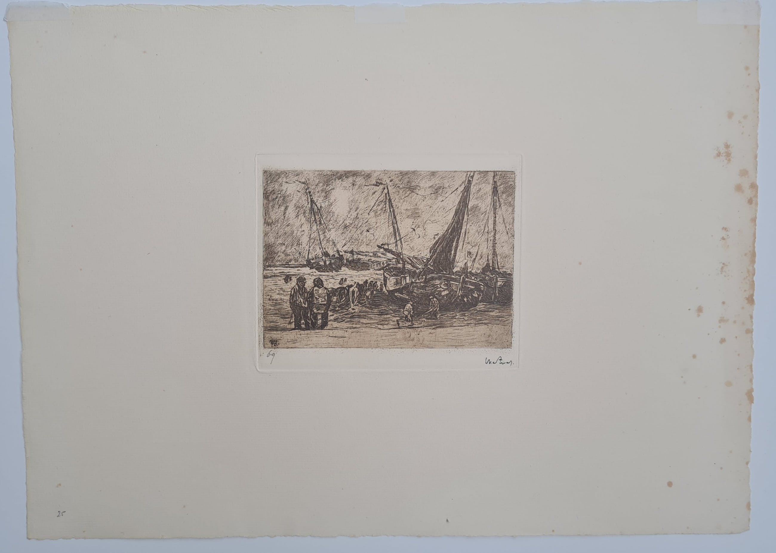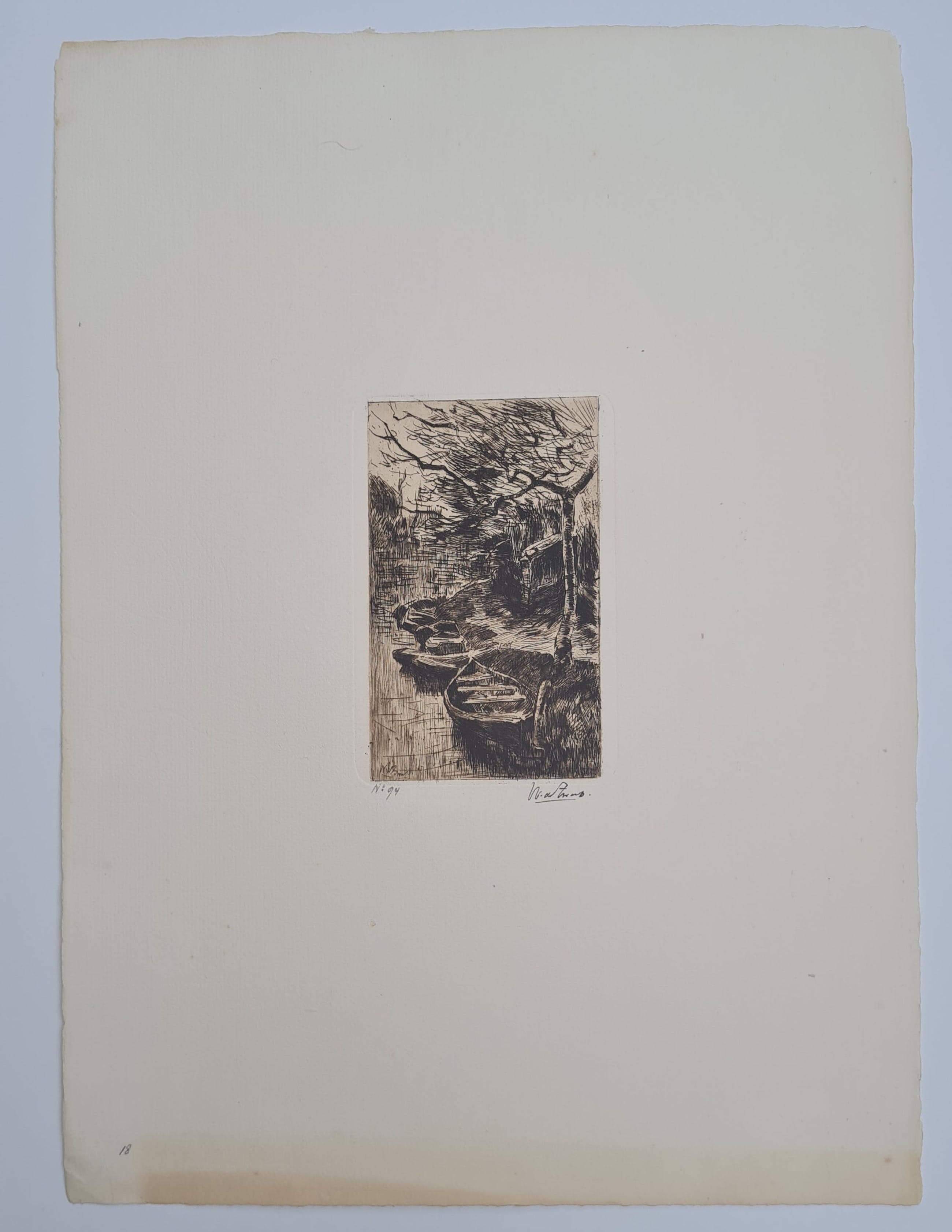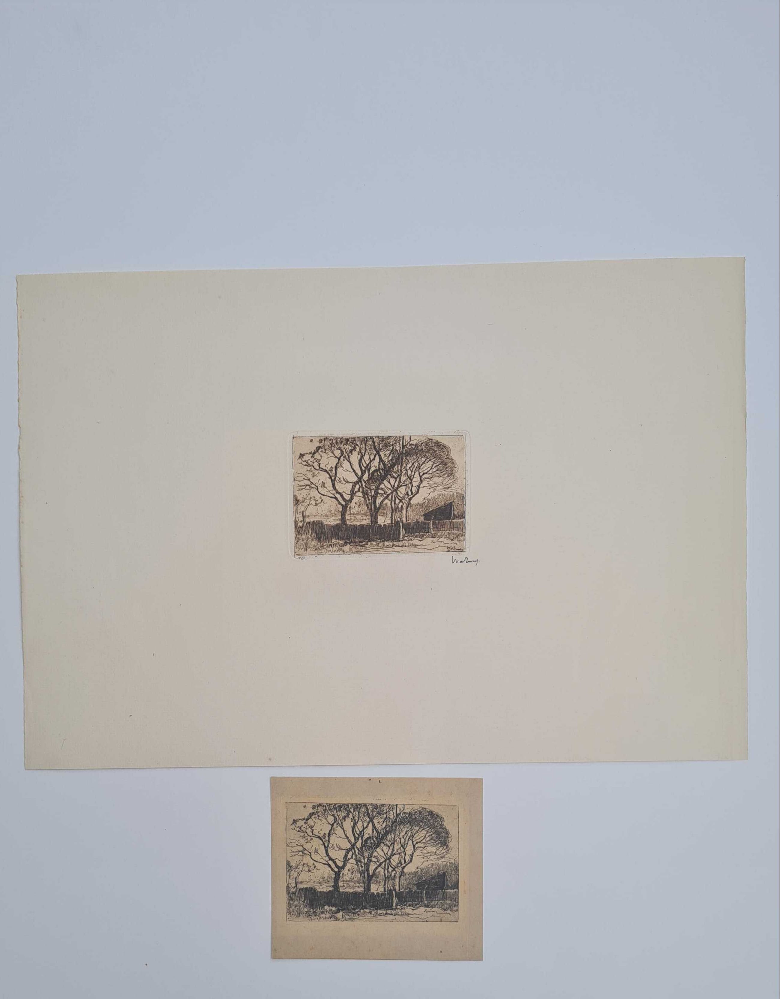 Kavel van 6 etsen van Willem de Zwart, waarvan 5 handgesigneerd en met brede marges. Het 6de etsje (Bomen met omheining) is een proefdrukje op Japans papier van de bijgevoegde ets.