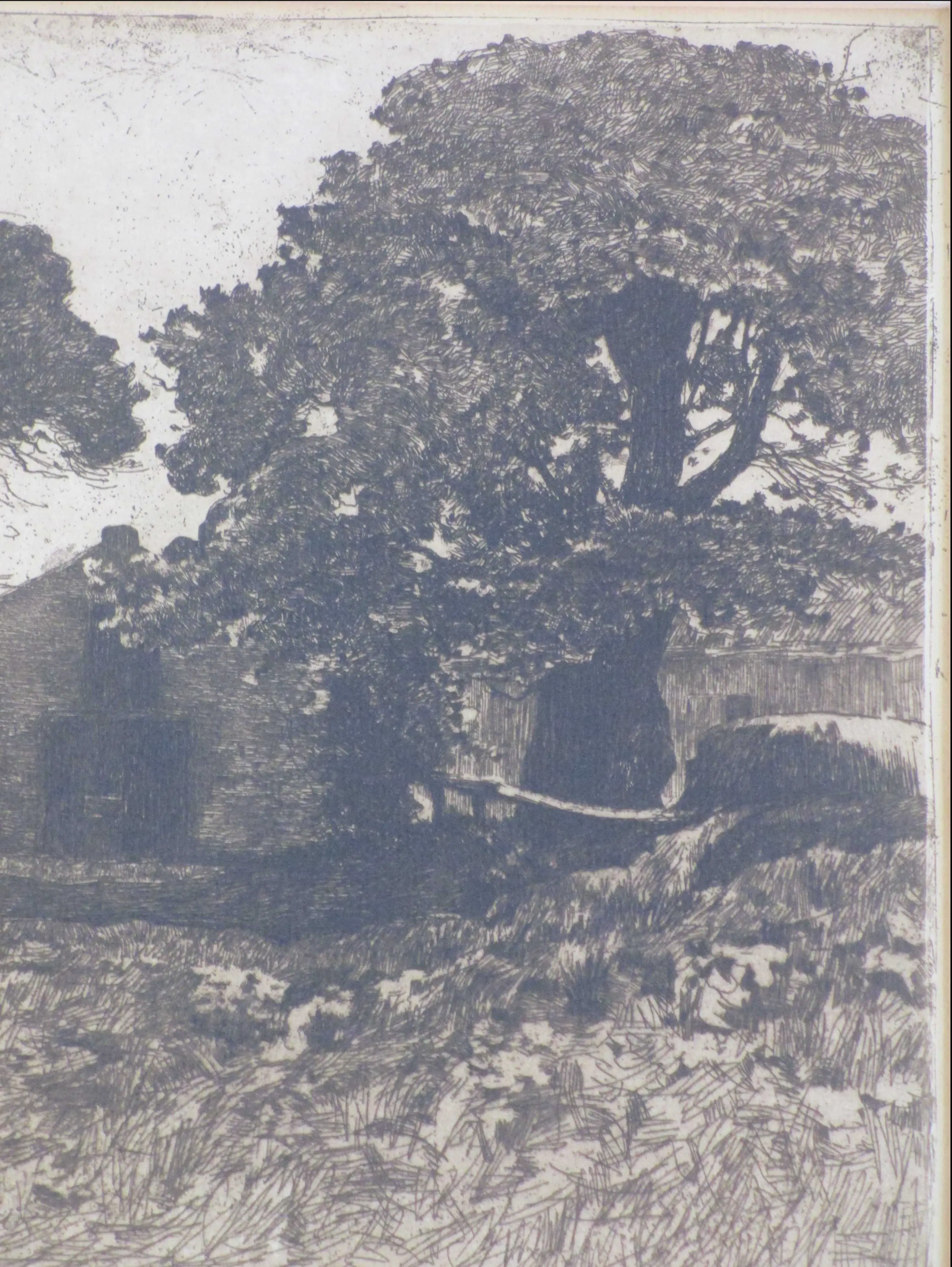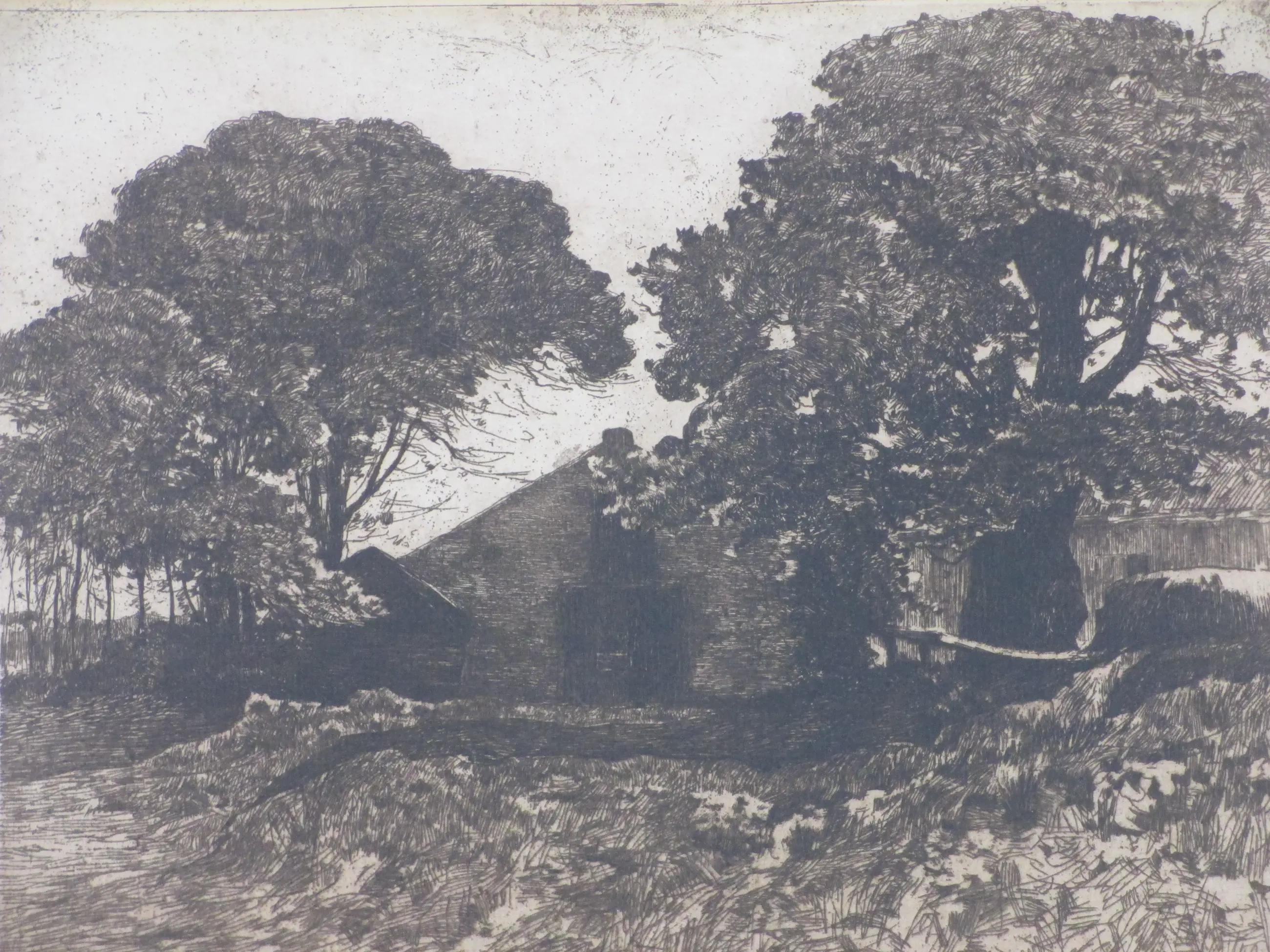 Ets door Willem de Zwart Voorstelling van een boerderij in Dekkersduin Ets onder passepartout, beeldmaat 25.5x31, p.p.maat 41x45 Gesigneerd in inkt r.o.: 'W de Zwart' Genummerd in potlood l.o.: 'No 55' Literatuur: Bionda 15 Authenticiteit volledig gegarandeerd