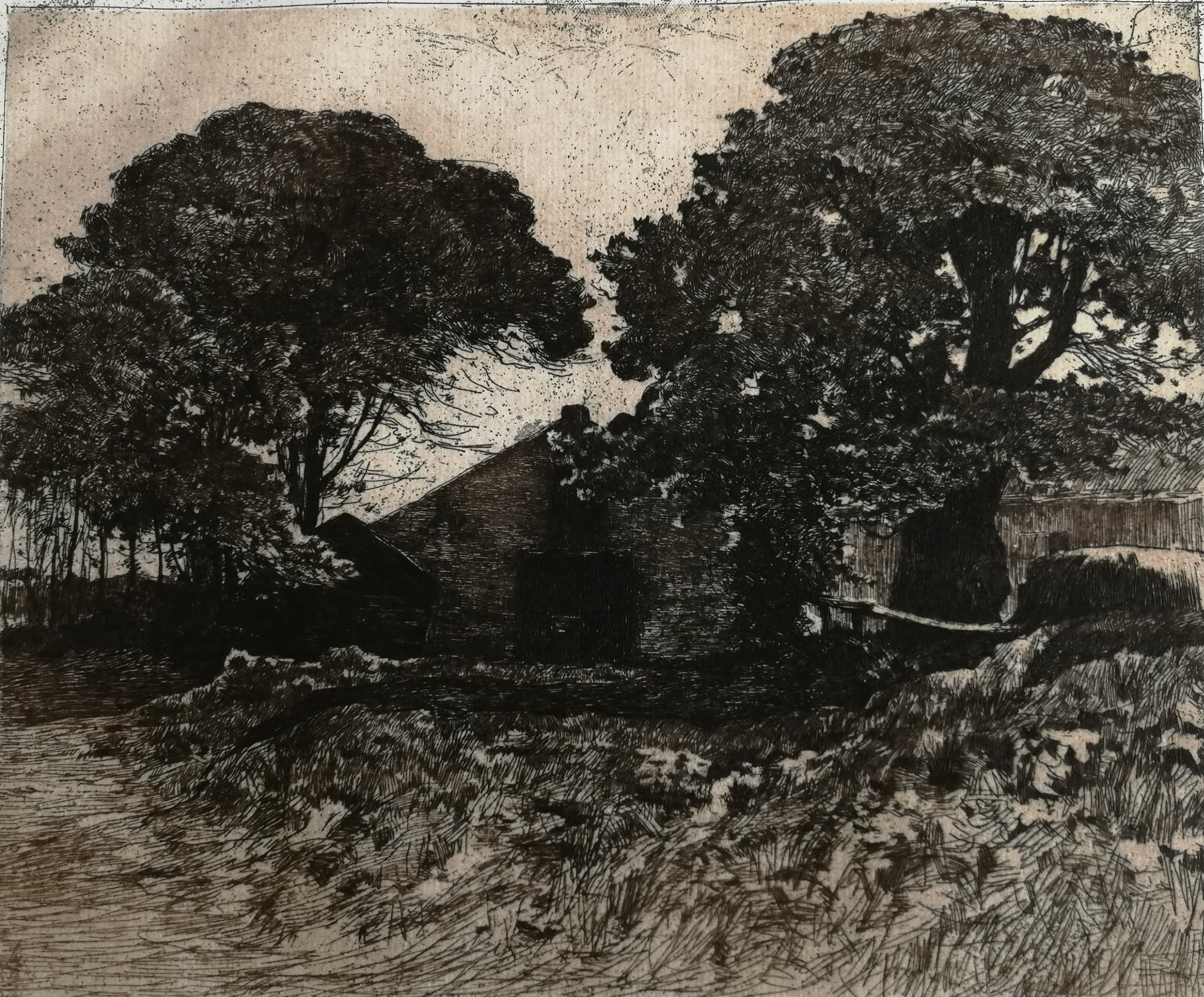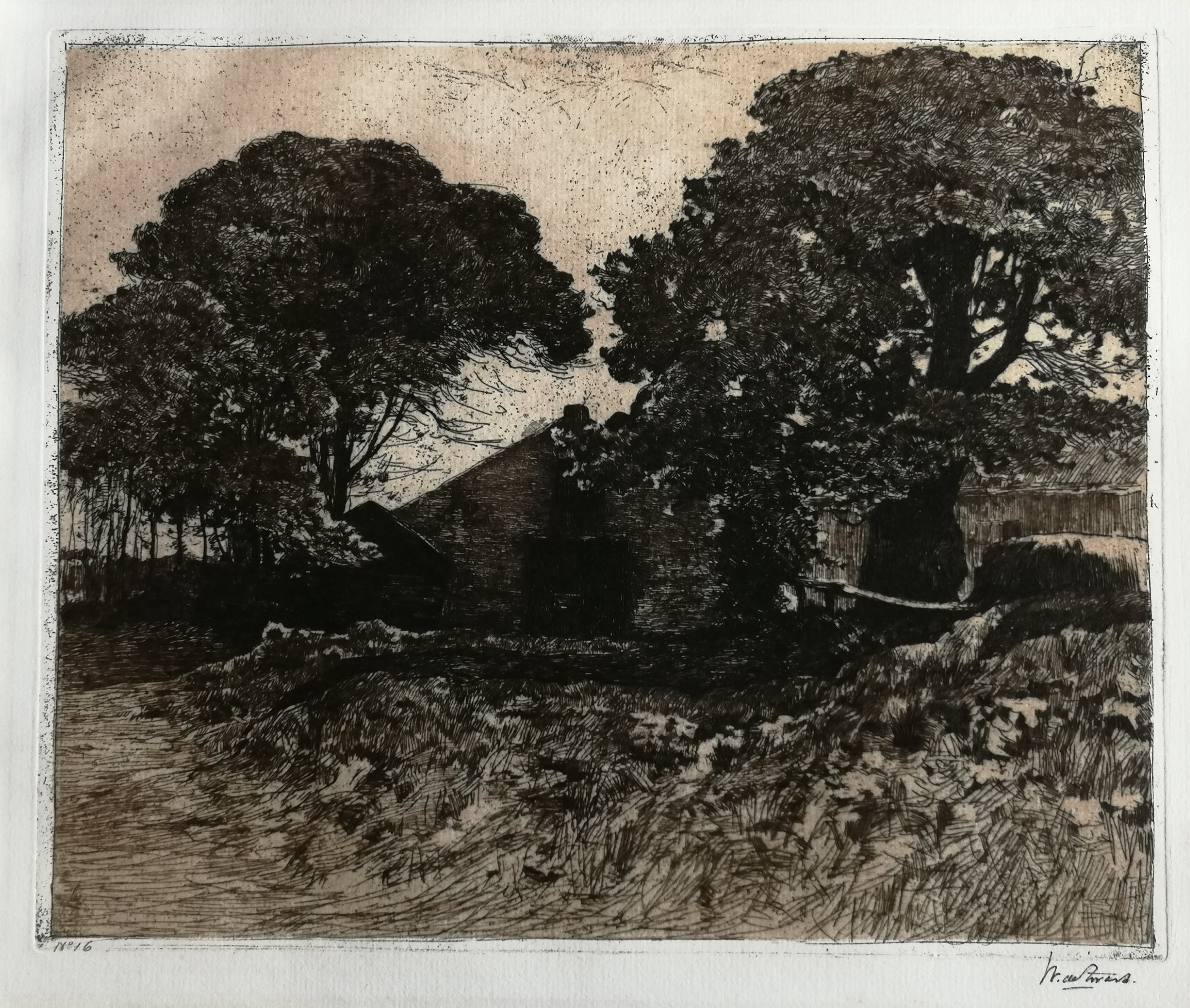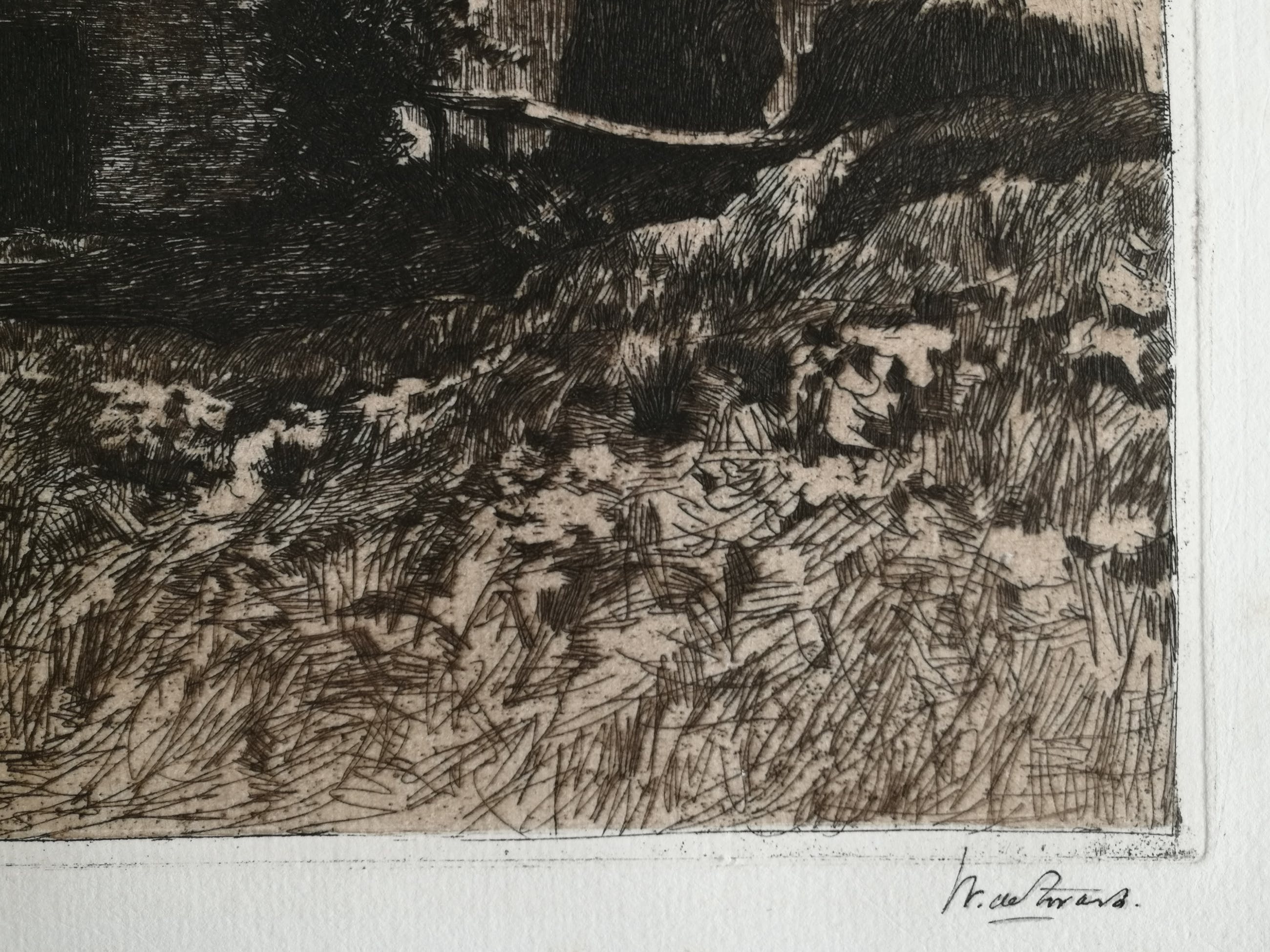 Ets uit ca. 1885.Inkt gesigneerd rechtsonder.Potlood genummerd 16 linksonder.Beeldmaat 25,5x31 cm.Bladmaat 30x35 cm.Losbladig.Literatuur: Catalogus Bionda no. 15.