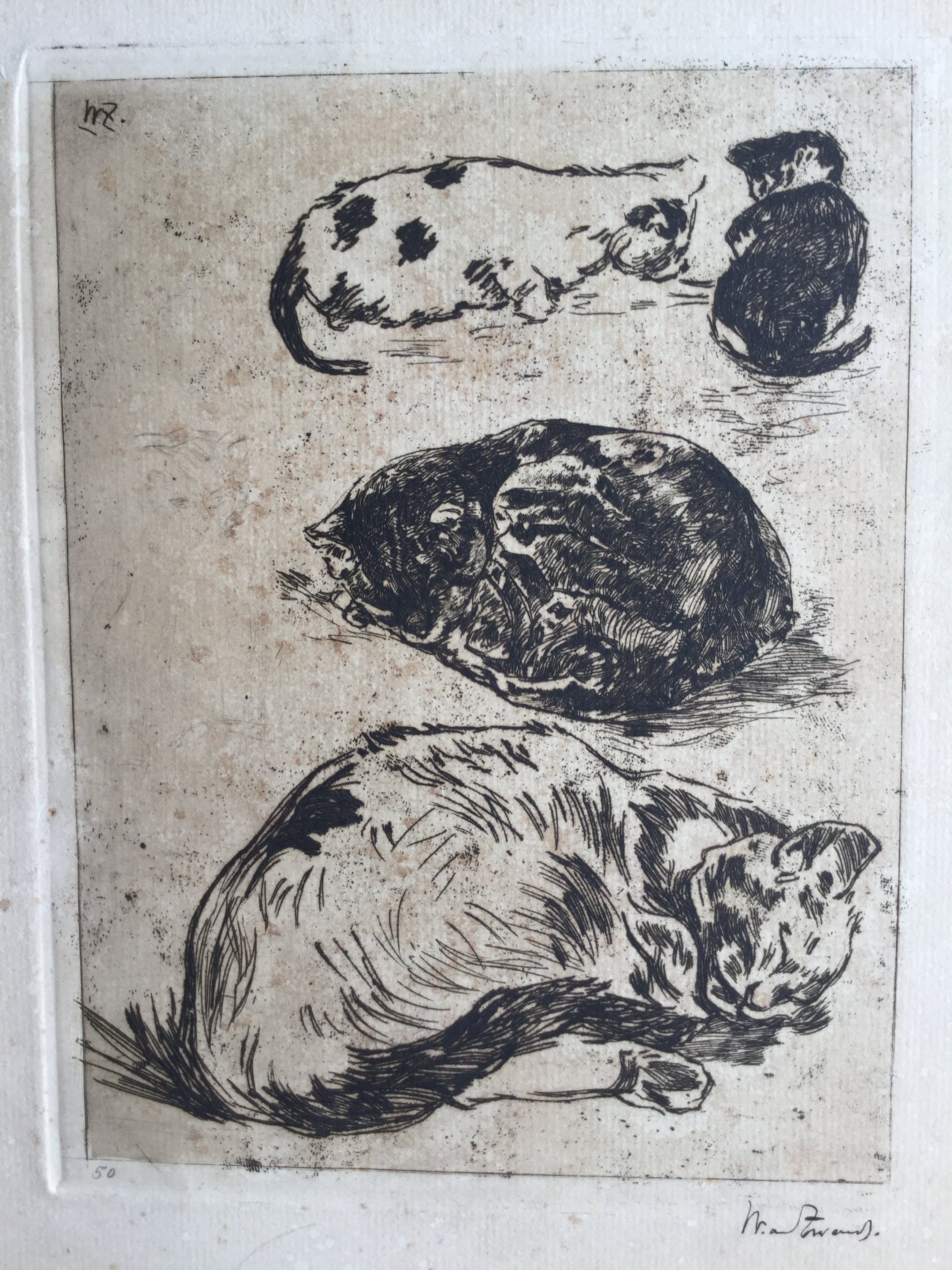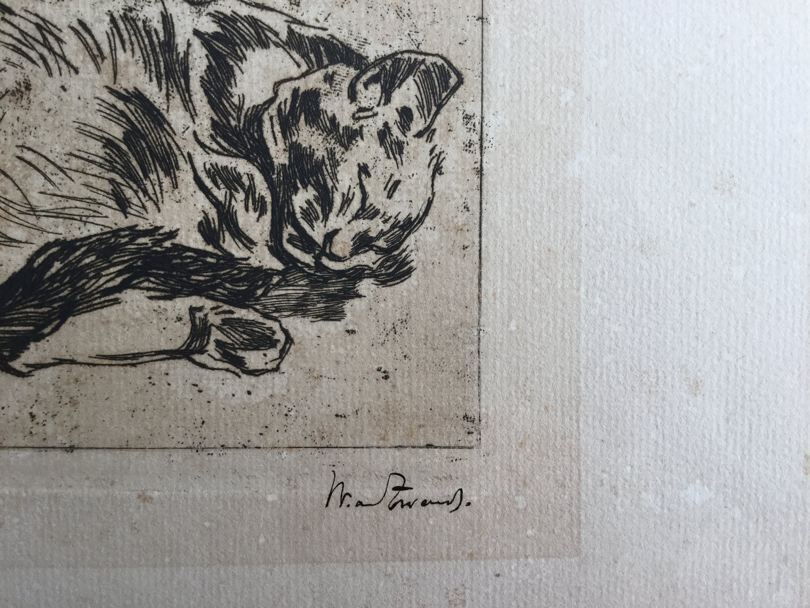 Leuke ets van slapende poezen van de Nederlandse kunstschilder Willem (Wilhelmus Hendrikus Petrus Johannes) de Zwart. Deze ets is gesigneerd.
