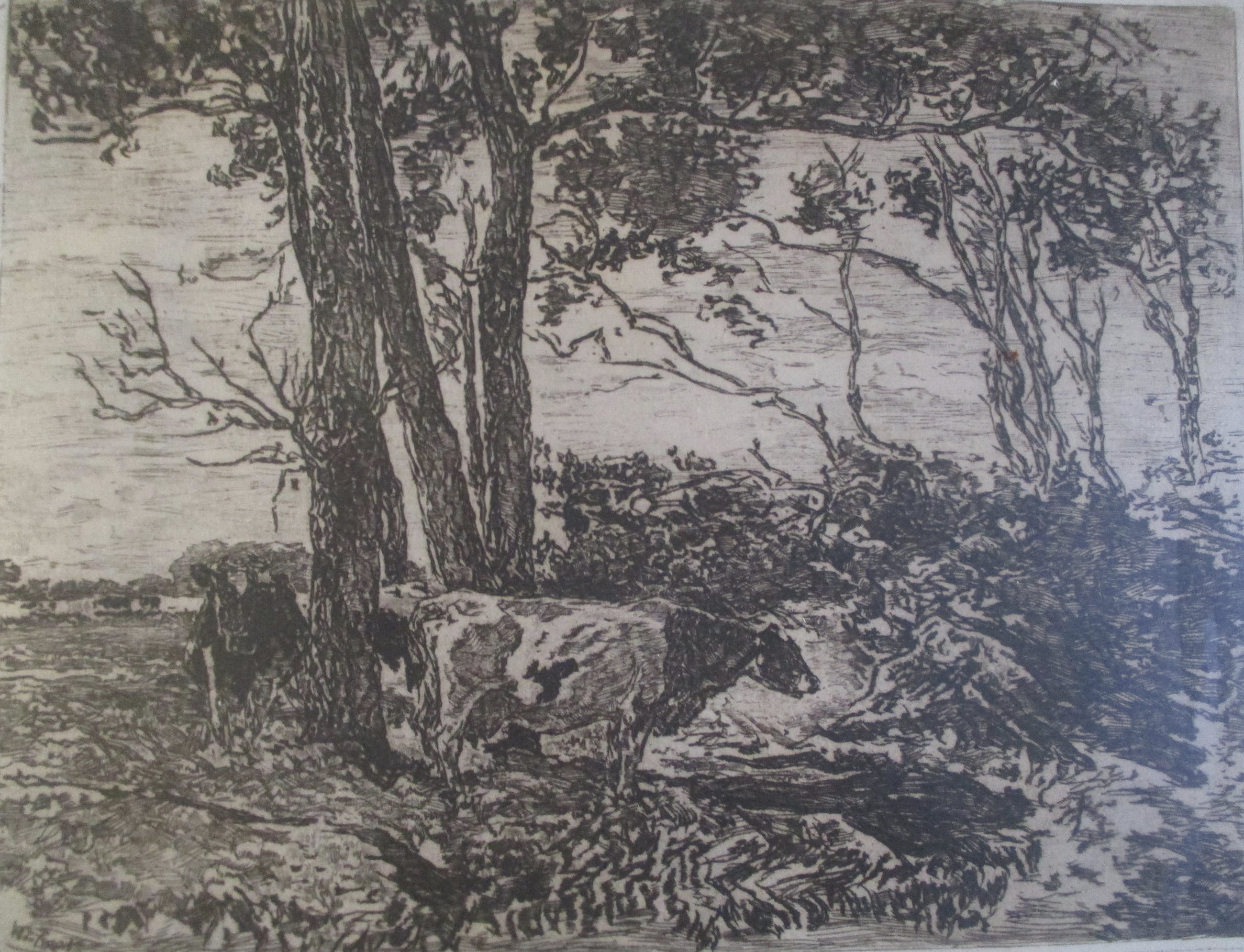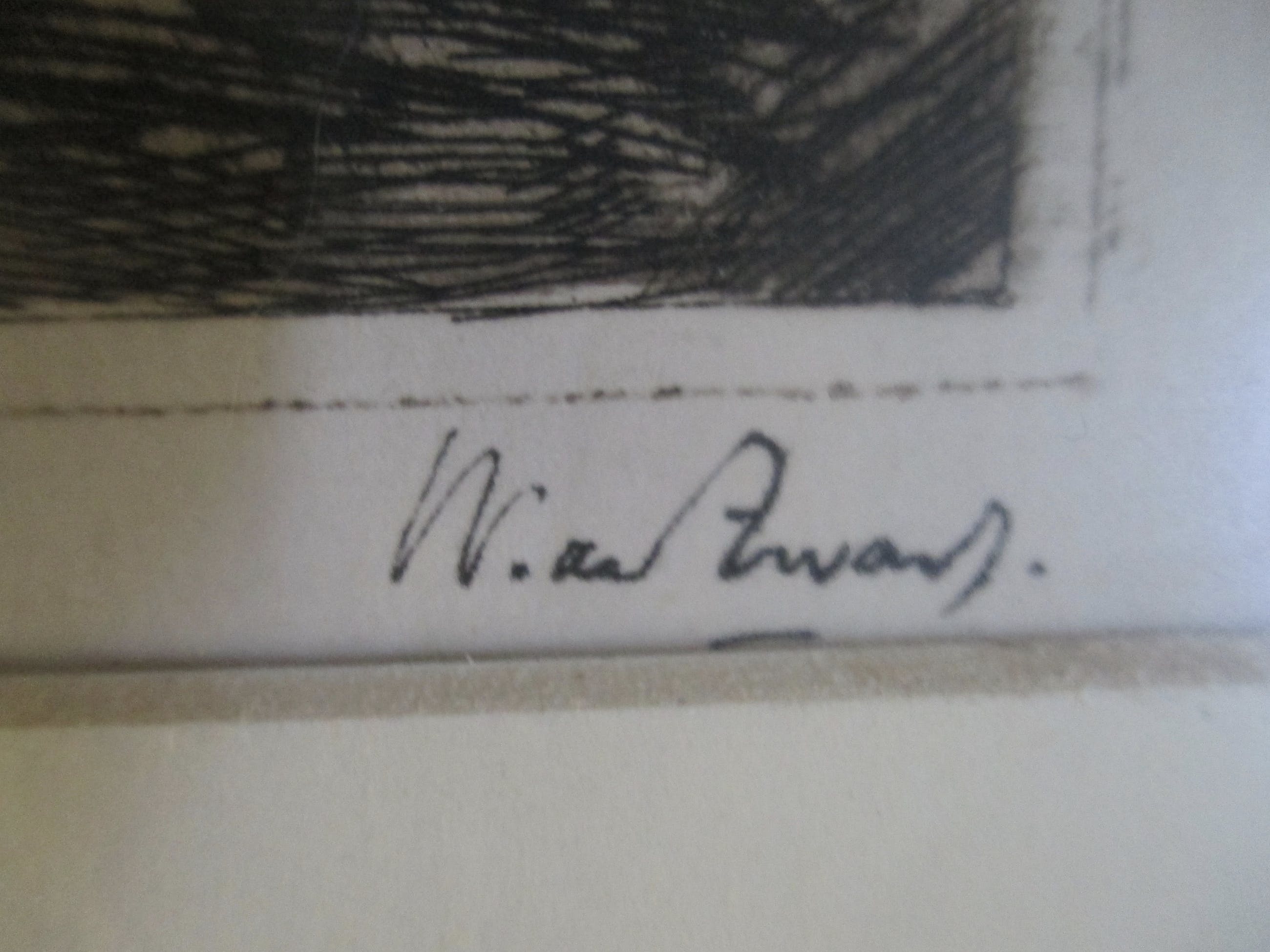 Ets van Willem de Zwart, gesigneerd in pen en genummerd l.o in potlood. Ingelijst achter passe-partout en plexiglas in gefineerd houten lijstje.