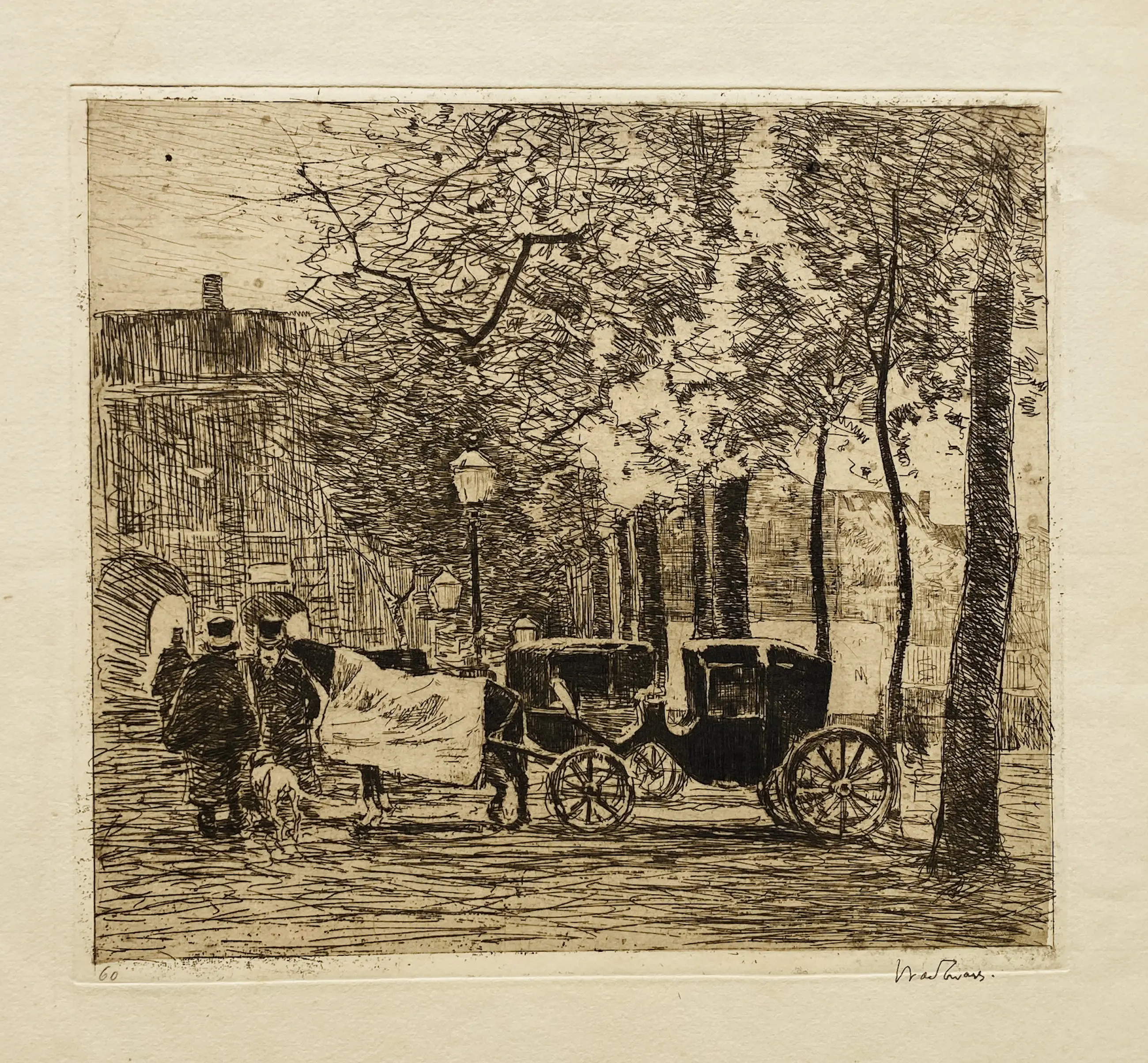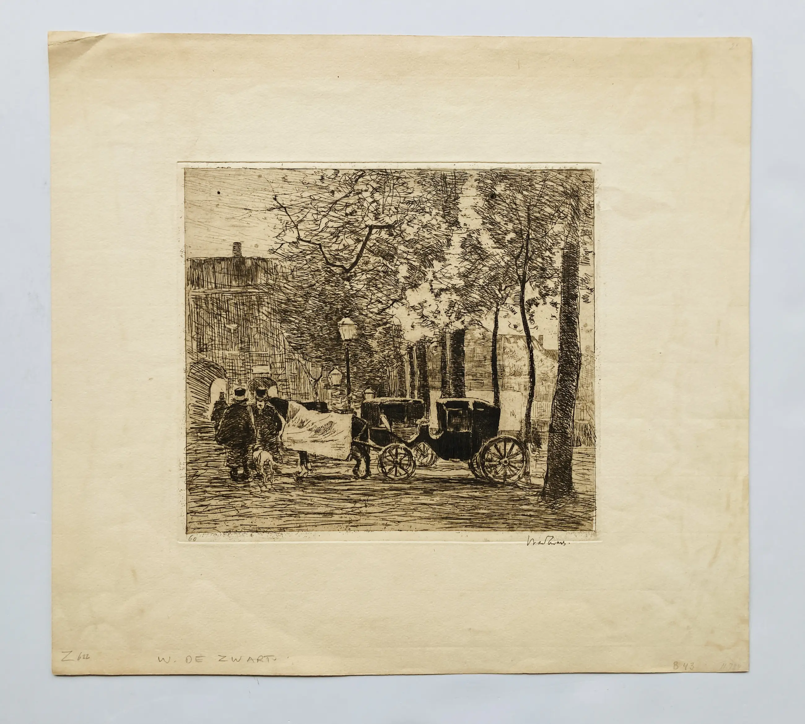 Fraaie ets van Willem de Zwart. Gesigneerd. De ets indruk is goed, de witranden rondom de ets tonen ouderdomssporen maar met een nieuw passe partout om de prent heen is hij zeer goed toonbaar.