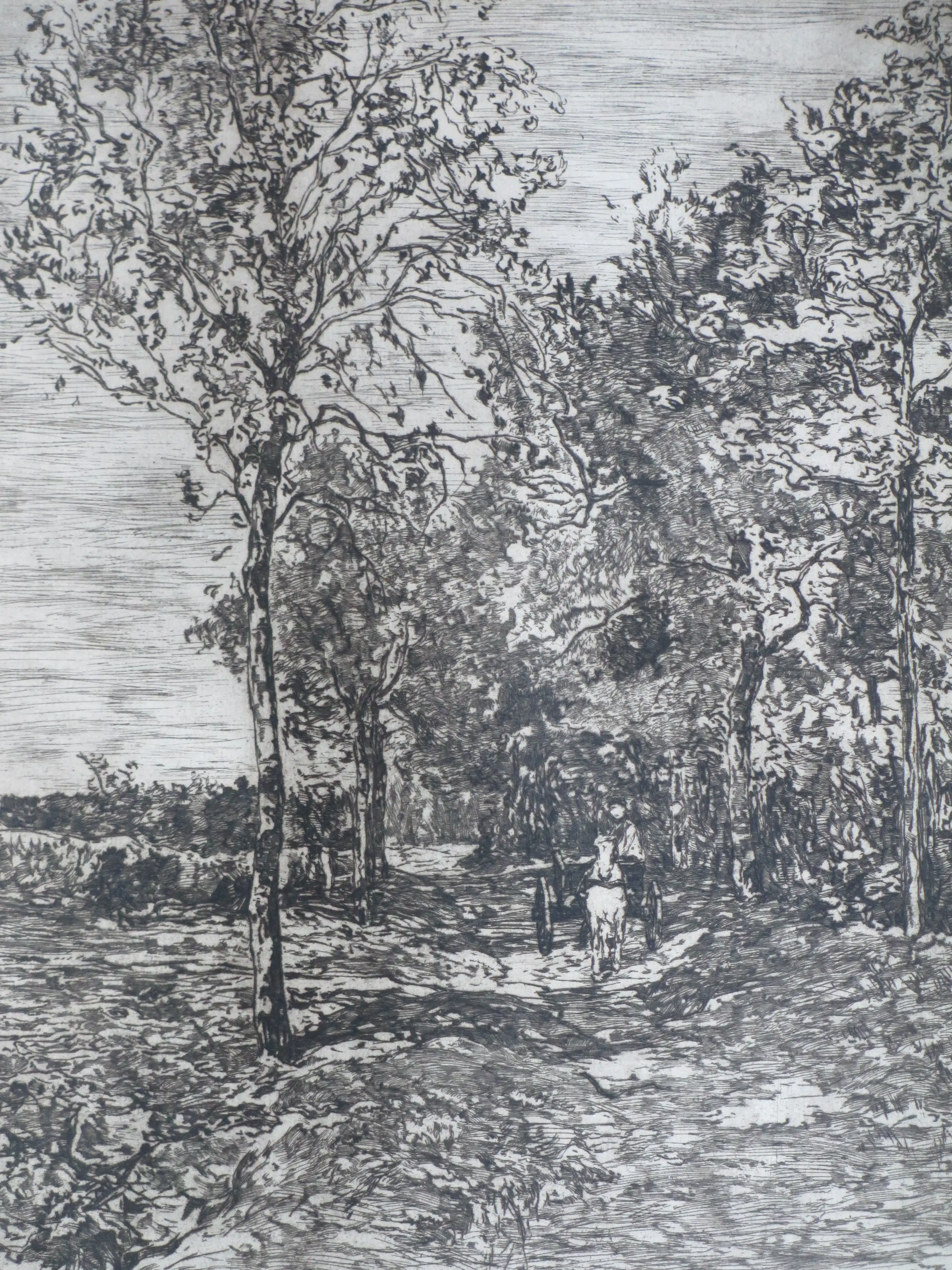 Ets door Willem de Zwart Voorstelling van een laantje met wagen Losbladig, beeldmaat 47x36, bladmaat 75x55 Gesigneerd in inkt r.o.: 'W de Zwart', tevens gesigneerd in de druk r.o. Genummerd in potlood l.o.: 'N 94' Literatuur: Bionda 99
