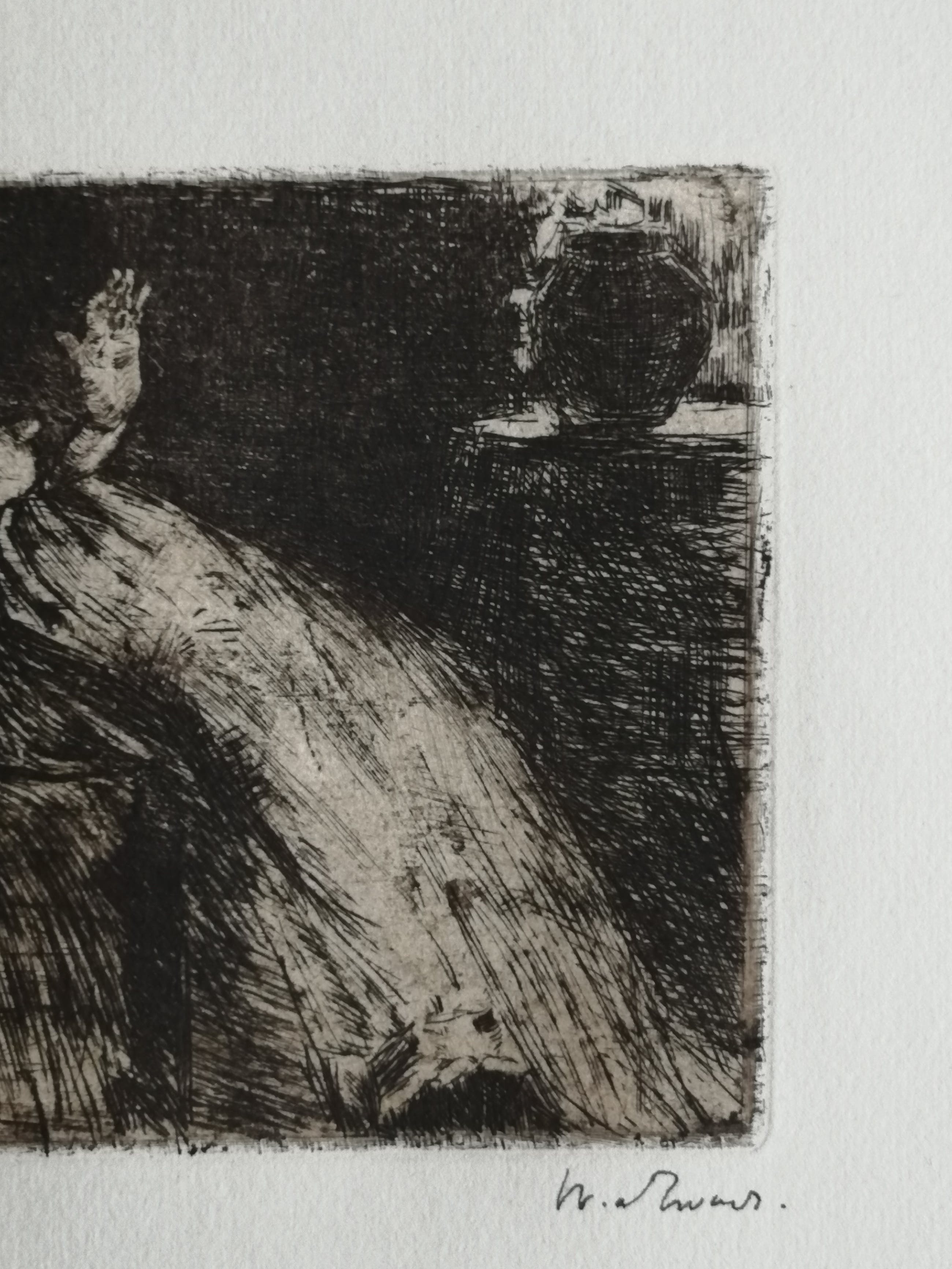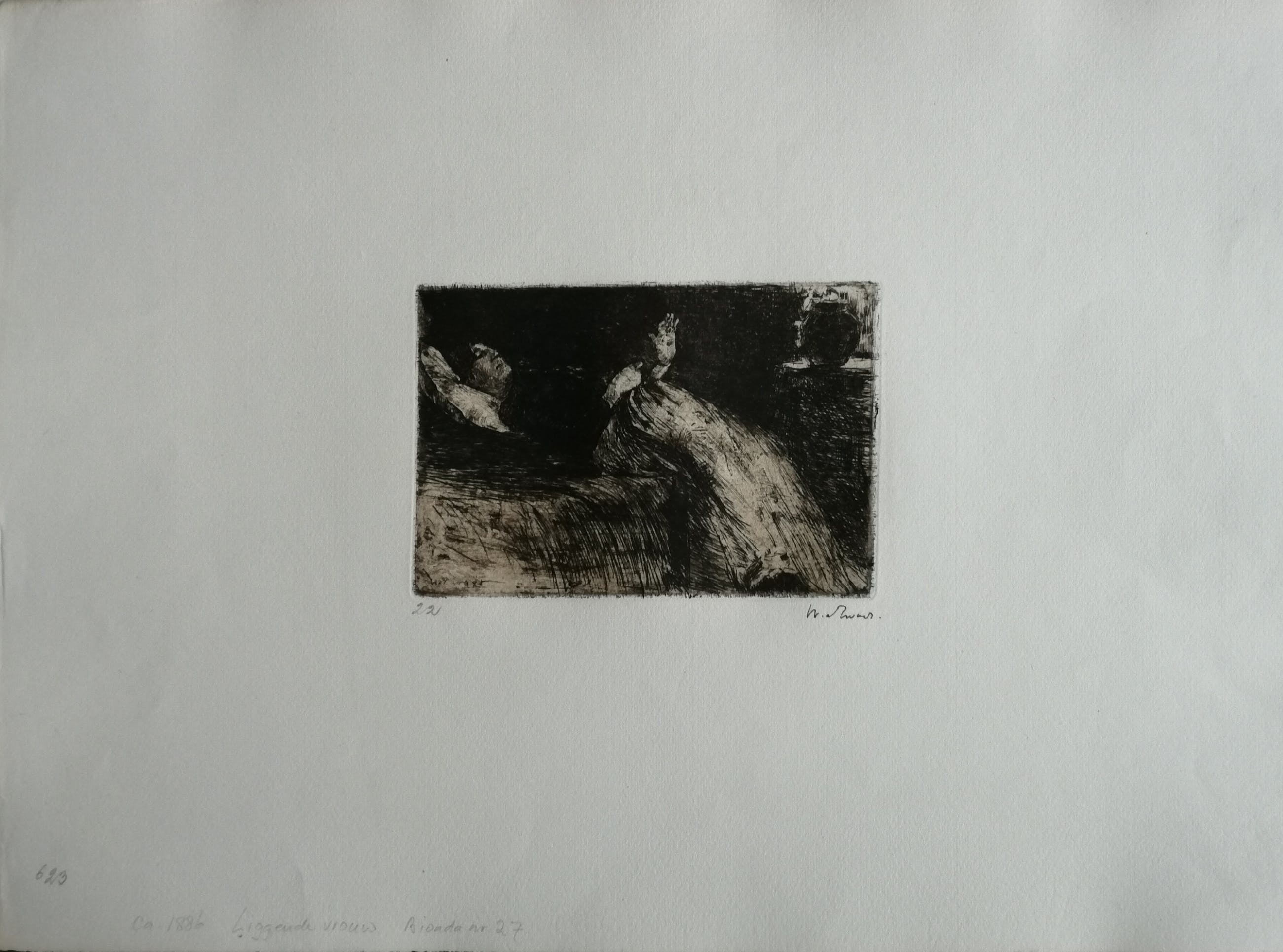 Ets uit ca. 1886.Inkt gesigneerd rechtsonder.Potlood genummerd 22 linksonder.Beeldmaat 11x16 cm.Bladmaat 32x45 cm.Losbladig.Literatuur: Catalogus Bionda no. 27.