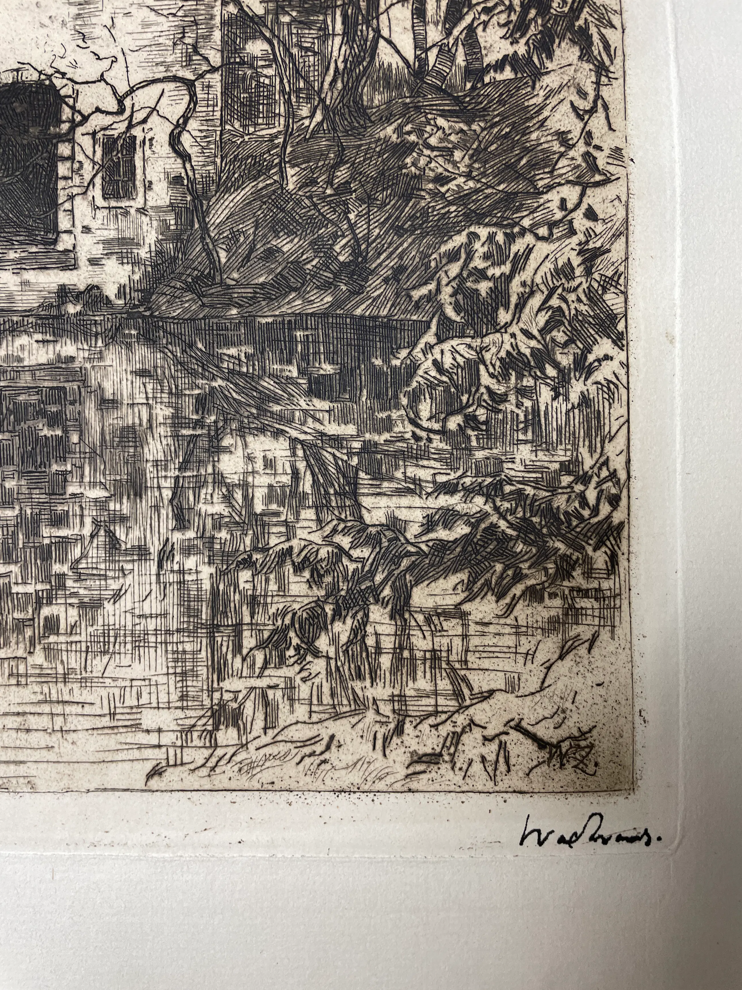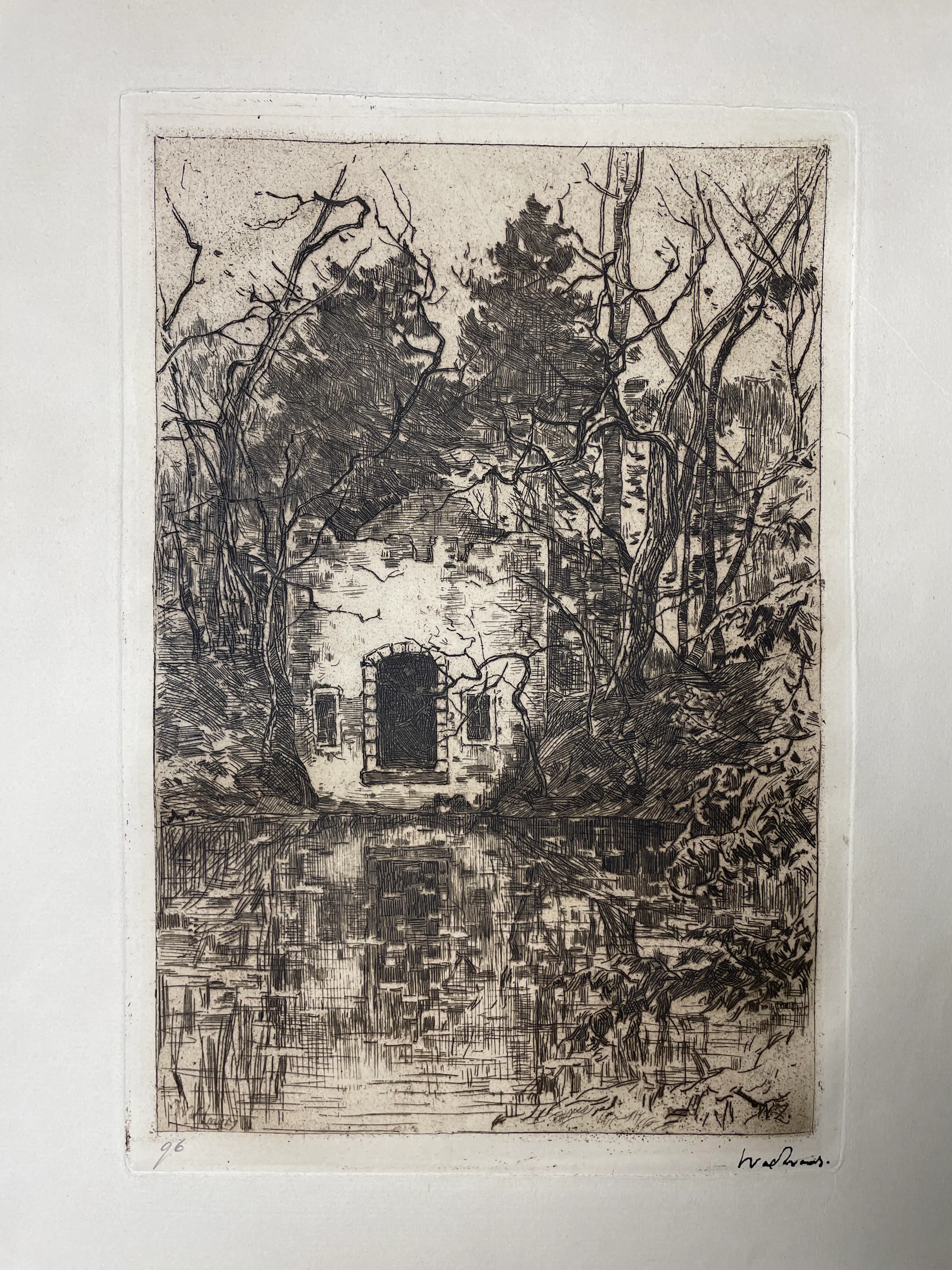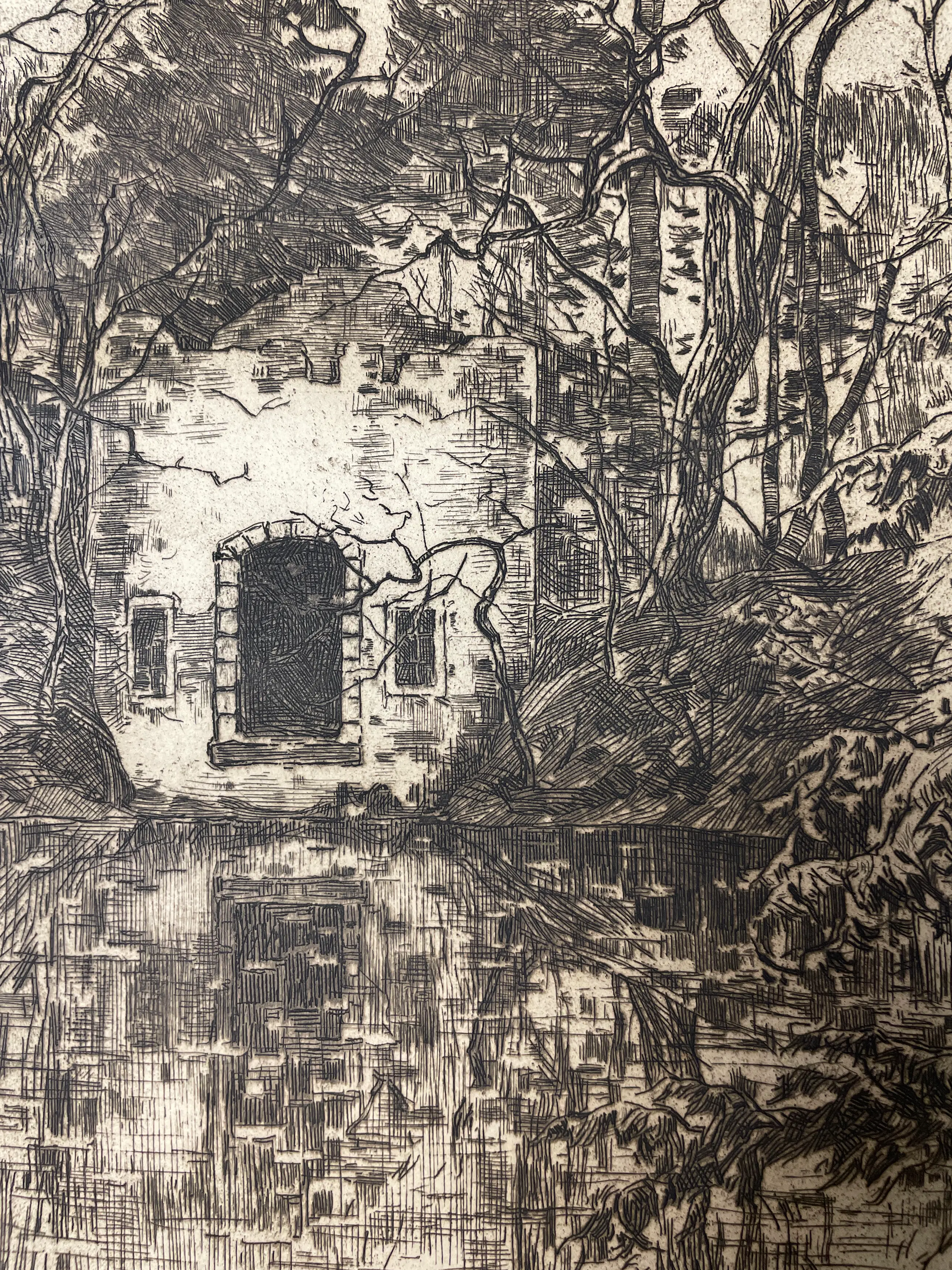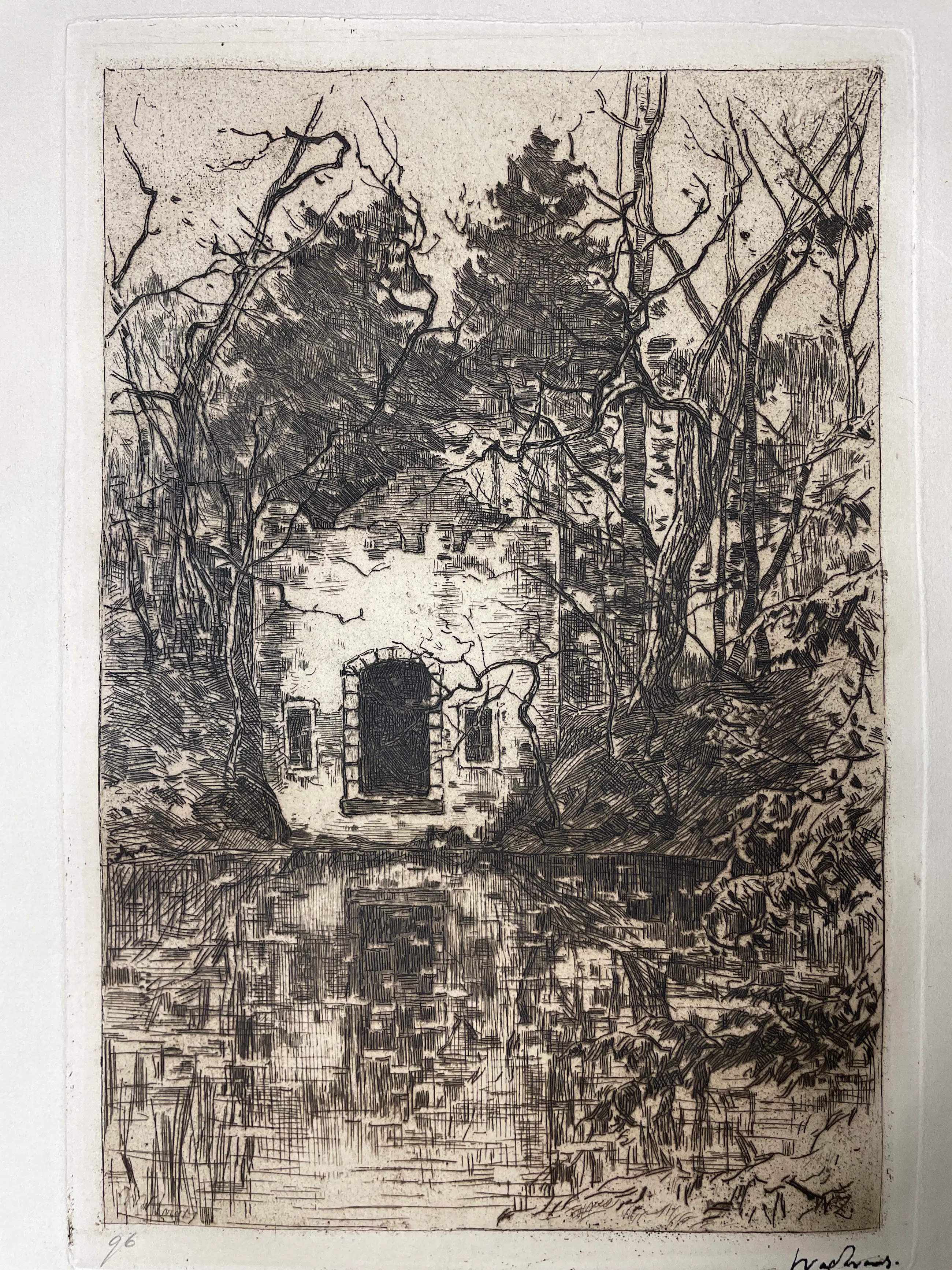 Schitterende gedetailleerde ets no. 96 Vijver met ruïne
