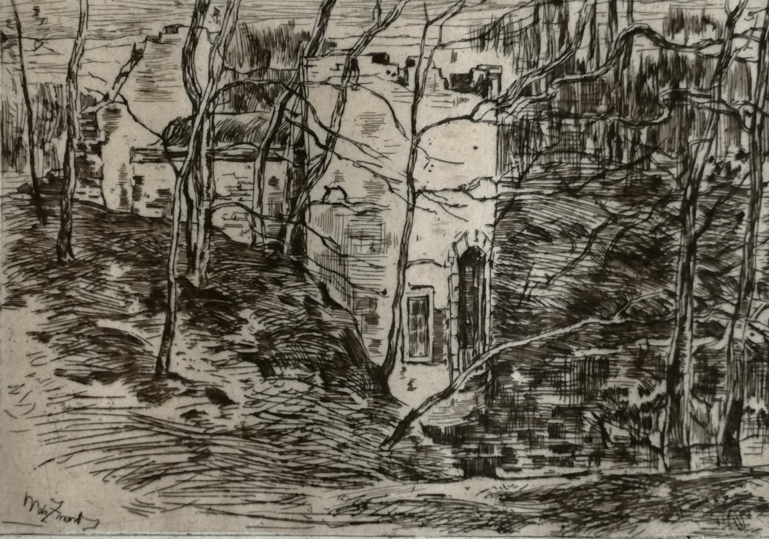 Ets uit ca. 1896.Inkt gesigneerd rechtsonder. Potlood genummerd 17 linksonder.Beeldmaat 11,5 x 17 cm. Bladmaat 32,5 x 45 cm. Losbladig.Literatuur: Catalogus Bionda no. 58.