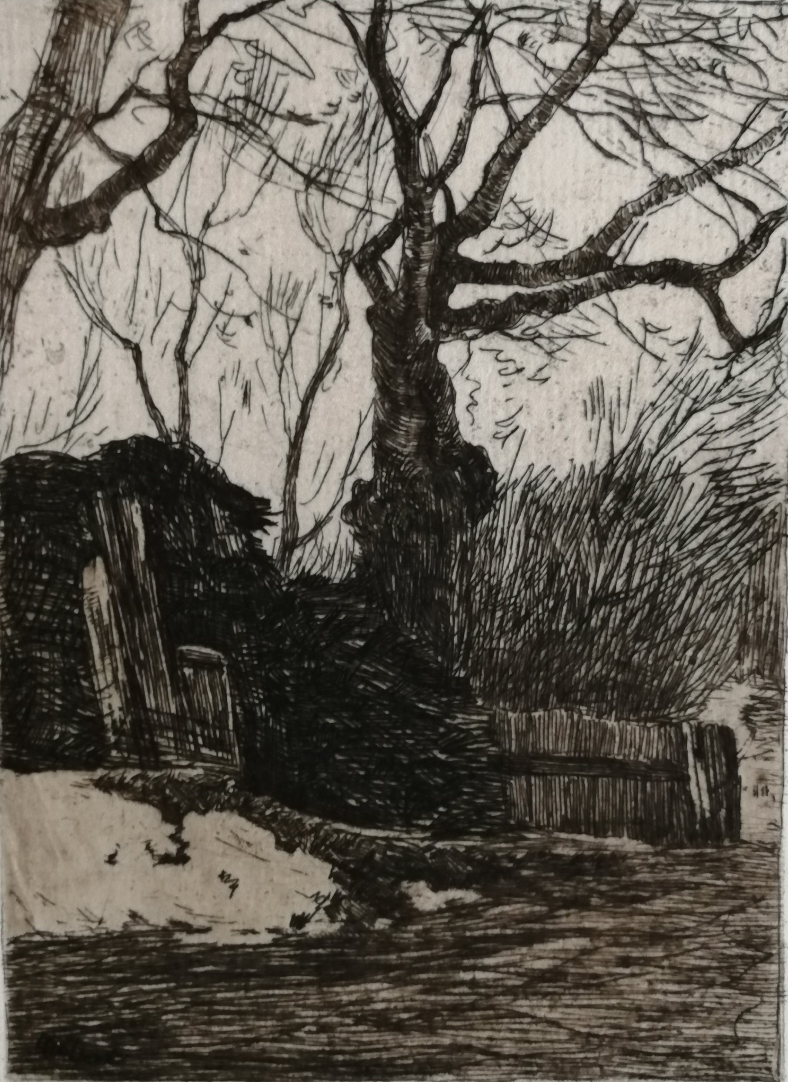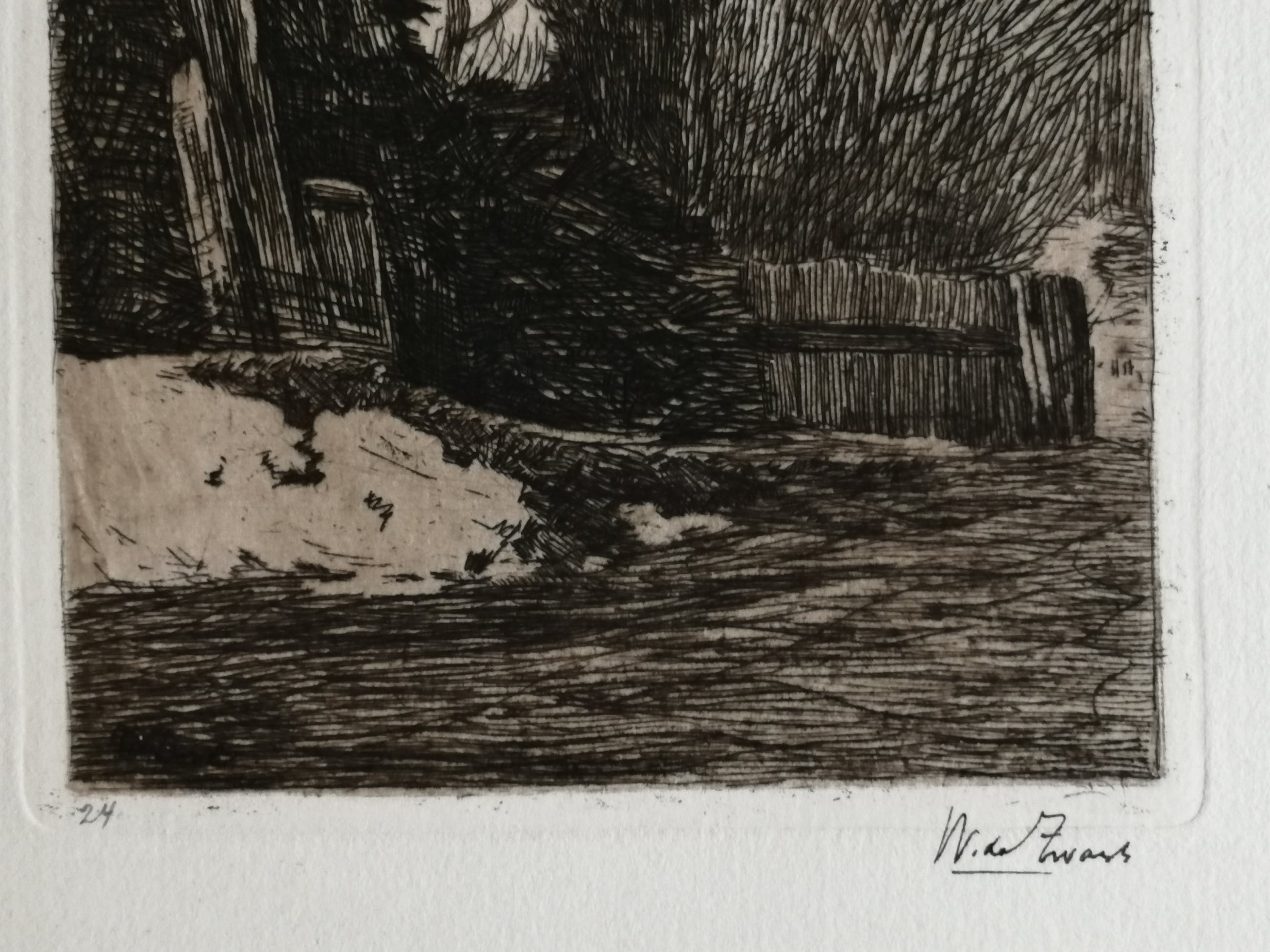 Ets uit ca. 1889-1890.Inkt gesigneerd rechtsonder.Potlood genummerd 24 linksonder.Beeldmaat 15x11 cm.Bladmaat 45x33 cm.Losbladig.Literatuur: Catalogus Bionda no. 39.