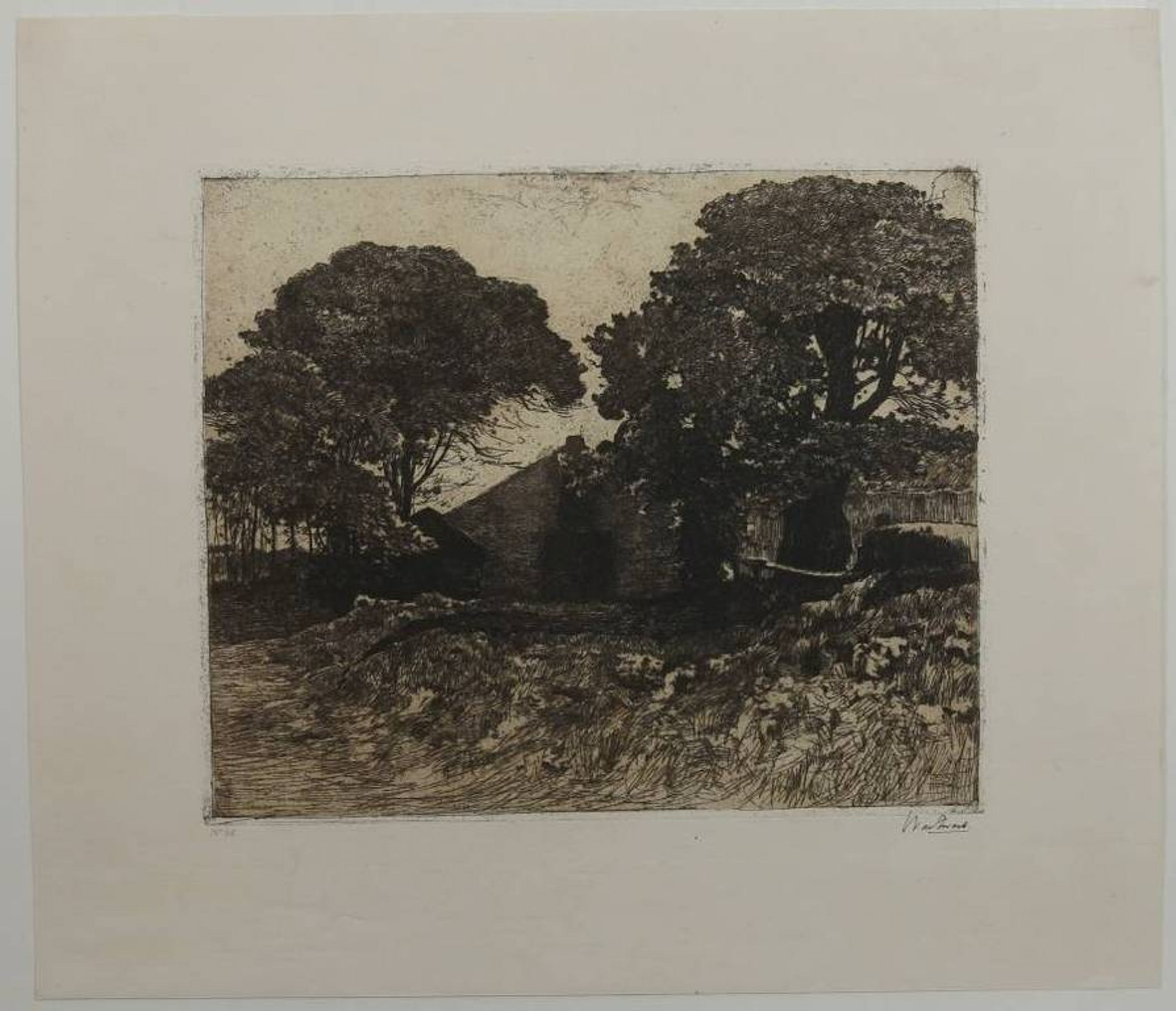 Mooie grote ets van een boerderij in Dekkersduin door Willem de Zwart