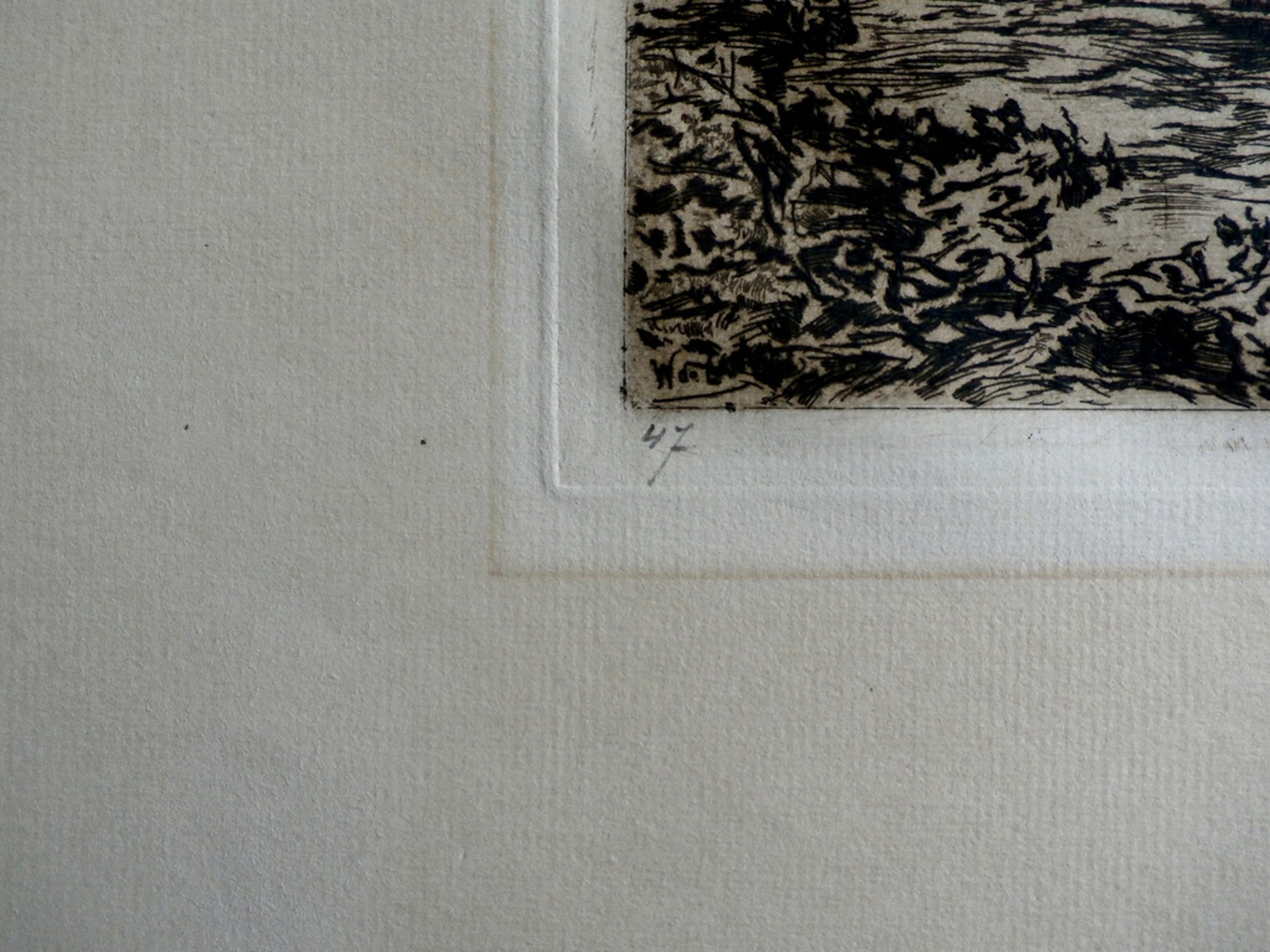 Ets van Willem de Zwart. Het werk is rechtsonder, met de hand, gesigneerd door de kunstenaar en linksonder in de druk. Nummer: 47. Afmetingen blad: H45 x b65 cm. Afmetingen voorstelling: H23 x b30,5 cm. Conditie: in goede staat. De authenciteit van dit werk wordt volledig gegarandeerd. Een certificaat van echtheid kan, op aanvraag, worden meegeleverd.