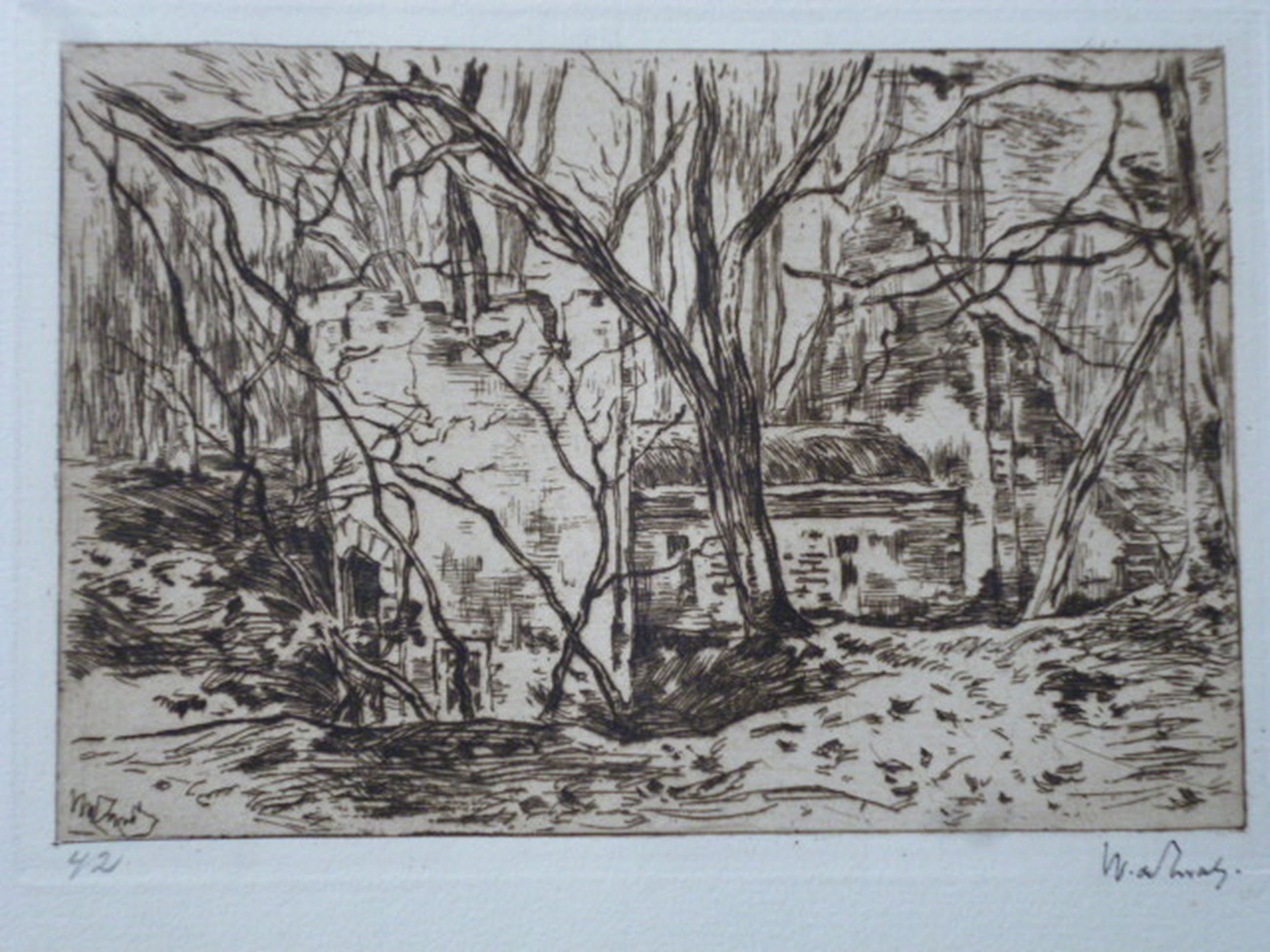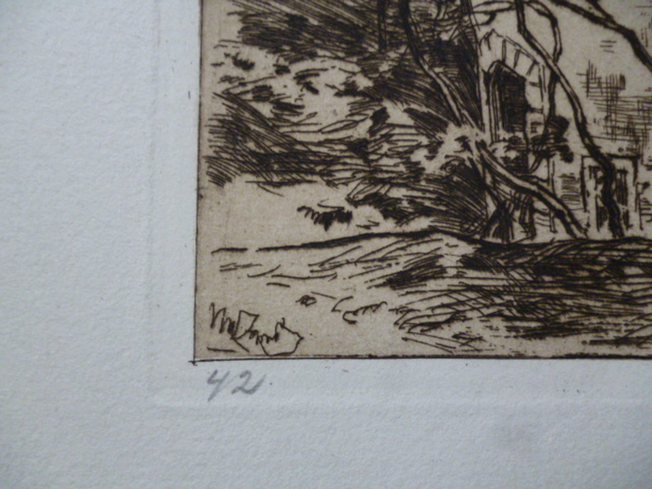 Ets uit 1896. Inkt gesigneerd rechtsonder. Genummerd 42 linksonder.